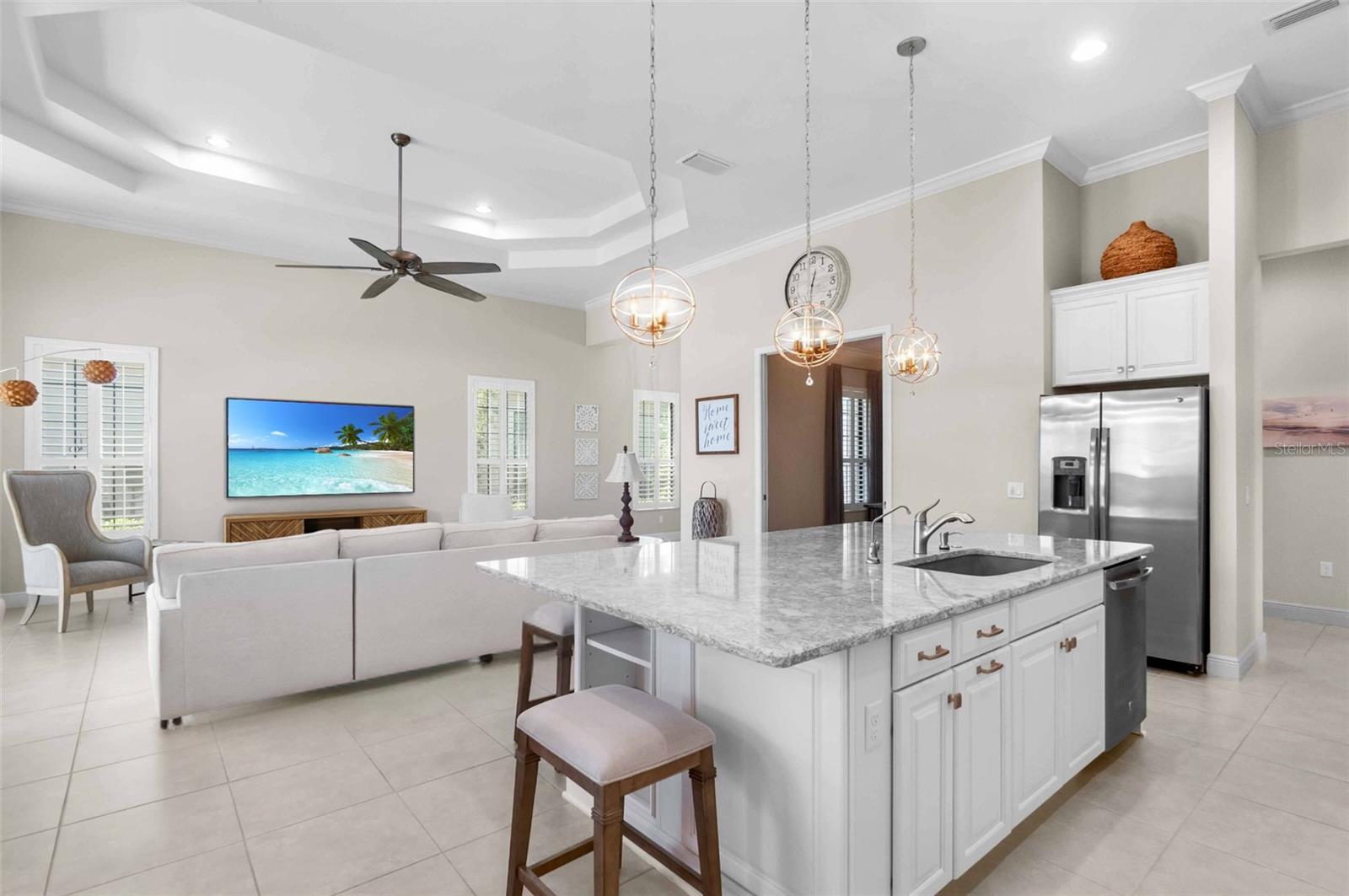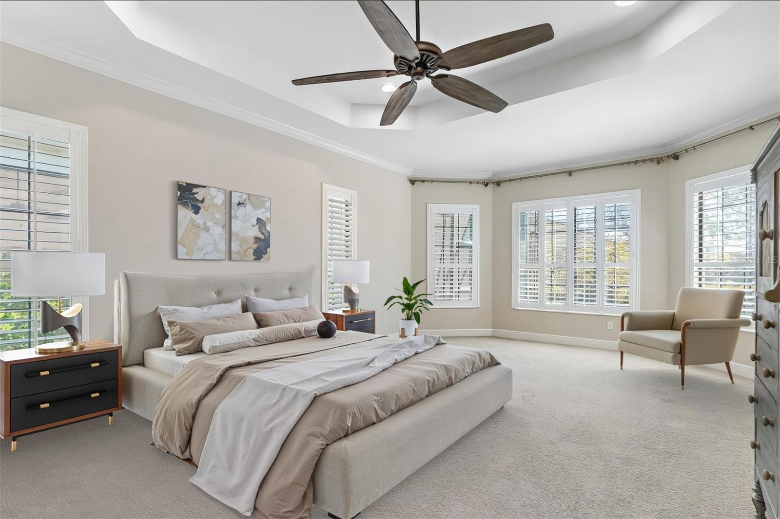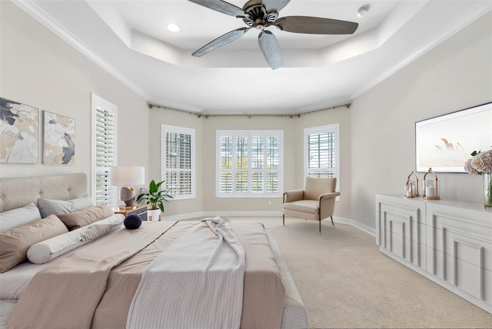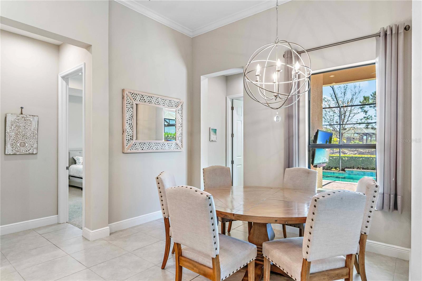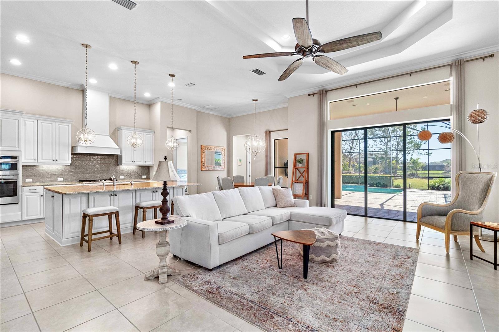 One or more photo(s) has been virtually staged. Experience luxury living at its finest in this stunning 3-bedroom, 3.5-bathroom Neal Signature home, perfectly situated in the highly sought-after neighborhood, Country Club East of Lakewood Ranch. As you enter the main foyer, you’re drawn in by the open, light-filled floor plan. Soaring 12 and 14 foot ceilings create an inviting and airy atmosphere that seamlessly connects to the OUTDOOR LIVING space via pocket sliders and transom windows, providing a clear sight line to the heated saltwater pool/spa and peaceful LAKE VIEW. The covered lanai provides shade year-round and is pre-plumbed for an outdoor kitchen, making it easy to dine alfresco or unwind with your favorite shows on the outdoor TV. The POOL BATH is a major plus! Accessible from the covered lanai, the pool bath adds a layer of convenience for Florida days spent pool-side. As the sun sets each evening, the outdoor landscape lighting illuminates the palms for a truly serene atmosphere. Now let’s step back inside, as this luxurious floorplan elevates at each turn. At the center of the home, the GOURMET KITCHEN and large island with seating and additional cabinet storage is ideal for daily meals, food prep, and social gatherings. Upgraded kitchen features include soft-close cabinetry, quartz countertops, stainless steel GE appliances, a five-burner gas cooktop, and a cabinet-faced vent hood that extends to the 12’ ceiling. There is certainly no shortage of STORAGE, with abundant cabinetry, a pantry closet, as well as an additional BUTLER’S PANTRY adjacent to the kitchen with a wine fridge and coffee bar. As you make your way to the PRIMARY SUITE, you’re immediately drawn to the many windows bringing in natural light through custom plantation shutters. The serene sitting area overlooks the pool and lake view out back. The primary’s en-suite bath features dual sinks, a walk-in shower, and is filled with natural light. Dual walk-in closets provide plentiful room for your clothing, shoes, luggage, and all the extras! Toward the front of the home are two private guest suites each include walk-in closets, an en-suite bath, and ample space for furnishings as well as storage. And for those in need of a work-from-home space… the DEN with wood flooring and pocket doors is ideal for a home office, reading nook, or hobby room. The separate laundry room allows for extra storage with upper & lower cabinets, a laundry sink, and front-loading GE washer and dryer. The 3-car garage is the perfect place to store your ride(s), golf cart(s), or even to be used for extra storage space. Are there any UPGRADES that you may not ‘see’ but certainly benefit from? Yes! This home also features a reverse osmosis water filter and a whole-house water softener. Located in the gated, maintenance-free community of Country Club East, residents enjoy resort-style amenities, including three pools, a fitness center, clubhouse, dog park, and miles of scenic walking and biking trails. Membership to the Lakewood Ranch Golf & Country Club is optional. Enjoy nearby championship golf courses, fine dining at Lakewood Ranch Main St, shopping at Waterside Place, and world-class beaches along the Gulf Coast. Sarasota International Airport is just a short ride away, making travel effortless. See why Lakewood Ranch is the nation’s top-selling Multi-gen Community. If you’re looking for luxury, convenience, and the best of Florida living, this home is a must-see!