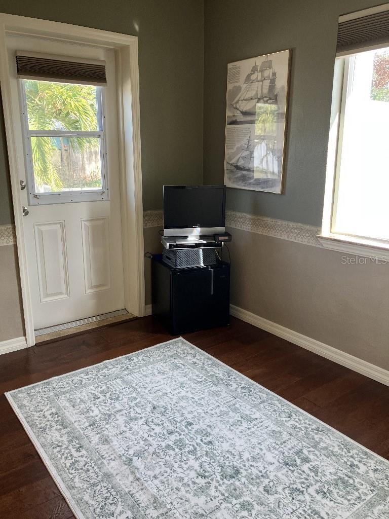 LOCATION, Charming cottage- GOLF-GULF opportunity: 2 mi to G.T.Bray Park; 3 mi to IMG Academy. ~200 yds to Bradenton Country Club and minutes to Anna Maria Island’s white sand public beach (6 miles). LOCATION among highest elevation points in Manatee County, this solid home boasts a tasteful interior with all new or newer mechanicals: metal roof (2021), built-in steel window shutters (2024), 140+mph rated garage door (2024), water heater (2021) NEW HVAC + new attic ductwork (and extra attic insulation (2023). Beautifully updated, lovingly maintained! Snowbird owners of 16 years offer this gem FURNISHED. Spacious living room, kitchen (commercial size French door, bottom freezer) plus BONUS room with a hidden Murphy bed--for a third sleeping area in two bedroom home. There is plenty of indoor space for family, friends and guests. Expansive outdoor plus-sized lot with 50' of deck, patio combination presents numerous creative expansion possibilities. Time-saving landscape design of extensive Xeriscaping (hardscape: stones and shell) to minimize watering and mowing. Three black olive; “Shady Lady” trees planted in 2023 grace the curb appeal on this quiet street. Come, see, be impressed.