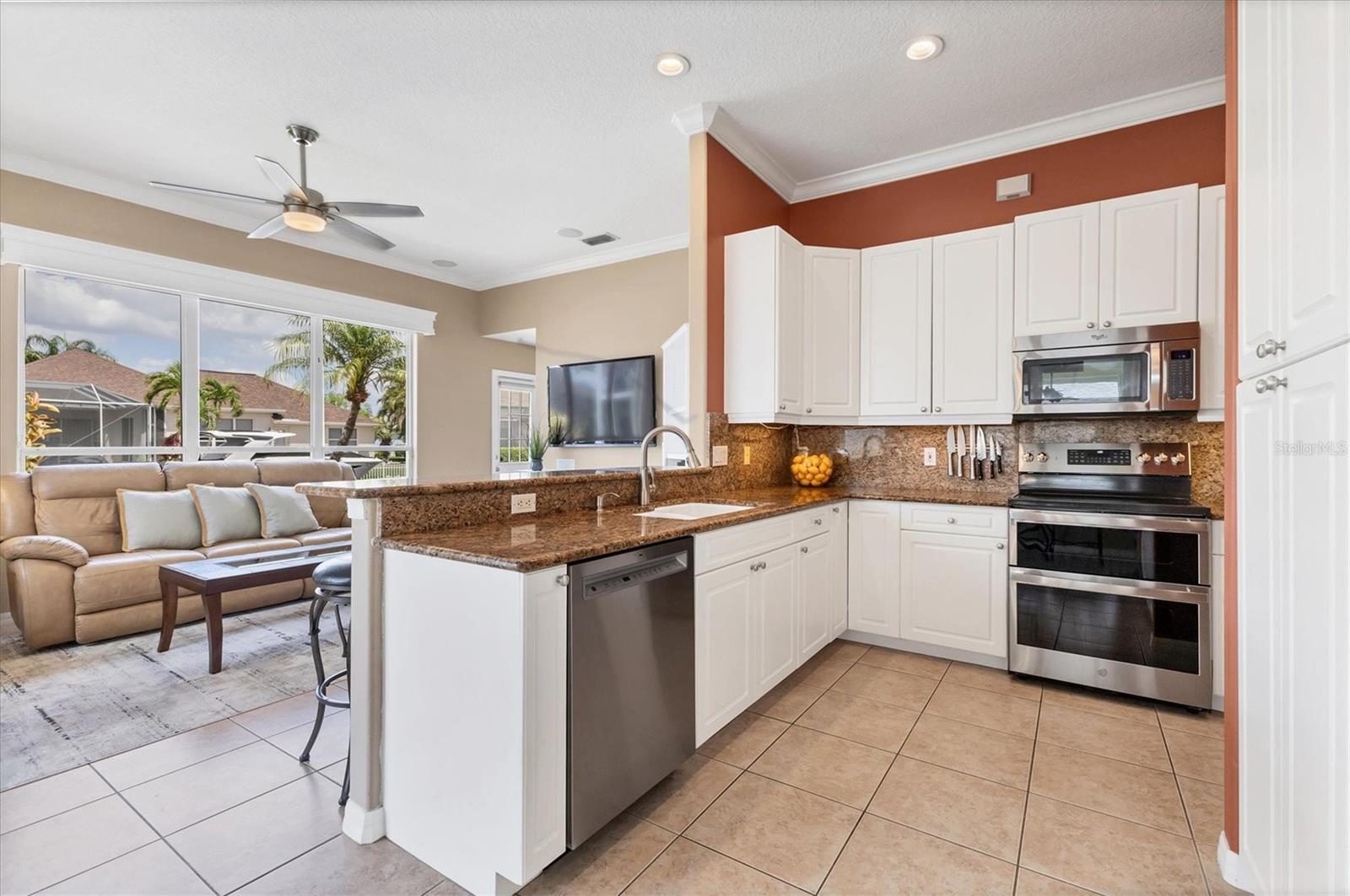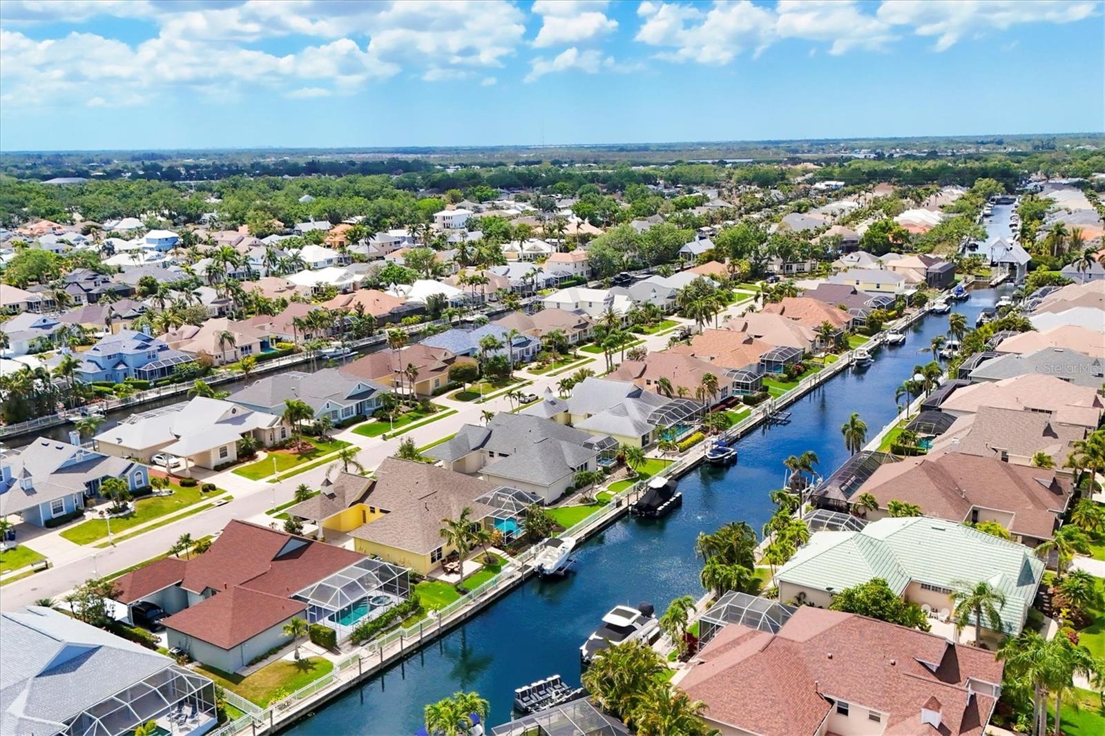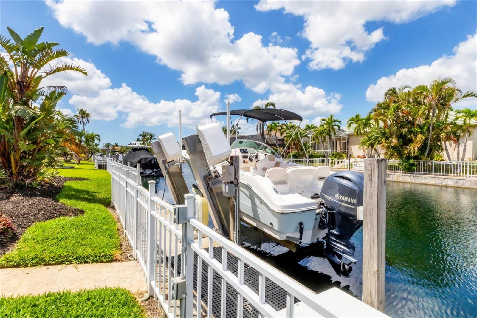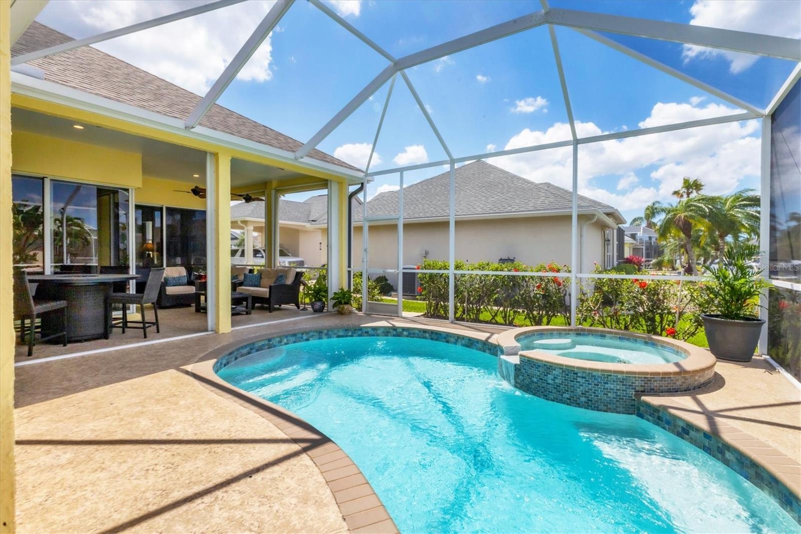 Beautiful Key West home in premier boating community of The Inlets with attached 15K boat lift! Updated 4 bedroom, 3 bath pool/spa home with large screened patio, outdoor paver patio, and tropical landscaping is the ideal Florida lifestyle retreat you’ve been waiting for! Open plan with high ceilings, light and bright coastal style, lots of windows that bring the outdoors in make this a great home for entertaining! Kitchen with white cabinets, granite counters & backsplash, and newer SS appliances including double oven range. Laundry/pantry closet with appliance counter and wall cabinets, washer and dryer. Large Primary Suite with sliders to Lanai & Pool view, 2 closets, one a large walk in. Spacious bath with two separate sink vanities, garden tub, walk-in tile shower, and private toilet. Split plan offers 2 additional bedrooms, a large hall bath, and an office/4th bedroom at rear next to the 3rd bath that is also accessed from the pool area. Enjoy living and dining outside in the expansive covered lanai overlooking the beautiful pool that adds to the vacation feel of this home. Built Ins include crown moldings & valances, buffet in Dining, shelves in Family, and desks/cabinets in Office. 2025 exterior & garage paint; 2023 Heat Pump AC, pool pump & gas heater; 2020 pool/spa resurface; 2018 roof; gas water heater; hurricane/shade shutters; wired for generator & security system, built in speakers, electric shades. Bring your boat and enjoy the best of waterfront lifestyle, dock up to a 36 ft boat with power and water to enjoy boating, fishing, and visiting local waterfront restaurants & venues by boat. Access to Manatee River, & Gulf, many social activities, tennis, walking trails, fishing dock, kayak launch, playground, sidewalks, and gas streetlamps. Easy access, near I-75 & SR64, just 6 nautical miles to Tampa Bay, 12 mi to Gulf, close to airports, restaurants, shopping, beaches, Sarasota, St. Pete & Tampa. No CDD, low HOA & low flood insurance.