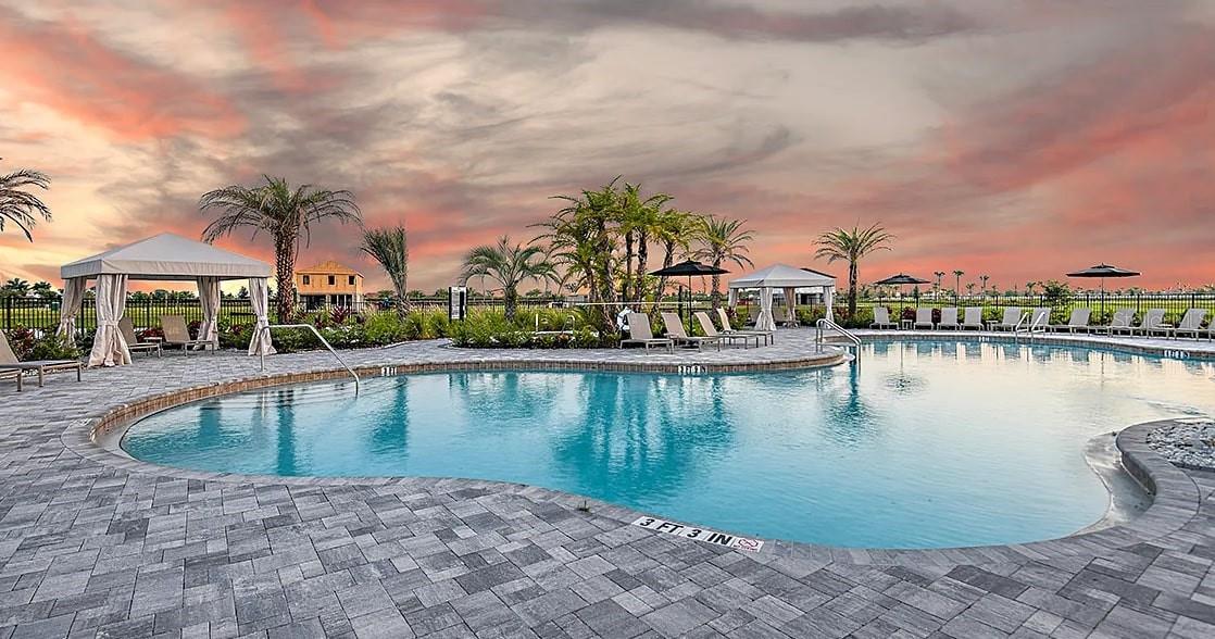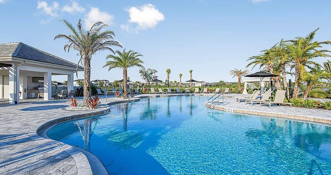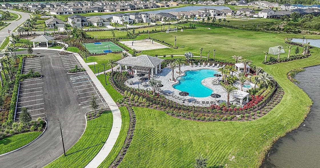 Spacious Luxury Living with Pool, Pond View & Premier Community Amenities Welcome to your dream home—where space, style, and comfort come together in perfect harmony. This impressive 7-bedroom residence offers over 4,800 square feet of thoughtfully designed living space on an estate lot, ideal for multi-generational living, hosting guests, or simply enjoying room to stretch out and relax. Step inside and be captivated by the open-concept kitchen and living area, perfect for entertaining. The heart of the home features a massive quartz island, built-in double ovens, and plenty of room for cooking, gathering, and creating memories. Upstairs you'll find a spacious loft filled with natural light and an incredible play area for little ones. Also upstairs is a large media or game room, and five large bedrooms with walk-in closets. The oversized 3-car tandem garage provides ample space for vehicles and storage, adding to the home's impressive functionality. Outdoors, your private oasis awaits: a screened-in lanai with a sparkling pool and oversized spa, all overlooking a tranquil pond view. Beyond the pool, enjoy an additional 25 feet of backyard space—perfect for pets to roam and for outdoor activities. Whether you're enjoying a peaceful morning coffee or a lively evening with friends, this backyard is built for relaxation and enjoyment. The backyard is east-facing, so you can enjoy grilling in the shade in the evening, and glowing sunrises in the morning. Located in a vibrant community packed with amenities, you'll enjoy access to a resort-style pool, dog park, and sports facilities including soccer, volleyball, and basketball courts—something for everyone in the family. Don't miss your chance to own this extraordinary home that truly has it all—space, luxury, and a lifestyle you'll love.