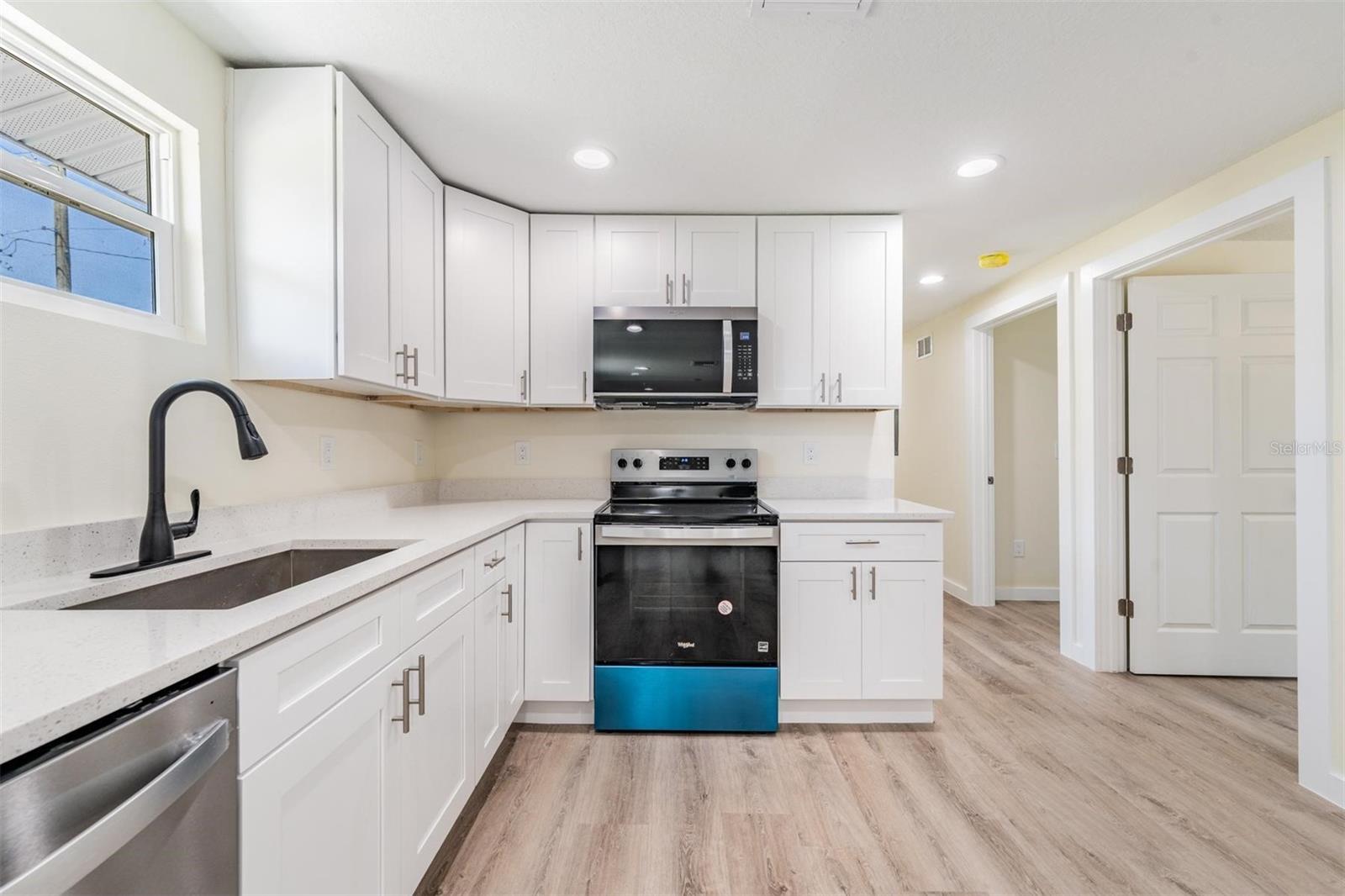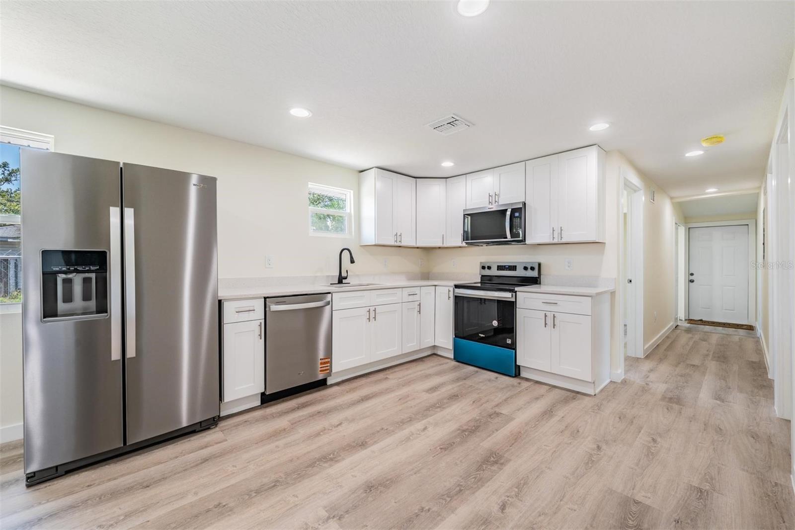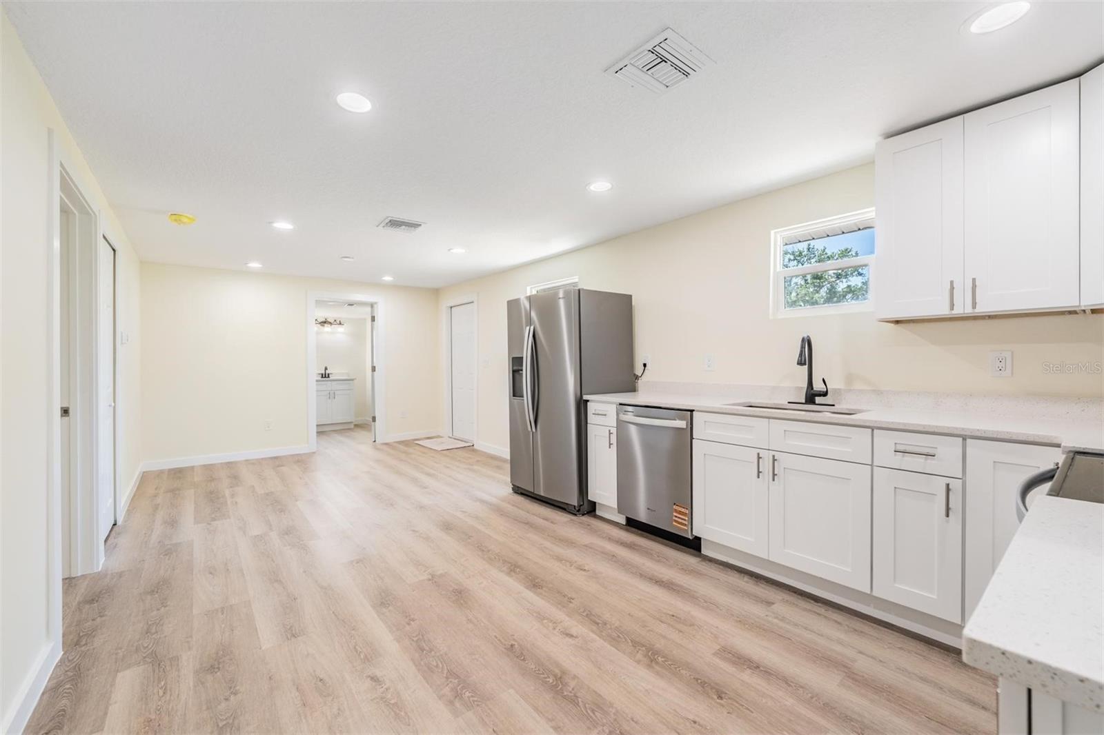 For Sale and For Rent. Completely renovated and permitted 4 bedroom, 3 bathroom with an indoor laundry. Two master suites! New Roof, Water heater and AC!!!! Both bathrooms and kitchen are new with granite finishes. Barn door installed in one master suite. New stainless steel appliances brighten up the kitchen. This home offers a very large open floor plan for all home activities. New vinyl plank flooring was just installed throughout the entire home. Fully fenced corner lot is directly located across from Manatee Elementary School. It is located very close to the water and just a few blocks walk to the Mineral Springs Park at the end of the new Riverwalk Waterfront Trail. No HOA or deed restrictions and plenty of additional parking spaces off the street and abundant parking on the street due to the corner lot location.