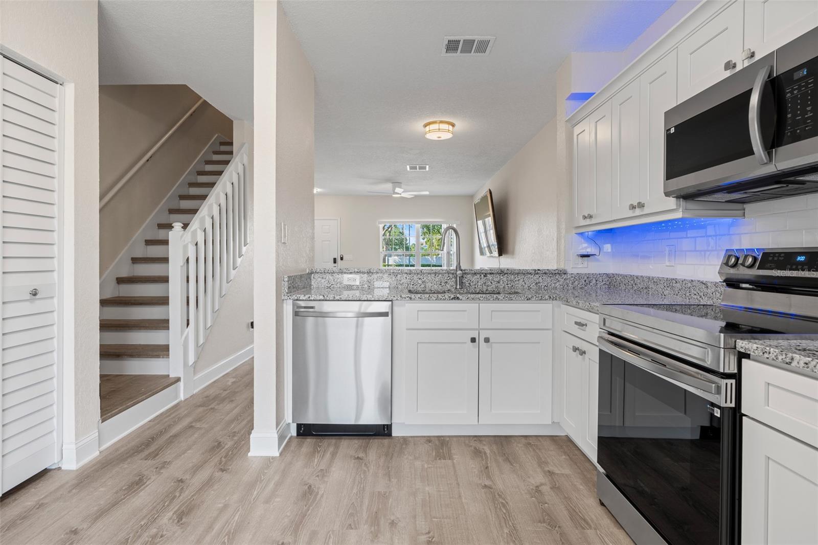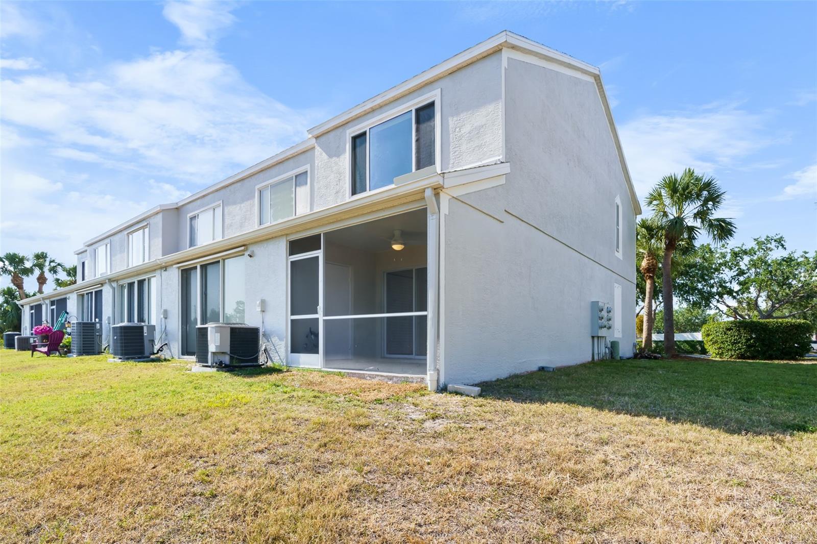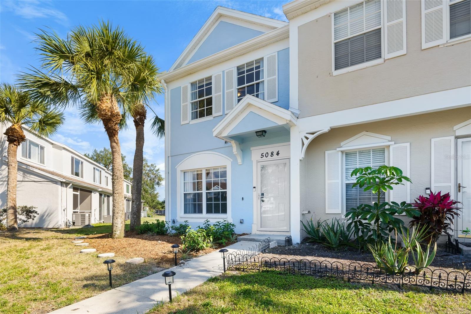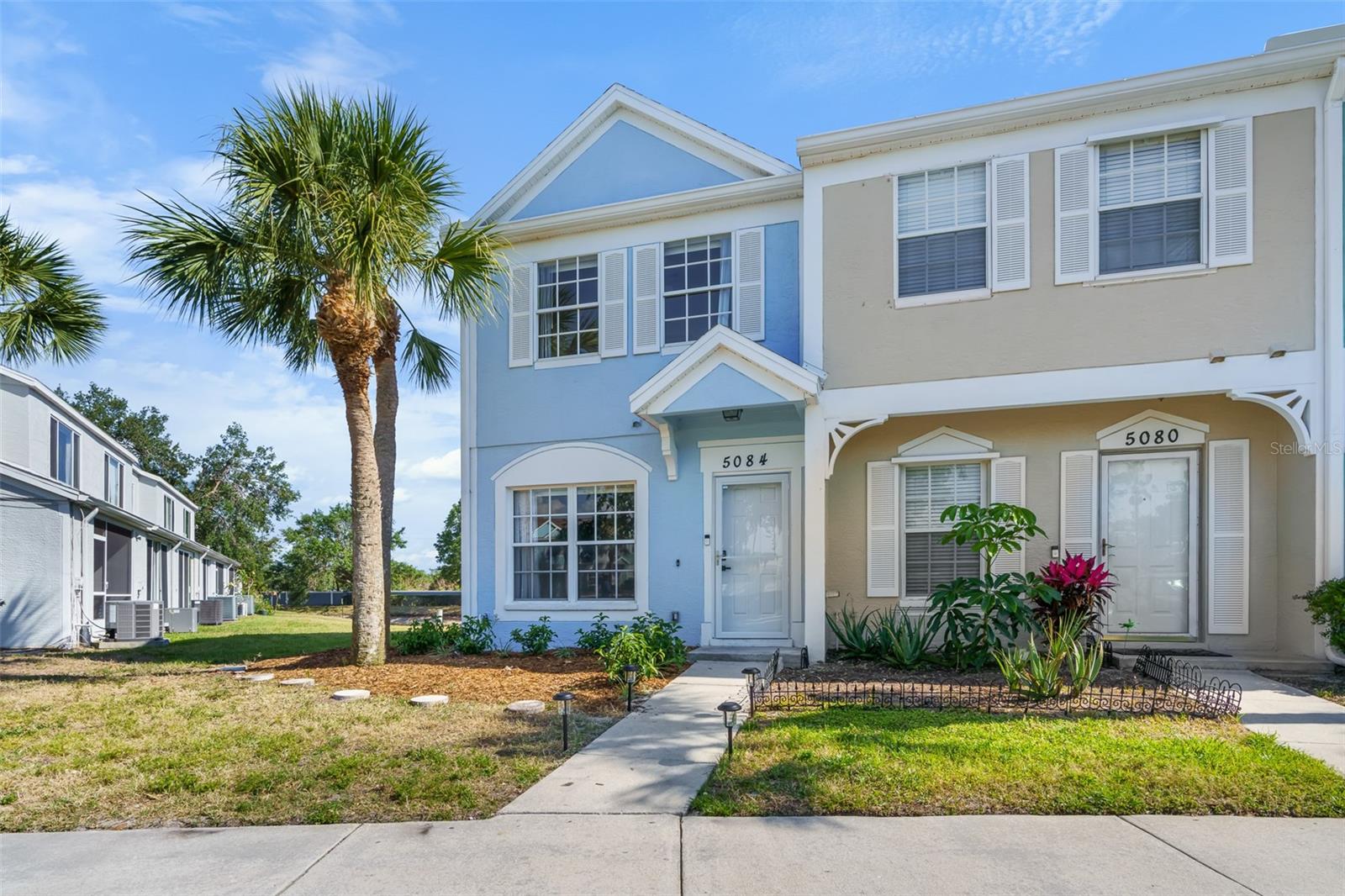 Back on market after Buyer's financing fell through. Fully remodeled 2BR/2.5BA Key West end unit townhome in a sought-after gated community! Move-in ready with luxury vinyl flooring, knockdown textured ceilings (no popcorn), Sherwin-Williams paint, white vertical blinds, and a mounted 85” TV (that conveys). Kitchen features new granite countertops, white shaker cabinets, stainless steel appliances under warranty, and open bar seating. Vaulted ceilings on second floor. Spacious primary suite with walk-in closet and serene pond views. En suite bathrooms fully updated with subway tile, new vanities, Toto toilets upstairs, and new glazed tubs. Additional upgrades include newer water heater, granite window ledges, Honeywell touchscreen thermostat, and fiberglass front door with keypad entry. HOA covers roof, landscaping, trash, and water. Amenities include a resort-style pool, clubhouse, tennis courts, basketball courts, volleyball courts, soccer field, and playground. Two gated entrances with remote/keypad access. Lowest priced unit in the community—completely turnkey. Just bring your toothbrush!