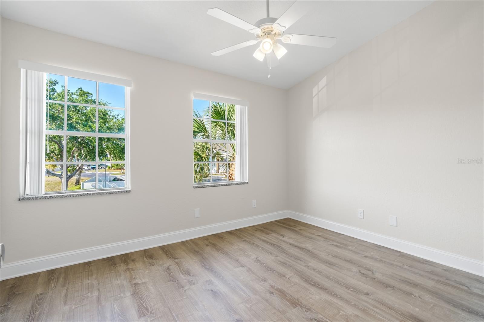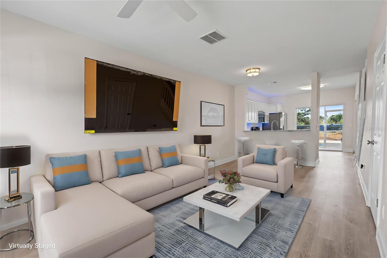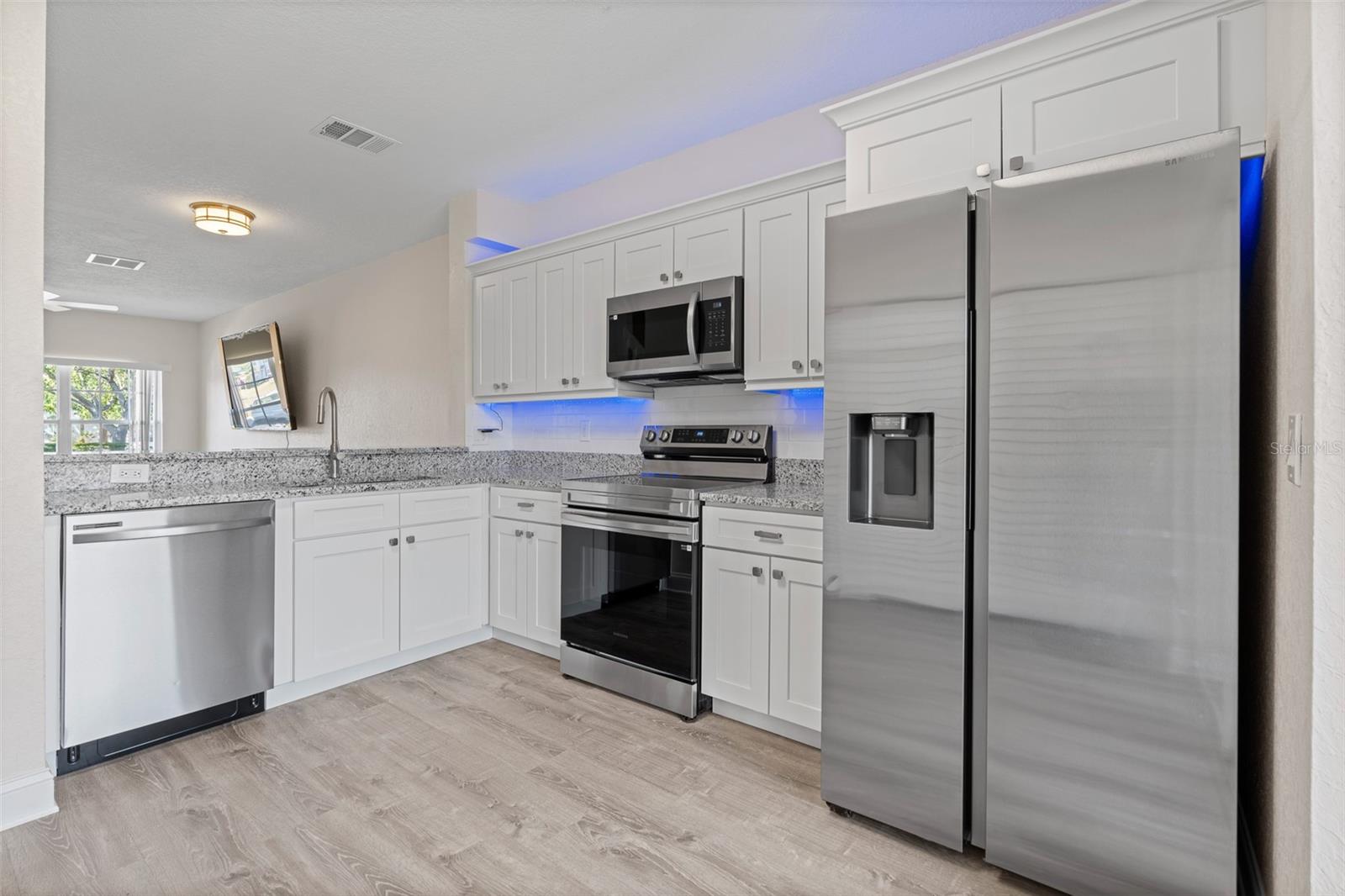Back on market after Buyer's financing fell through. Fully remodeled 2BR/2.5BA Key West end unit townhome in a sought-after gated community! Move-in ready with luxury vinyl flooring, knockdown textured ceilings (no popcorn), Sherwin-Williams paint, white vertical blinds, and a mounted 85” TV (that conveys). Kitchen features new granite countertops, white shaker cabinets, stainless steel appliances under warranty, and open bar seating. Vaulted ceilings on second floor. Spacious primary suite with walk-in closet and serene pond views. En suite bathrooms fully updated with subway tile, new vanities, Toto toilets upstairs, and new glazed tubs. Additional upgrades include newer water heater, granite window ledges, Honeywell touchscreen thermostat, and fiberglass front door with keypad entry. HOA covers roof, landscaping, trash, and water. Amenities include a resort-style pool, clubhouse, tennis courts, basketball courts, volleyball courts, soccer field, and playground. Two gated entrances with remote/keypad access. Lowest priced unit in the community—completely turnkey. Just bring your toothbrush!