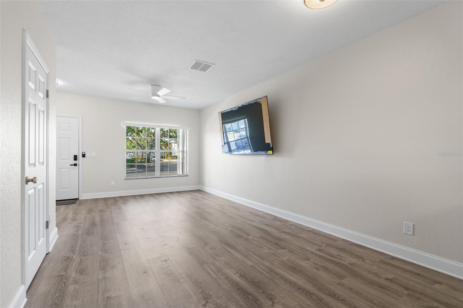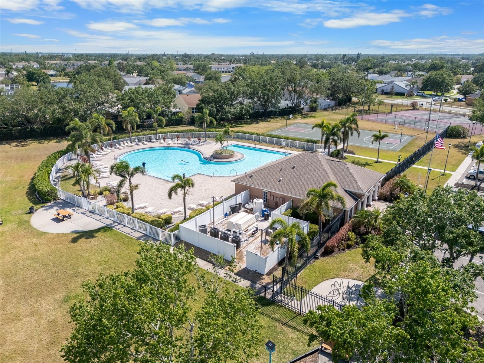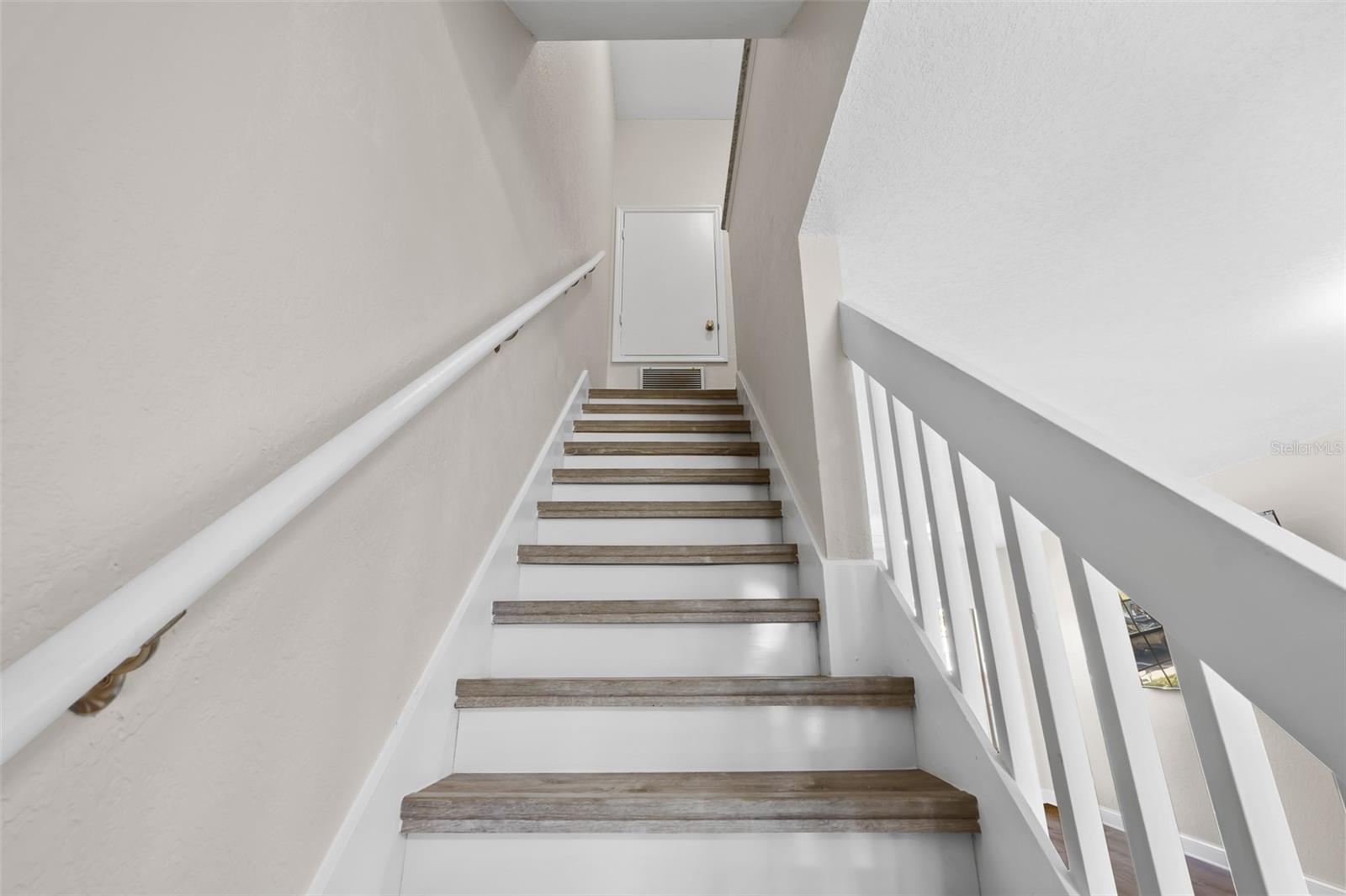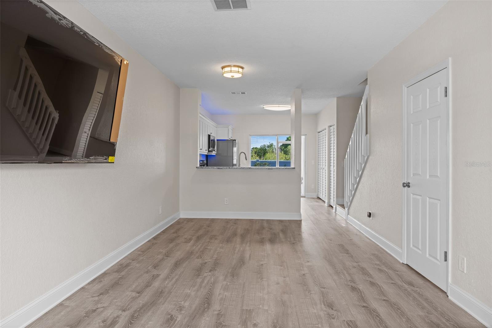 Back on market after Buyer's financing fell through. Fully remodeled 2BR/2.5BA Key West end unit townhome in a sought-after gated community! Move-in ready with luxury vinyl flooring, knockdown textured ceilings (no popcorn), Sherwin-Williams paint, white vertical blinds, and a mounted 85” TV (that conveys). Kitchen features new granite countertops, white shaker cabinets, stainless steel appliances under warranty, and open bar seating. Vaulted ceilings on second floor. Spacious primary suite with walk-in closet and serene pond views. En suite bathrooms fully updated with subway tile, new vanities, Toto toilets upstairs, and new glazed tubs. Additional upgrades include newer water heater, granite window ledges, Honeywell touchscreen thermostat, and fiberglass front door with keypad entry. HOA covers roof, landscaping, trash, and water. Amenities include a resort-style pool, clubhouse, tennis courts, basketball courts, volleyball courts, soccer field, and playground. Two gated entrances with remote/keypad access. Lowest priced unit in the community—completely turnkey. Just bring your toothbrush!