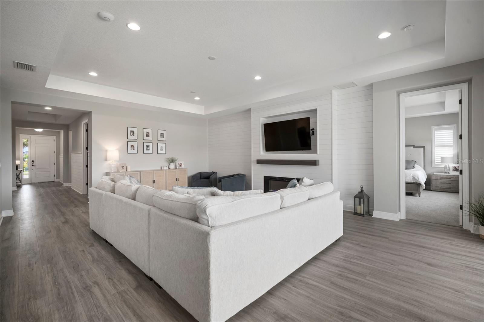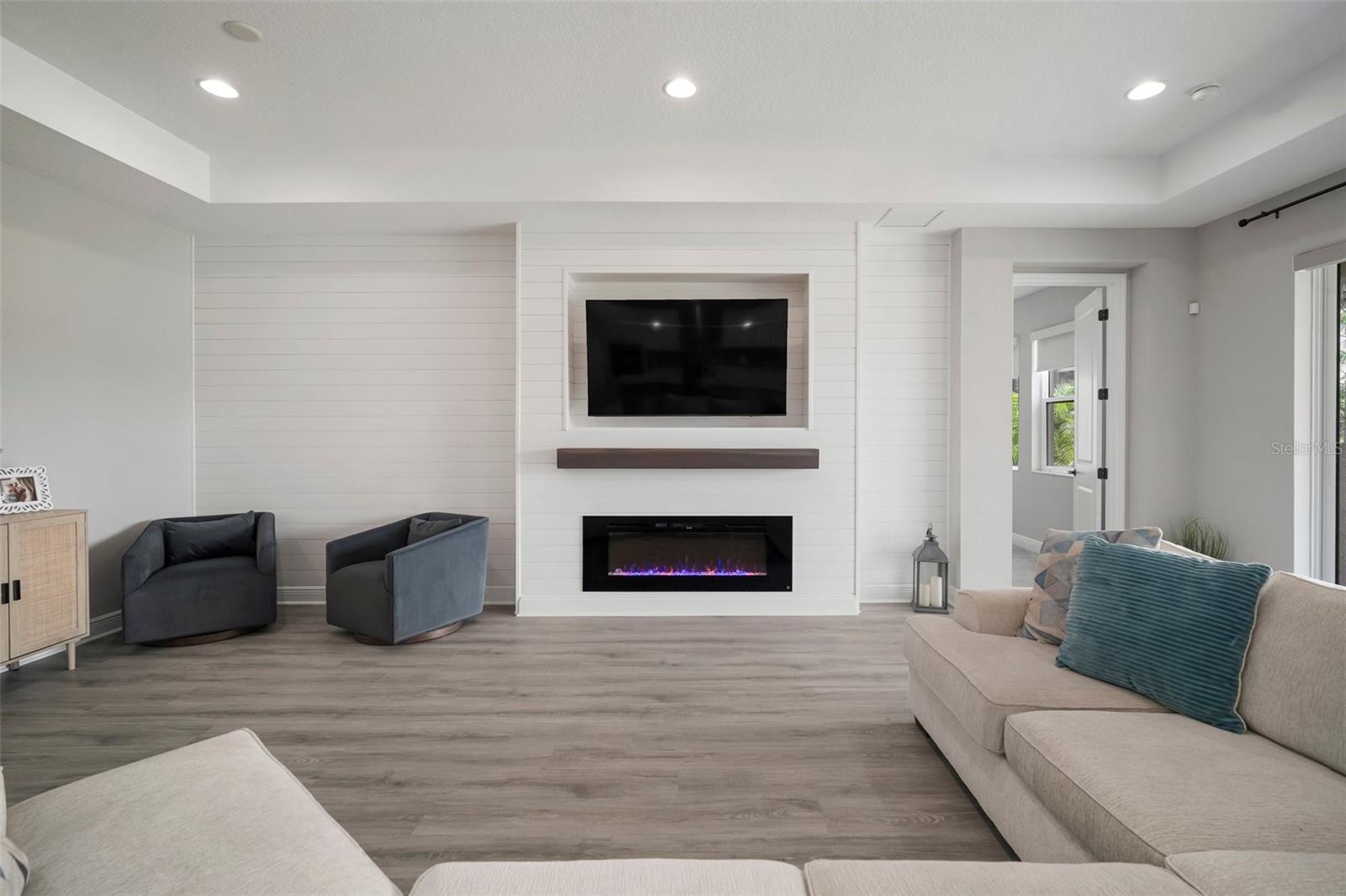 Presenting 923 Whimbrel Run…a stunning 4 bedroom 3 full bathroom masterpiece located in the heart of Bradenton’s beautiful Riverside Preserve community. Inside of this M/I Homes Ginnie model you will find a well-appointed gourmet kitchen that any chef would be proud to call their own. The massive kitchen island is a showstopper that’s perfect for gathering around. The desirable open concept floor plan ensures you stay central to the conversation while you entertain yet still provides spaces for privacy when desired. Two secondary bedrooms share a full bathroom with bathtub on one side of the home. Located on the other side of the home you will find another secondary bedroom featuring an en-suite full bathroom with a walk-in shower. The privacy this space offers makes it the perfect in-law suite or retreat for out-of-town guests who are visiting. The master bedroom, located at the back of the home, is private, spacious, and features brand new, neutral carpet. The master bathroom includes a large walk-in shower, and the master closet, equip with both his and her sides. This 2021 built home is truly one-of-a-kind and provides more upgrades than we can list, all of which enhance comfort, style, and peace-of-mind so that you can simply just enjoy living. Some of the many upgrades include: stunning light fixtures throughout, custom plantation shutters and roller shades, extensive decorative shiplap accent walls throughout the home, a gorgeous electric fire place with wood mantel, security system, 8ft doors throughout the home, quartz countertops, beautiful tile kitchen backsplash, tray ceilings, farmhouse kitchen sink, laundry room pre-plumbed for utility sink, upgraded and still under warranty LG washer and dryer, and new landscaping out front. This turn-key home awaits your arrival. 923 Whimbrel Run is certainly a stunning home, and it is matched by the lifestyle Riverside Preserve affords its residents. The gated neighborhood on the Manatee River, provides a kayak launch, BBQ grills, a covered pavilion with picnic tables and rocking chairs, and many quiet spots to stop, sit, and enjoy the beauty surrounding you. Schedule to fall in love with the gorgeous home today!