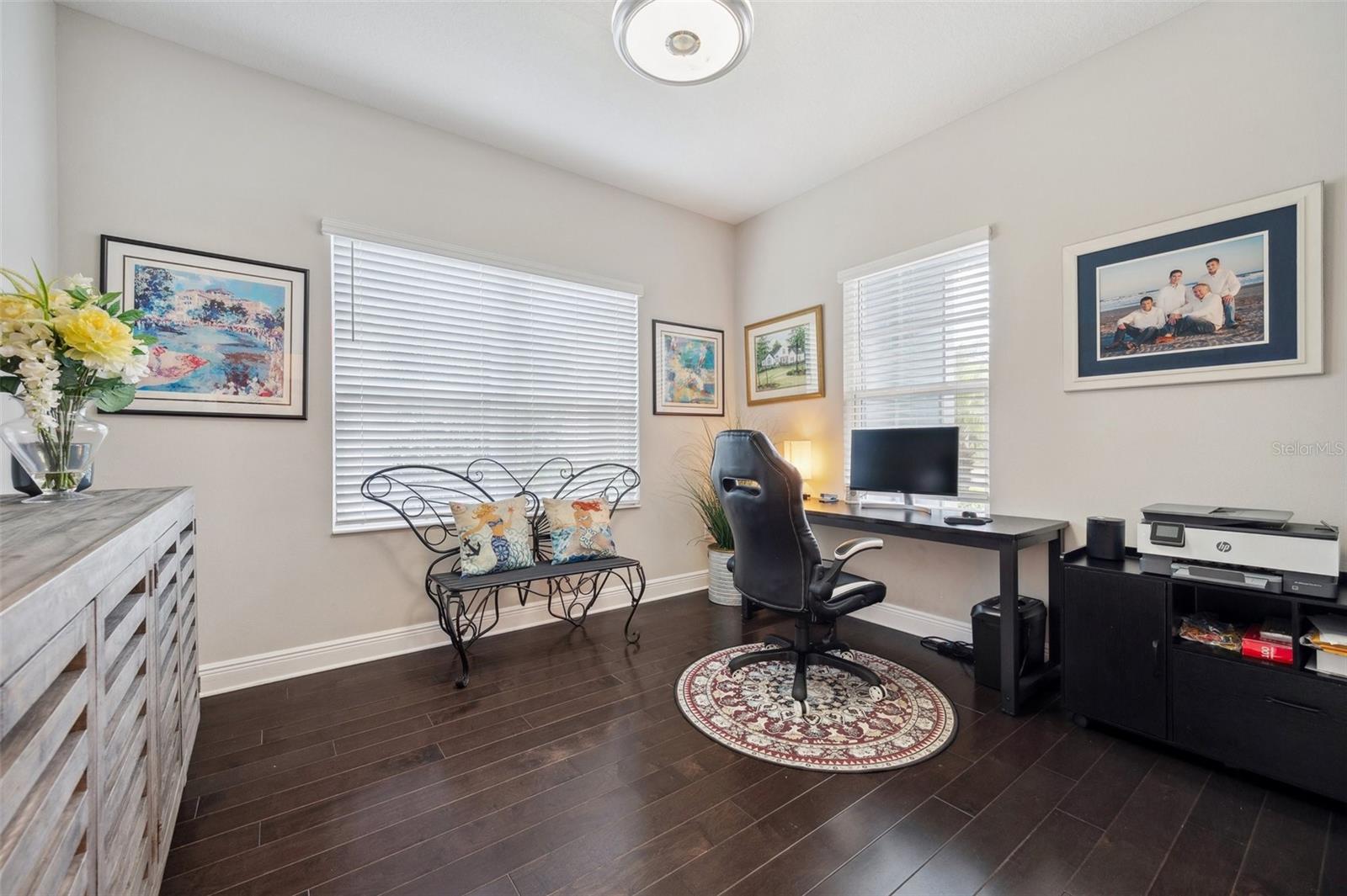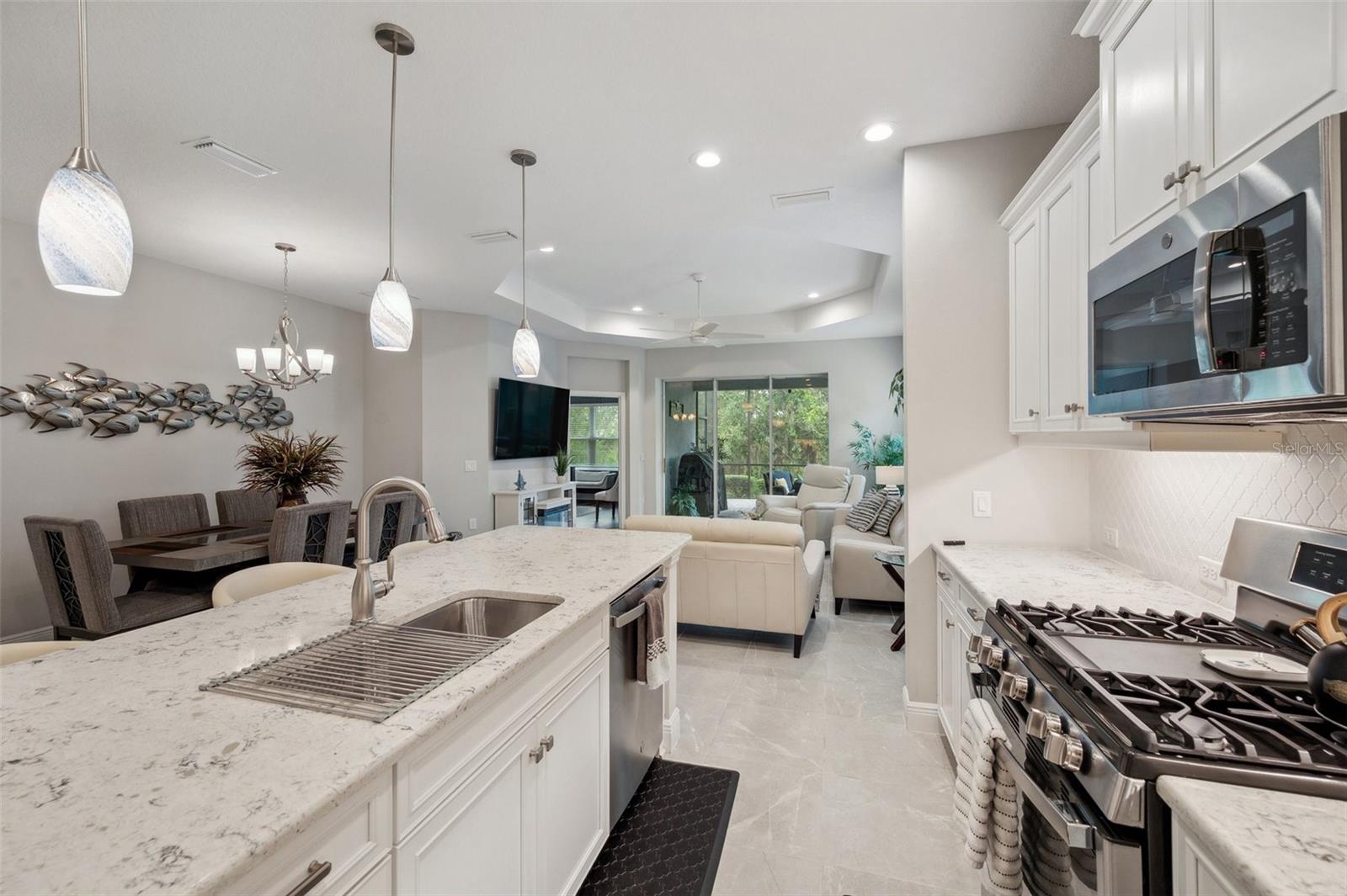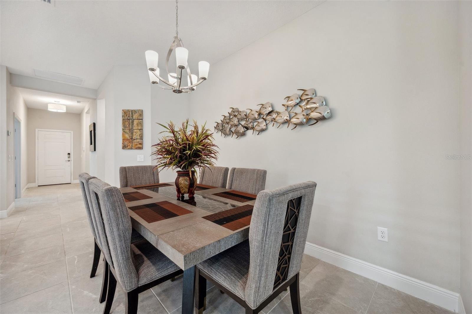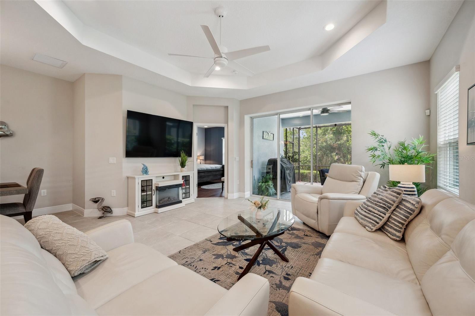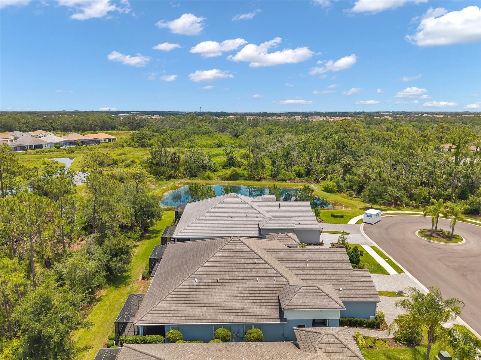 Tranquility and serenity best describe your new home in the exclusive streets of Indigo nestled within Lakewood Ranch. Indigo is a picturesque amenity-rich gated community 12 miles inland with excellent proximity to all of Lakewood Ranch, Sarasota, St Petersburg and Tampa. This elegant Tidewinds Model Villa has a plethora of natural lighting with an open airy spacious layout. Built in 2020 it is situated on a quiet cul-de-sac. This 1,617 square feet of living area features 2 bedrooms, 2 full baths, study/den, great room, dining area, kitchen with an island seating, indoor laundry room, plenty of storage space, covered lanai and a convenient 2-car garage providing ample room for your vehicles. Every detail in this home reflects quality, comfort, and care. The spacious great room is adorned with a tray ceiling, ceiling fan and seamlessly connects to the dining room. The 3 panel sliding pocket door leads to your covered lanai with your own private lush peaceful conservation area. There you can enjoy your morning coffee or simply relax in the evening taking in the sounds of nature. The lanai features a gas hookup for an outdoor kitchen / grill. The elegant kitchen is perfect for entertaining family and friends with a sizable island, breakfast bar, walk-in pantry, gas stove, beautiful tile backsplash, white cabinetry, stainless steel appliances, under cabinet accent lighting with stunning views of your backyard. The den / study is the perfect place to retreat in spacious style featuring engineered wood flooring and double doors. The owner’s suite boasts a large walk-in closet, a second oversized closet, two separate vanities with plenty of counter space, a walk-in shower and a private water closet. The guest bedroom adorned with plush carpeting, hosts a ceiling fan and a large oversized closet, welcoming your guests. The accompanying bath is equipped with tiled flooring, a linen closet, beautifully tiled with both a tub and shower. The laundry room features a convenient utility sink with shaker cabinets along with a storage closet. Throughout the villa you will find 5 1/4" baseboards, high end ceramic tile, ceiling fans throughout, LED recessed lighting and upgrades which are sure to please all. The HVAC is a TRANE XR 2019 unit, 2023 Maytag washer / dryer, 2020 Rheem Professional water heater. This AE Flood Zone property has a minimal Flood Insurance Premium. Indigo is a gated, natural gas community that features a full time on-site manager, full time activities director who manages an extensive calendar of activities and services for the residents. Indigo has its own private Oasis Pool exclusive to Villa Residents. In addition there is a resort style heated community pool at the main clubhouse where you will find 5 cabanas with an abundance of seating, 4 pickleball courts, 2 bocce ball courts, 24-hour exercise gym, meeting room/banquet room and playground. The HOA fees include all ground maintenance, mowing, fertilizing, irrigation, shrubs, trees, etc. Its prime location is close to Interstate 75 which ensures easy access to beaches and shopping, including the renowned UTC Mall. A-Rated Gullett Elementary and Mona Jain Middle School are both a short distance. Embrace a lifestyle of comfort, convenience and community in this charming Indigo villa. Schedule your private showing today.