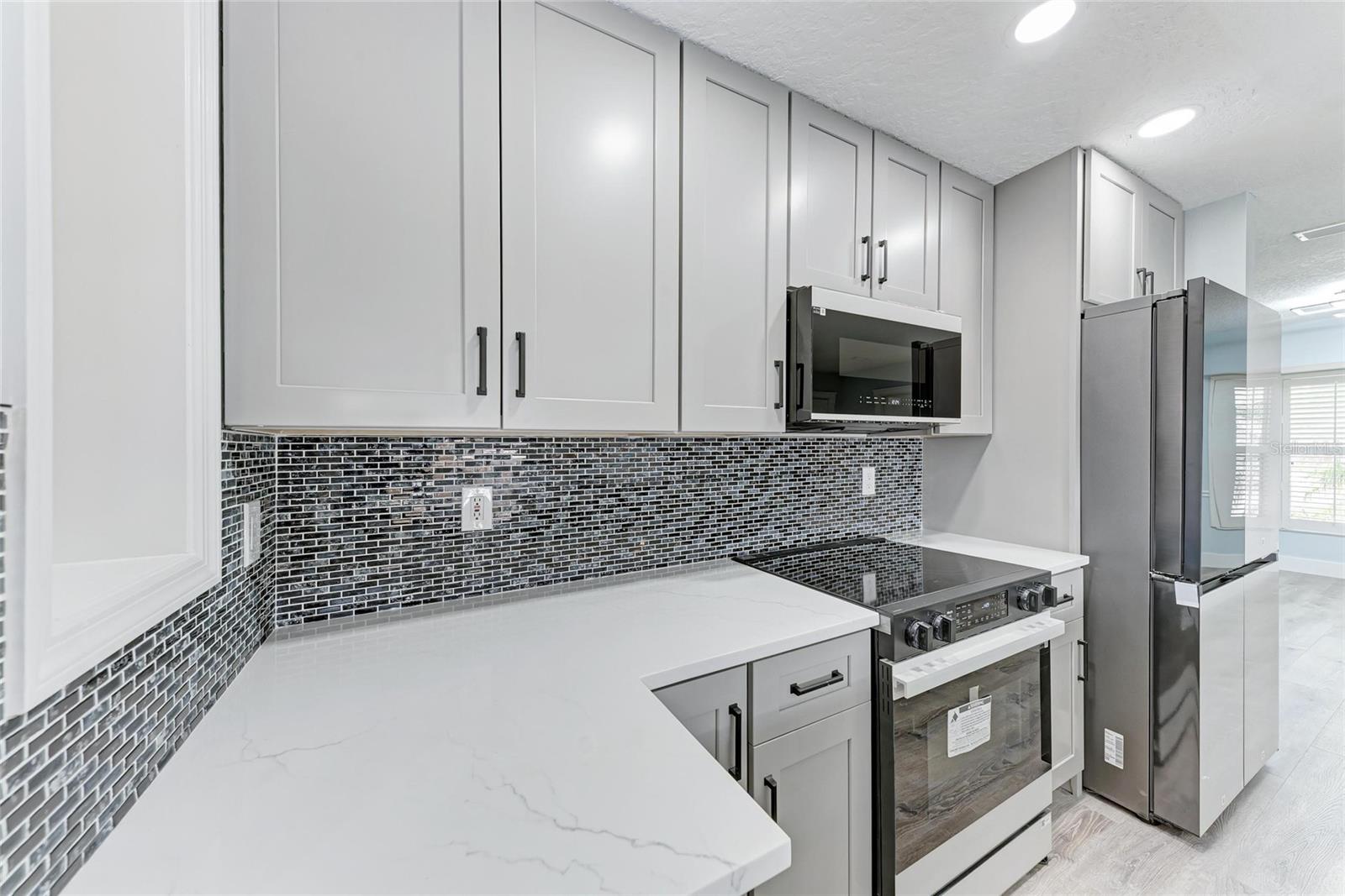 !!!PRICE IMPROVEMENT!!! Welcome to your dream home in the desirable Manatee Oaks community! This beautifully Updated 3-bedroom, 2-bathroom residence offers a perfect blend of comfort and style. New Roof & New AC just installed. The open floor plan features vaulted ceilings and abundant natural light, creating a warm and inviting atmosphere. The recently updated kitchen is a chef's delight, boasting sleek cabinetry, quarts countertops, and a tile backsplash. Brand New state of the art appliance with washer & Dryer. The spacious living room with built in entertainment center includes a 86 inch TV seamlessly connects to the kitchen, making it ideal for entertaining guests. Retreat to the owner's suite, complete with a walk-in closet and a private entrance to the screened lanai. The ensuite bathroom features a walk-in shower and ample storage space. Step outside to your private screened enclosure, perfect for enjoying Florida's sunny days. The backyard offers privacy and space for outdoor activities. Additional features include a 2-car garage, low HOA fees, and proximity to shopping, dining, and top-rated schools. Don't miss the opportunity to own this exceptional home in a prime Bradenton location!