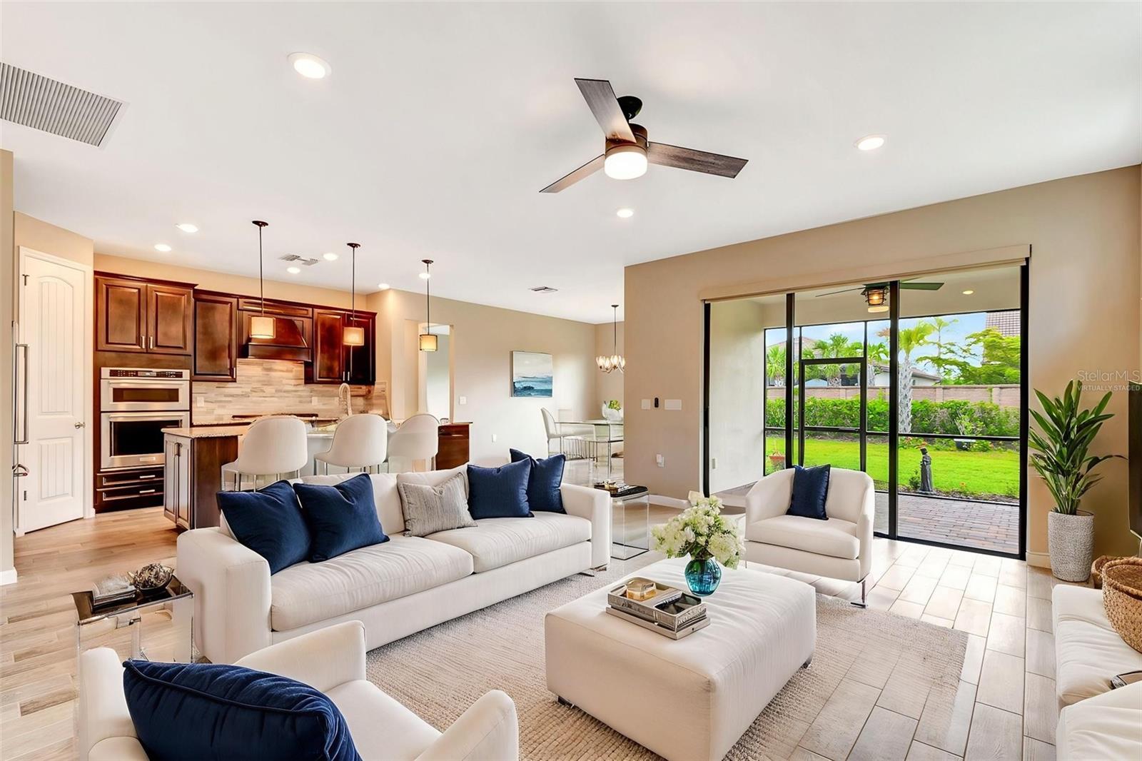 One or more photo(s) has been virtually staged. Amazing opportunity to own a well maintained, thoughtfully upgraded Summerwood Model in the sought-after 55+ Del Webb community of Lakewood Ranch! The Summerwood model has a bright, spacious open layout with an atmosphere perfect for entertaining. The home boasts 1,879 sq. ft. of beautifully designed living space, featuring 2 bedrooms, 2 full bathrooms, plus a den/flex space perfect for an office or third bedroom. The 2 car garage has a bonus tandem space which could be a great spot for a golf cart or extra storage! The owner’s suite is a private sanctuary, featuring a spa-like ensuite with dual vanities, private water closet, spacious shower, and a generous walk-in closet. The well-appointed kitchen is a chef’s dream, equipped with upgraded KitchenAid appliances, including a natural gas cooktop with custom hood, oven, refrigerator, and microwave. Elegant granite countertops, a stylish backsplash, upgraded cabinetry, pendant lighting, oversized center island with end cap storage cabinets, and pantry provide everything a culinary enthusiast could want. Designed for easy Florida living, the home features a screened lanai, wood look plank tile throughout, abundant storage, full house water softener, and wifi enabled rolldown shades for shade and privacy. Del Webb Lakewood Ranch features world-class amenities, including 6 tennis courts, 8 pickleball courts, 4 bocce ball courts, a state-of-the-art fitness center, group classes, and a resort-style pool with lap pool. There is also and on-site restaurant and bar, and a variety of clubs and social activities overseen by a full-time Lifestyle Director. With the HOA managing lawn maintenance, irrigation, fertilization, and light pruning, you’ll enjoy a low-maintenance lifestyle giving you more time to explore all the activities and amenities that Del Webb has to offer. This beautifully maintained home is move-in ready and won’t last long!