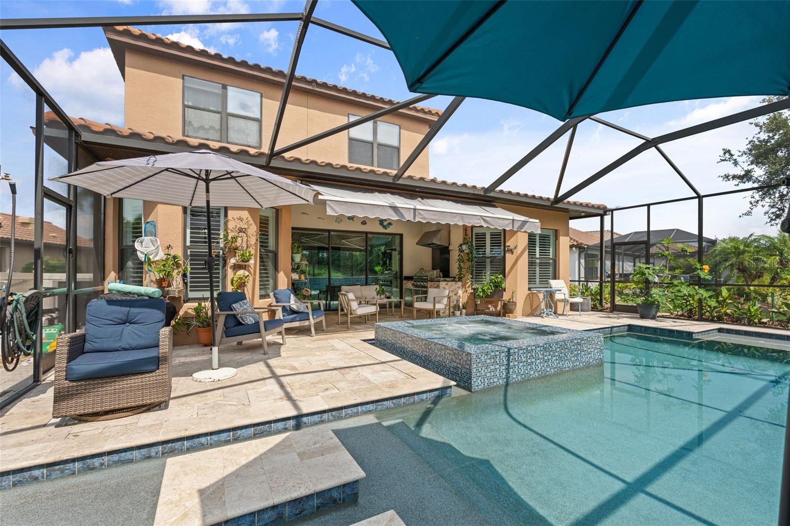 SPECTACULAR AND METICULOUSLY MAINTAINED THREE BEDROOM, DEN, 3 ½ BATH TREVI MODEL CONFIGURATION OFFERED FOR PURCHASE IN THE ESPLANADE GOLF AND COUNTRY CLUB OF LAKEWOOD RANCH. NOT A MANDATORY GOLF MEMBERSHIP. FEATURING CHEFS’ KITCHEN, TOP OF THE LINE CABINETRY, STAINLESS APPLIANCES, BUILT-IN OVEN, FIVE BURNER GAS COOKTOP, UPGRADED FLOOR AND THE BATH TILE, CROWN MOLDING, PLANTATION SHUTTERS, DRY BAR, COURTYARD WITH FLOWER FOUNTAIN. OFFICE/DEN CONFIGURED WITH BUILT-IN DESK, WORKSTATION AND FEATURE WALL. MAIN LEVEL, MASTER AND GUEST ROOM WITH EN-SUITE BATH. SECOND FLOOR FEATURES A BONUS MEDIA, SOUND ROOM WITH A WET BAR AND REFRIGERATOR AND THEY COMFY PRIVATE ADDITIONAL ROOM AND FULL BATH. OVER $280K IN IMPROVEMENTS INCLUDING AN AMAZING $150K HEATED SALTWATER POOL WITH MOSAIC INLAY, FLOATING INVISIBLE EDGE, SPA, MULTI LEVEL PLANTERS, YOGA AREA, AND AN OUTDOOR KITCHEN. ESPLANADE GOLF AND COUNTRY CLUB IN A RESORT LIKE NO OTHER IN THE AREA. WORLD CLASSIC GOLF COMMUNITY, PRACTICE RANGE, AND COMPETITIONS. RESIDENCE OF THIS HOME GET A REDUCED GOLF RATE IF DESIRED. POOLSIDE BAJA TIKI BAR, RESORT STYLE POOL WITH LOUNGE CHAIRS AND CABANAS, TORCH LIT EVENINGS BY THE FIRE PIT… A GREAT WAY TO SPEND TIME WITH FAMILY AND FRIENDS… ENJOY THE INCREDIBLE WEATHER. CULINARY CENTER OFFERS COOKING CLASSES, WINE TASTINGS AND FIRST-CLASS DINING. RESIDENCE CAN ALSO UTILIZE A SPA, FITNESS AND WELLNESS CENTER, PICKLEBALL AND TENNIS COURTS! INTERNATIONAL AIRPORTS WITHIN AN HOUR DRIVE, WORLD RENOWNED SIESTA KEY BEACHS, SAINT ARMAND CIRCLE AND DOWNTOWN SARASOTA EUROPEAN FEEL. UNIQUELY SPECIAL WEEKLY FARMER’S MARKETS DOWNTOWN LAKEWOOD RANCH AND DOWNTOWN SARASOTA.