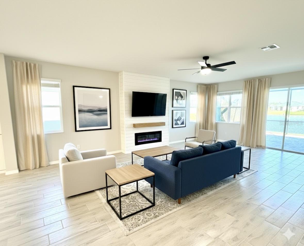 Welcome home! ***BEAUTIFUL UPGRADES YOU CAN'T FIND WITH NEW CONSTRUCTION! CUSTOM FLOOR TO CEILING BRAND NEW ELECTRIC FIREPLACE, FRESH NEW INTERIOR PAINT, WINDOW TREATMENTS, NEW CEILING FANS IN BEDROOMS, AND EXTENDED PAVERED CAGED LANAI*** Gorgeous like new home steps away from grocery stores, restaurants, pharmacy, coffee shops, and anything you need!*** This spacious 4-bedroom, 2-bathroom gem has a relaxed, welcoming vibe from the moment you pull up. The paver driveway, lush landscaping, and detailed stonework out front set the tone, and it only gets better from there. Step inside to a light-filled, open layout that feels easy and comfortable with TILE THROUGHOUT—perfect for both quiet mornings and lively get-togethers. Out back, a peaceful pond view adds a calming touch to your daily routine. The kitchen is ready for whatever you’re cooking up, with granite counters, tons of cabinet space, and an Energy Star dishwasher to make cleanup a breeze. The primary suite is your own private retreat, complete with a soaking tub, double sinks, walk-in shower, and a huge closet. Guests will love the front bedroom which gives everyone their own space. Plus, you're just minutes from the restaurants and trails! Lakewood Ranch is the premier subdivision in the area! Mortgage savings may be available for buyers of this listing.