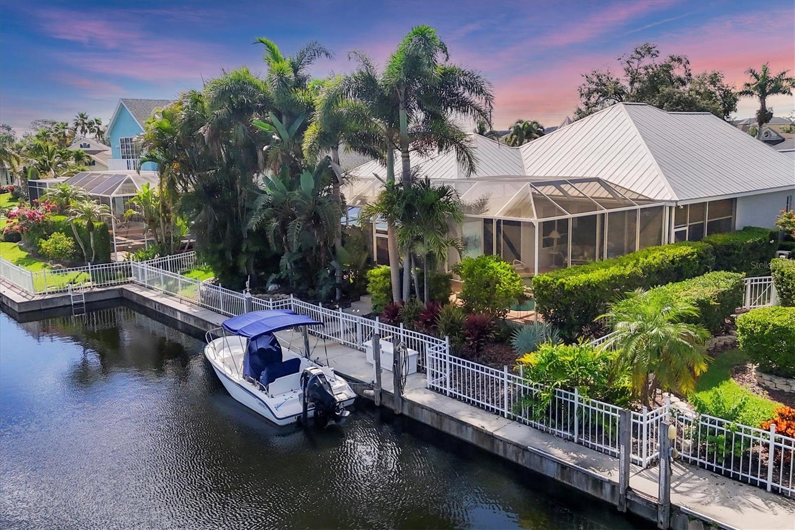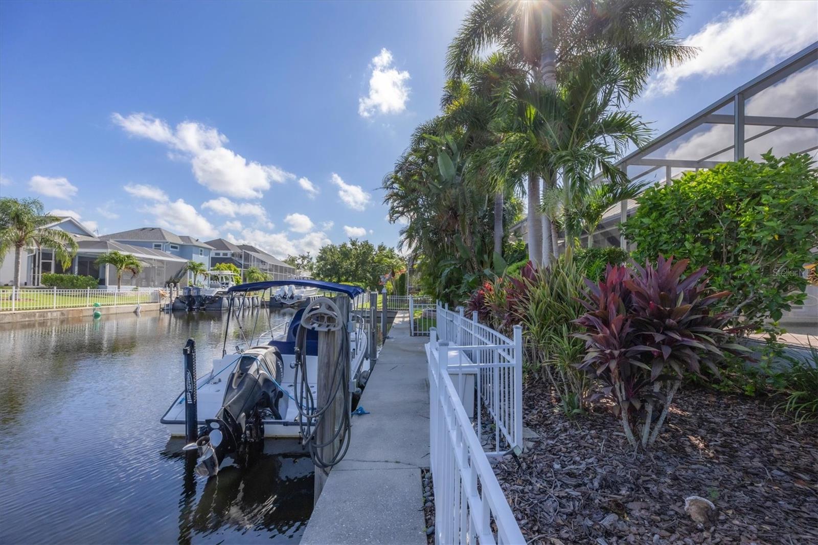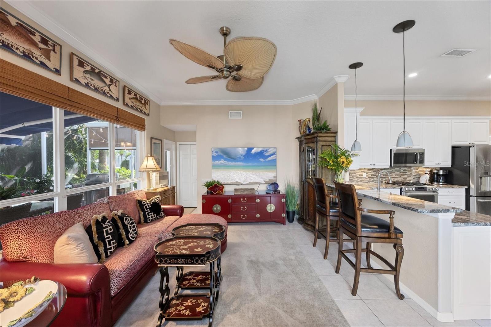 Best value in The Inlets! Now offered at a major price reduction, this Key West–inspired waterfront home combines refined coastal style with unbeatable pricing in one of the area’s premier boating communities. Beautifully updated and move-in ready, this 3-bedroom, 2.5-bath home is designed for seamless indoor-outdoor living. An open floor plan with soaring ceilings, crown molding, and disappearing-corner sliders connects the interior to expansive screened patios, creating the perfect setting for entertaining or relaxing by the water. The kitchen shines with white cabinetry, granite countertops, tile backsplash, and stainless appliances—including a gas range and double electric oven—while the large pantry/laundry room offers abundant storage. The primary suite is a private retreat with pool views, lanai access, dual closets, and a spa-like bath featuring double vanities, a garden tub, and walk-in shower. A split plan provides two additional bedrooms plus a hall bath, while a convenient half bath opens to the outdoor living area. Step outside to your tropical oasis: a heated saltwater pool and spa, covered lanai, remote awning, and solar shades for comfort year-round. The 3-car tandem garage includes double rear doors to the canal—perfect for boat storage or maintenance. Dock your boat (up to 36 ft) with power and water and enjoy fishing, cruising the Manatee River, or dining at local waterfront venues—all with direct Gulf access. Updates include fresh 2024 exterior paint, 2020 HVAC, 2022 pool pump, and 2023 gas heater/automation with salt cell. Community amenities feature tennis, walking trails, fishing dock, kayak launch, playground, and social activities—all with low HOA, no CDD, and low flood insurance. Minutes to I-75, SR-64, Sarasota, St. Pete, Tampa, airports, dining, shopping, and Gulf beaches—this is truly the best-priced waterfront lifestyle in The Inlets.