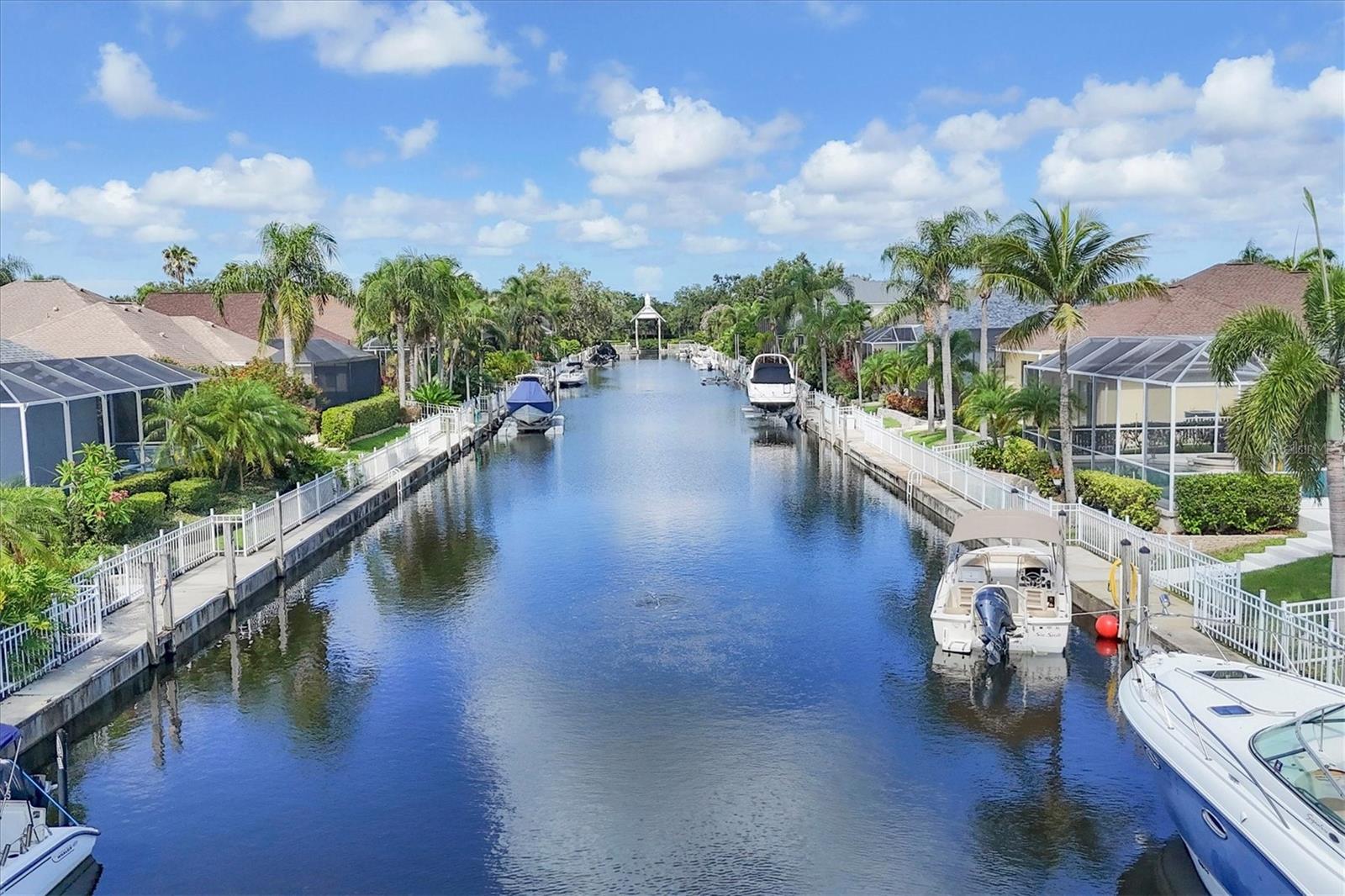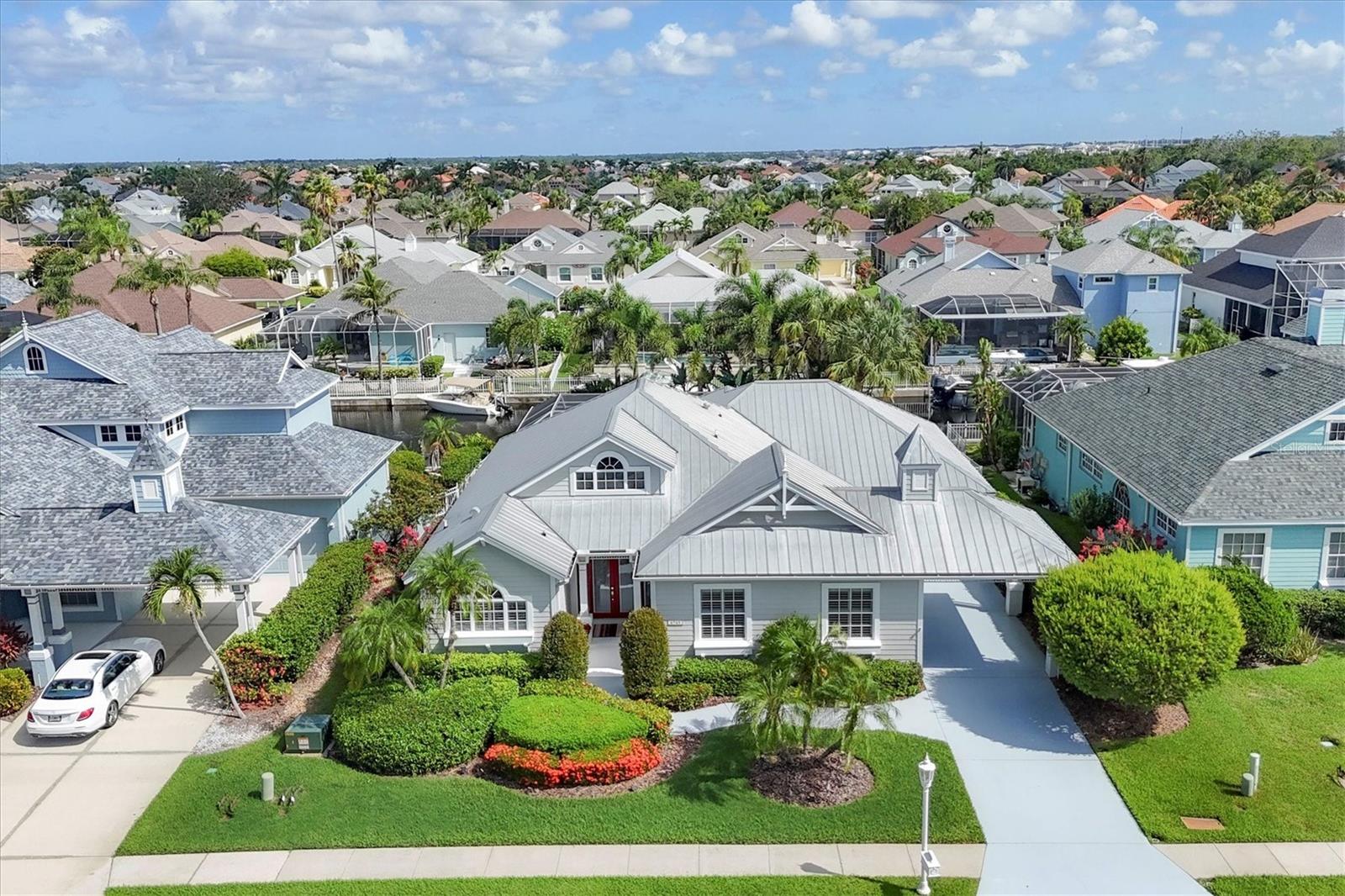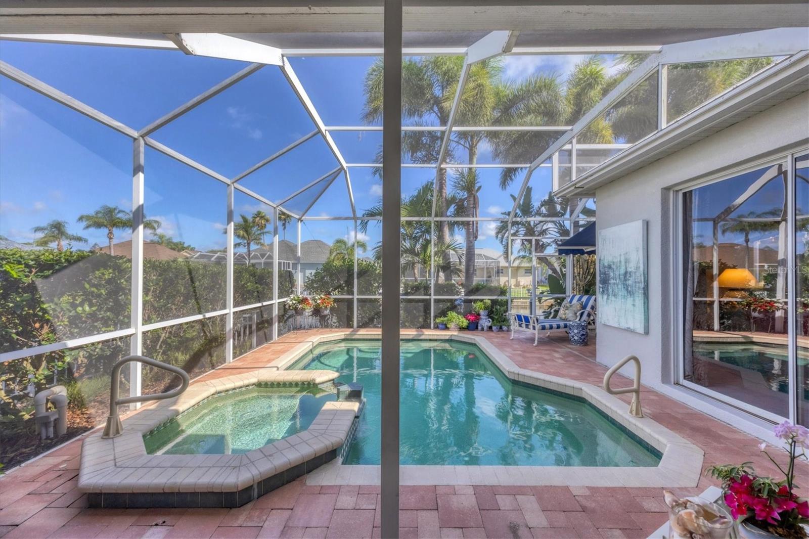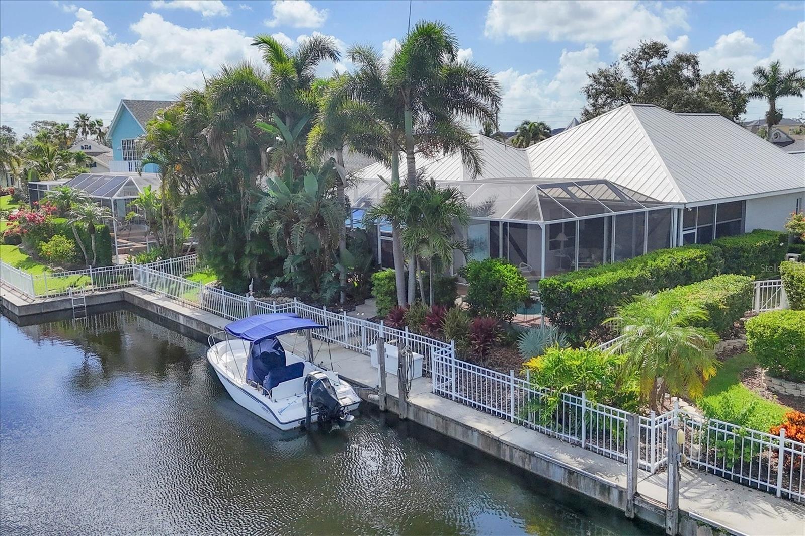 Best value in The Inlets! Now offered at a major price reduction, this Key West–inspired waterfront home combines refined coastal style with unbeatable pricing in one of the area’s premier boating communities. Beautifully updated and move-in ready, this 3-bedroom, 2.5-bath home is designed for seamless indoor-outdoor living. An open floor plan with soaring ceilings, crown molding, and disappearing-corner sliders connects the interior to expansive screened patios, creating the perfect setting for entertaining or relaxing by the water. The kitchen shines with white cabinetry, granite countertops, tile backsplash, and stainless appliances—including a gas range and double electric oven—while the large pantry/laundry room offers abundant storage. The primary suite is a private retreat with pool views, lanai access, dual closets, and a spa-like bath featuring double vanities, a garden tub, and walk-in shower. A split plan provides two additional bedrooms plus a hall bath, while a convenient half bath opens to the outdoor living area. Step outside to your tropical oasis: a heated saltwater pool and spa, covered lanai, remote awning, and solar shades for comfort year-round. The 3-car tandem garage includes double rear doors to the canal—perfect for boat storage or maintenance. Dock your boat (up to 36 ft) with power and water and enjoy fishing, cruising the Manatee River, or dining at local waterfront venues—all with direct Gulf access. Updates include fresh 2024 exterior paint, 2020 HVAC, 2022 pool pump, and 2023 gas heater/automation with salt cell. Community amenities feature tennis, walking trails, fishing dock, kayak launch, playground, and social activities—all with low HOA, no CDD, and low flood insurance. Minutes to I-75, SR-64, Sarasota, St. Pete, Tampa, airports, dining, shopping, and Gulf beaches—this is truly the best-priced waterfront lifestyle in The Inlets.