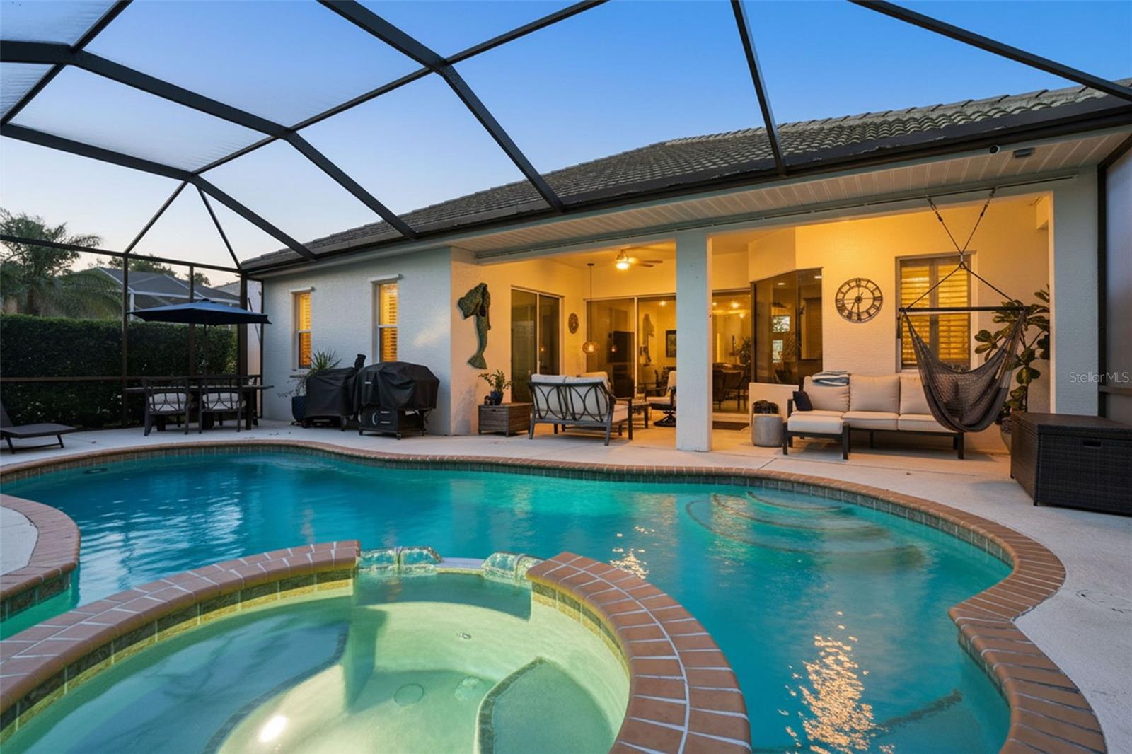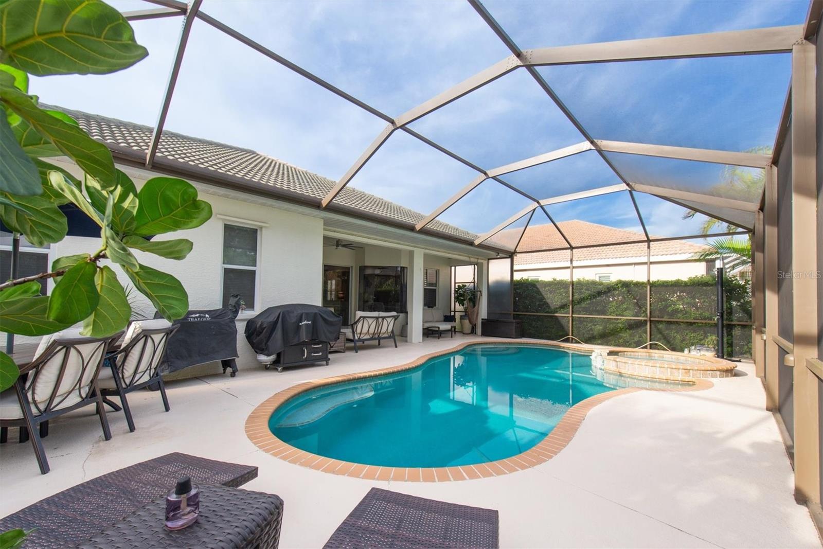 Price Reduced and Ready to Sell! If you want privacy and a large back yard with a gorgeous pool, this is a must see! Tucked away in the sought-after neighborhood of Mote Ranch, adjacent to University Park Country Club, with EXTREMELY LOW HOA fees and fantastic amenities, this 3-bedroom, 2-bathroom gem offers the perfect blend of luxury, comfort, and convenience. With a 2-car garage, tile roof with 20 years of life left, and a long list of premium upgrades, this home is move-in ready and made for modern living. Step inside to soaring high ceilings, all-new ceiling fans, and a no-carpet interior that feels fresh and contemporary. The open-concept kitchen and family room combo is ideal for everyday living, while the massive living/dining room offers the perfect flex space for a home office or entertaining. This home's chef's kitchen features stone countertops, a built-in range and oven, and a sleek, modern design that flows effortlessly into the living space. The updated master bathroom and walk-in closet in the large primary suite add to the home’s luxurious feel. Your private backyard oasis awaits with a heated saltwater pool and spa, enclosed in a no-see-um proof pool cage for year-round enjoyment. Surrounded by stone landscaping, professional outdoor lighting, and no rear neighbors, this space is perfect for relaxing or entertaining in total privacy. This smart, secure & efficient home boasts a whole-home water purifier, filtration, and softener system, new AC (2023) for peace of mind, 3 Nest security cameras for added security, hurricane shutters for every window + soft shutter for the lanai, connection to a whole house generator system, seamless gutters, full irrigation system, and so much more. This home checks every box—luxury finishes, smart upgrades, and a location that can’t be beat. Enjoy access to a clubhouse, pool, and playground, all while being just minutes from top-rated schools, UTC shopping, dining, and more. Schedule your private tour today and experience the lifestyle you’ve been dreaming of!