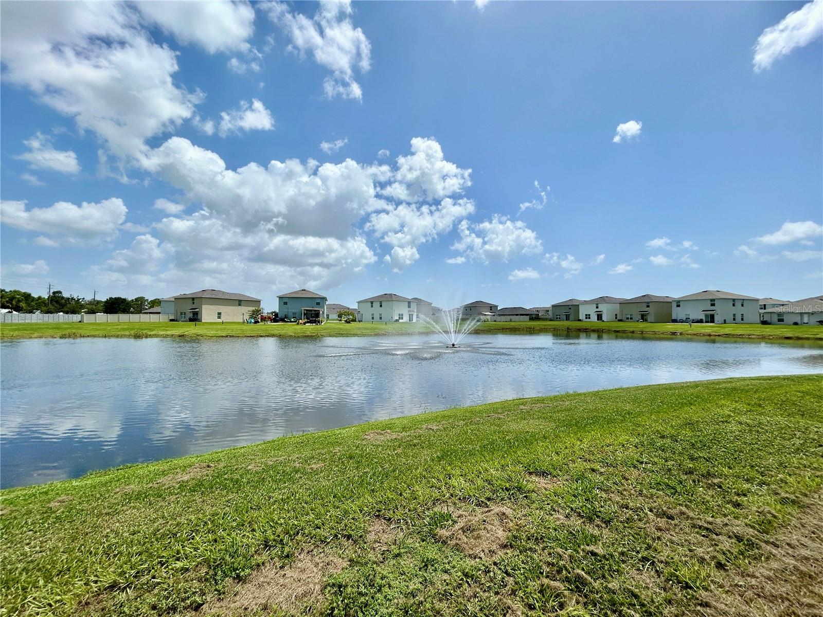 Welcome to 3842 Calamity Terrace, a spacious and move-in-ready home located in the desirable Evergreen community. Built in 2021, this concrete block construction home offers 4 large bedrooms, 2.5 bathrooms, and over 2,200 square feet of living space. The open floor plan is ideal for both entertaining and everyday living, featuring granite countertops, brand-new stainless steel appliances, and an indoor laundry room for added convenience. The home is also outfitted with smart home features such as temperature control and entertainment system with speakers throughout. The private backyard patio overlooks a serene lake with a fountain, and there’s plenty of space to add a pool and screened enclosure—making it perfect for creating your own backyard oasis. Situated on a premium cul-de-sac lot, this home also includes a two-car garage, generous closet space, and access to a beautiful community pool with pavilion and grilling area. With a low monthly HOA of just $108, this property offers both value and lifestyle. The taxes shown in the listing will also be lower if you are a resident of the home.