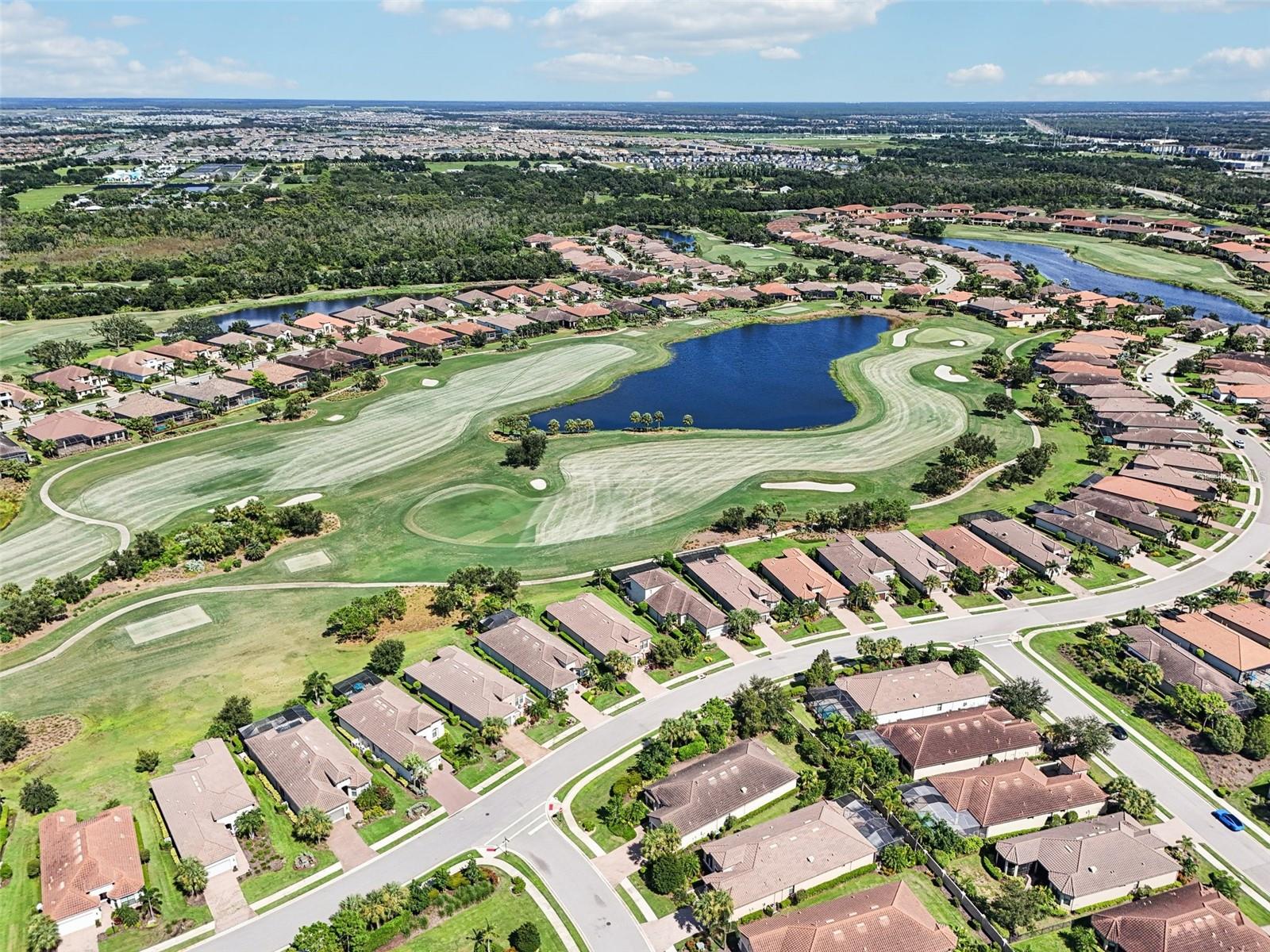Come live the resort lifestyle in the highly desired Esplanade community. A sanctuary inside and out, this home welcomes you with a light filled open concept Lazio model design with engineered hardwood floors, designer light fixtures, tray ceilings and opulent crown molding throughout. The chef's kitchen boasts Monogram appliances, double ovens, pantry, touchless faucet, granite counters with a huge island for entertaining. The open living and dining areas are great to accommodate all your guests inside or you can open all the sliders to the screened extra large lanai. This 25 x 36 peaceful area is gorgeously landscaped and you can enjoy the serene waterfall of the koi pond and lush greenery. There is plenty of space for seating and access to the granite wet bar and full outdoor kitchen with stainless cabinets, grill, sink and refrigerator. The owner's suite is equipped with a large closet with custom built ins, an expanded size shower with seat, and double sinks over granite marble counter. Two other full baths with granite counters and fine finishes are adjacent to the two other nicely sized bedrooms. Additionally there is also a 11x13 bonus room/office/den behind frosted glass doors offering great flexibility. A full laundry room with plenty of cabinets and counter space is right off the 2 car garage. At the end of the street you have tennis courts, pickleball, waterfront park and large pool; with 2 additional pools, fitness center, golf club, spa, nail salon, dog parks, and restaurants just a short walk away in the community. There is no need to pay more for a deeded golf membership when all residents can use the amenities for just a fee. Explore all the benefits at the community website, esplanadelwr. Whether you are going to out of the town to the Waterside district, Sarasota's wealth of cultural highlights, or a lazy day at the nearby beaches of Anna Maria or Siesta Key, there is something here for everyone.