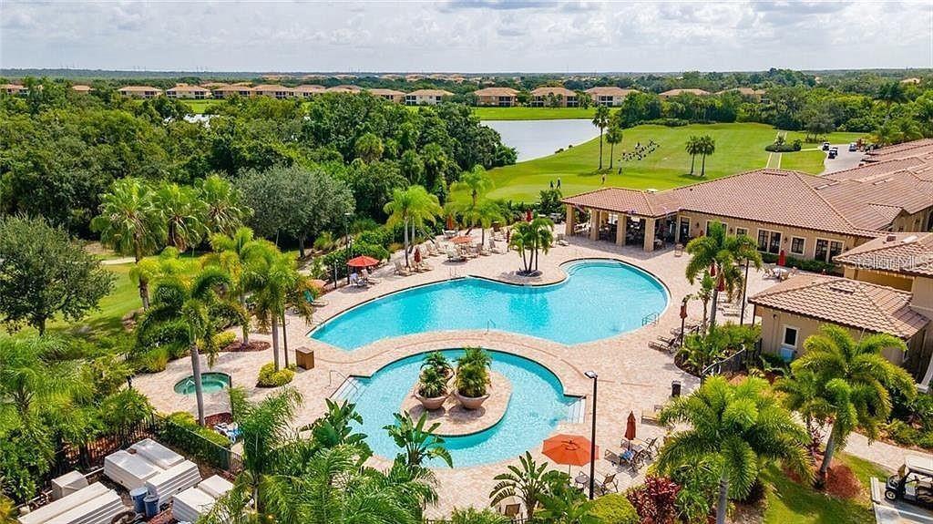 Welcome to maintenance-free, resort-style living at its finest! This turnkey furnished villa in River Strand offers the perfect blend of luxury, convenience, and an active lifestyle, all wrapped up in a spectacular lake view setting. Meticulously maintained and move-in ready, this spacious 2-bedroom, 2-bathroom villa also features a dedicated Office/Den, providing flexible space for work, hobbies, or guests. The kitchen is a delight, boasting beautiful solid wood cabinets, granite countertops, and stainless steel appliances. Life here is a vacation every day with a Social Club membership included! The River Strand community is a paradise centered around its luxurious main clubhouse. Residents enjoy upscale dining at the restaurant, casual drinks at the tiki bar, and access to the golf course. River Strand Golf & Country Club features a 27-hole championship golf facility designed by world-renowned architect Arthur Hills. Beyond golf, amenities abound, including sparkling resort-style swimming pools, heated spas, 2 fitness centers, 9 lighted Har-Tru tennis courts and 8 pickleball courts. With maintenance covering all exterior and grounds upkeep, all you have to do is relax and enjoy the Florida sun. This is more than a home, it's an opportunity to embrace the carefree luxury lifestyle you deserve!
