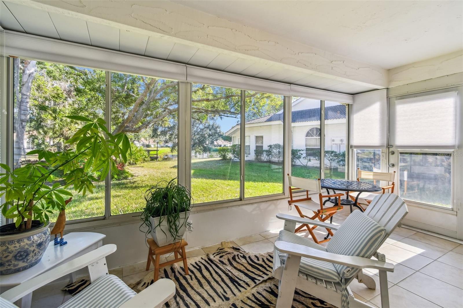 Welcome to Garden Lakes, a beautifully maintained gated 55+ community where comfort, convenience, and coastal living come together. This inviting two-bedroom, two-bath villa offers 1,456 sq. ft. of well-designed living space, enhanced by abundant natural light, peaceful pond views, and access to a charming shared deck overlooking the water. The kitchen is both stylish and functional, featuring quartz countertops, solid wood cabinetry, stainless steel appliances, a closet pantry, and a delightful bay-window dinette—perfect as a breakfast nook or a cozy home office space. The primary suite is a serene retreat with tranquil pond views, a private dressing room with sit-down vanity and sink, dual closets including a walk-in, and an en-suite bathroom with a spacious walk-in shower. Enjoy year-round relaxation in the enclosed Florida room, which is under central air and framed by glass windows that showcase the beautiful pond setting. Additional features include a generous dining area with bay windows, a versatile second bedroom ideal as a den or office, an inside laundry room with side-by-side washer and dryer, and an attached one-car garage with workshop space, built-in cabinetry, and attic storage. Garden Lakes offers an active lifestyle with access to a recently updated clubhouse, fitness center, billiards room, heated pool, tennis and pickleball courts, shuffleboard, and scenic walking trails. Perfectly situated near the shopping, dining, and world-class beaches of Bradenton, Sarasota, and Anna Maria Island, this villa provides the ideal Florida coastal lifestyle in a peaceful, friendly community.