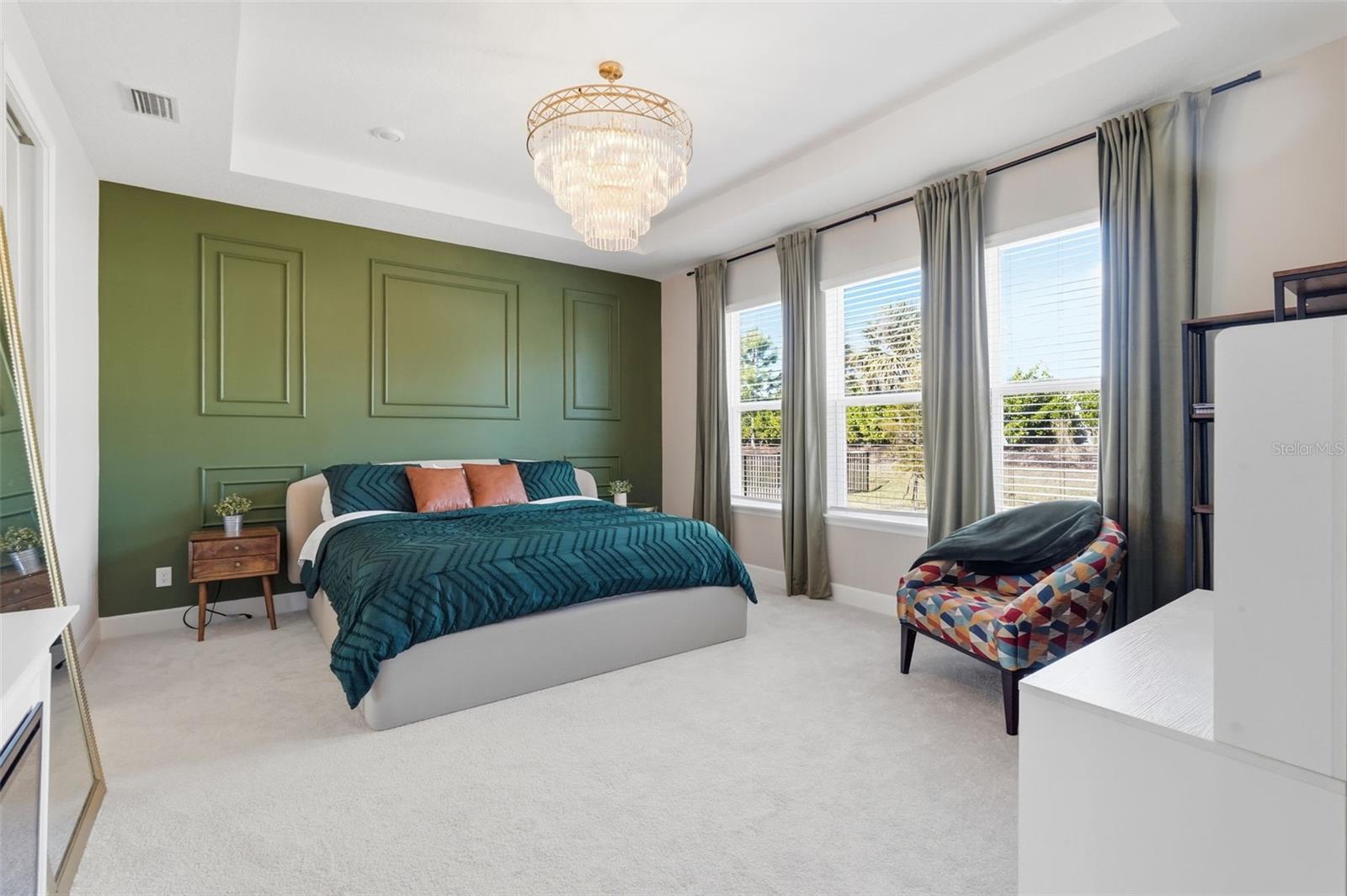 Welcome to this exceptional residence in Lakewood Ranch, Florida, ideally located within the highly desirable Park East at Azario community. Built in 2025, this stunning Antigua floor plan offers four bedrooms, a dedicated office, and an impressive collection of upscale, thoughtfully selected upgrades that create a home both elegant and inviting. All available upgrades have been thoughtfully completed in this home, offering a truly move-in-ready experience with elevated finishes throughout. Enjoy close proximity to Florida’s world-renowned Gulf Coast beaches, premier shopping and dining at destinations like UTC Mall, local boutiques and restaurants throughout Lakewood Ranch, fitness centers, medical facilities including Lakewood Ranch Medical Center, shopping plazas, parks, and so much more, placing everything you need just minutes from your doorstep. Due to an unexpected executive relocation, this beautifully upgraded home is now available, creating a rare opportunity for a new owner. Meticulously maintained and thoughtfully designed, it offers a perfect blend of comfort, style, and everyday functionality. From the moment you step through the striking glass front door, you are welcomed into a light-filled, open-concept space enhanced by additional recessed lighting throughout, 8-foot doors, crown molding, and beautiful luxury vinyl flooring. Designer features such as custom shiplap and accent walls, statement chandeliers, upgraded light fixtures, ceiling fans in every room, and a built-in fireplace with shelving add warmth and character. The gourmet chef’s kitchen is the heart of the home, showcasing quartz countertops, glass-front cabinetry, stainless steel appliances, a built-in oven and microwave, and a premium refrigerator that crafts specialty ice, perfect for entertaining. Pocket sliding glass doors lead to a pavered back patio, creating a seamless indoor-outdoor flow ideal for relaxing or hosting guests. The primary suite offers a peaceful retreat with a tray ceiling and a spa inspired bath featuring a soaking tub, seamless glass shower with rain head and handheld sprayer, and tile extended to the ceiling. A thoughtfully added door provides convenient access to the laundry room from both the hallway and the primary closet. All three bathrooms feature floor-to-ceiling tile for a refined, cohesive look, and pull down attic stairs provide easy access to additional storage.
