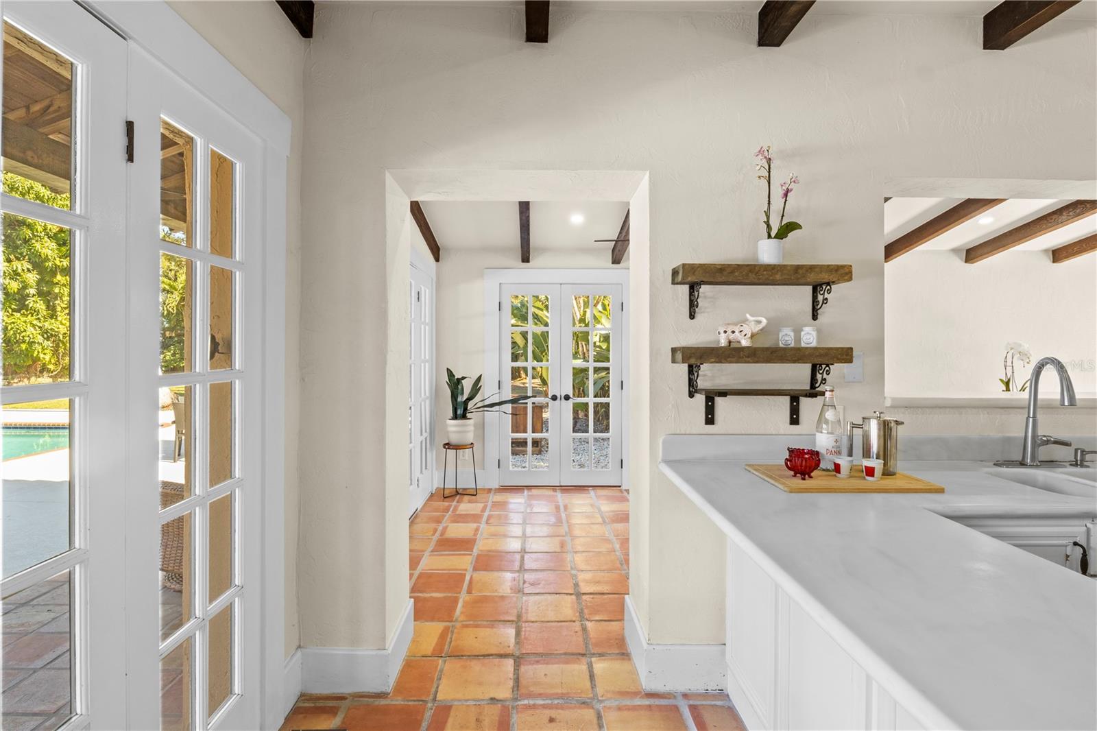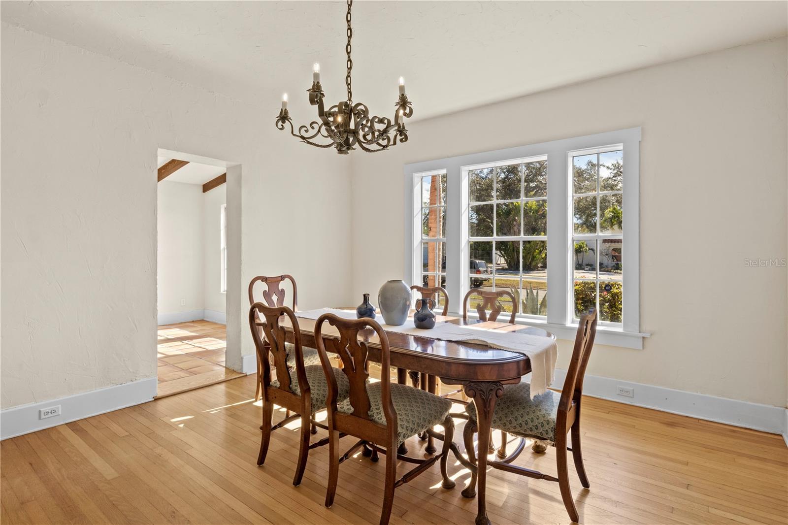 A 1927 charmer, this Spanish Mediterranean home blends historic character with comfortable, functional living. Rich with original charm, the residence features beautifully restored wood flooring that showcases the craftsmanship of the era while creating warmth throughout the home. The main level offers multiple gathering spaces including a formal living room, formal dining room, and an inviting family room, making the layout ideal for both entertaining and everyday living. Upstairs you’ll find three bedrooms and two full bathrooms arranged in a thoughtful split configuration. On the west side of the home, one bedroom enjoys abundant natural light and a built-in closet, with a nearby full bathroom featuring tile flooring, a single vanity, and a walk-in shower. Two additional bedrooms sit on the east side of the upper level and share a spacious full bath highlighted by a jetted garden tub, perfect for relaxing at the end of the day. The outdoor setting offers incredible flexibility and room to enjoy Florida living. A detached two-car garage includes a private suite with its own full bathroom, providing excellent space for guests, extended family, a home office, or a convenient poolside changing area. The backyard centerpiece is the 30x20 swimming pool, and a newly installed pool heater allows the space to be enjoyed comfortably throughout the year. Situated on an expansive 28,000-square-foot lot in the highly desirable Palma Sola Park neighborhood, the property is surrounded by mature landscaping that enhances its sense of privacy. A large mango tree anchors the yard while a well-fed irrigation system installed approximately six years ago helps keep the grounds vibrant and green. Outdoor living is equally inviting with a covered back porch, generous pool deck for entertaining, and a mosquito misting system that allows you to enjoy the outdoor areas more comfortably year-round. A backyard storage shed offers additional space for tools, lawn equipment, or even the potential for a small workshop. Recent improvements add further value, including a new roof installed over the mother-in-law suite, along with the newly added pool heater. Located in one of the area's most charming historic neighborhoods, this property is believed to be among the earliest homes built in Palma Sola Park, offering a rare chance to own a piece of local history while enjoying generous indoor living space and a private outdoor retreat.
