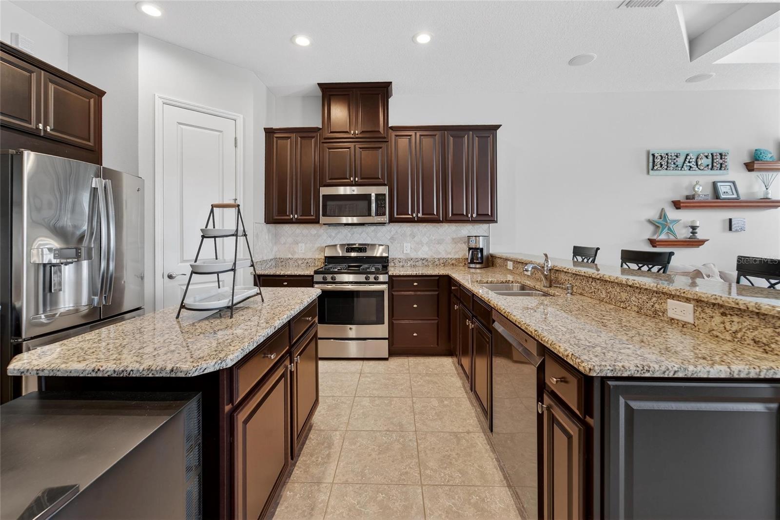 Located in the prestigious gated community of Arbor Reserve in Bradenton, this beautifully maintained Taylor Morrison residence offers the rare combination of space, quality construction, & serene water views. Thoughtfully cared for by its original owners, the home presents with pride of ownership & shows beautifully. This spacious single-story home offers 4 beds, 3.5 baths, a 2-car garage, & nearly 3,000 sq ft of heated living space designed for both comfort & flexibility. From the moment you enter, soaring ceilings, approximately 10 ft throughout, paired with tray ceiling details and 8 ft interior doors create an immediate sense of openness and architectural elegance. The open layout flows naturally from the foyer through the living & dining areas into the kitchen & family room. This approximately 1,300 sq ft combined living space offers generous room for entertaining and everyday living, all while enjoying tranquil pond views. The kitchen blends function and style with granite countertops, 42-inch cabinetry, a stone tile backsplash, a large illuminated pantry, & a center island with additional seating. The space opens seamlessly to the family room & overlooks the screened lanai & pond beyond, filling the heart of the home with natural light & peaceful views. Two sets of sliding glass doors connect the main living area to the oversized screened lanai, where a hot tub & calming water views create a private outdoor retreat. The fenced backyard adds an additional layer of privacy while preserving the beautiful pond backdrop. The thoughtfully designed split-bedroom layout offers excellent privacy. The primary suite enjoys pond views & is accessed through double doors, featuring two closets including a walk-in located within the room rather than through the bathroom. The primary bath offers dual vanities, generous storage, an oversized shower, & a private water closet. A separate secondary suite with its own full bath & walk-in closet provides a comfortable space for guests, extended family, or multi-generational living. Two additional bedrooms share another full bathroom with tub. Additional highlights include a private den or home office with double French doors, recessed lighting throughout the main living areas, plantation shutters in the family & dining spaces, & ceiling fans in all bedrooms. Practical features include a dedicated laundry room with 42-inch storage cabinets & a utility sink, overhead storage racks in the garage, gas service for heating and cooking, irrigation system, & annually serviced Carrier mechanical systems. The exterior was recently painted with an updated color palette, & the oversized screened lanai & rear fencing were added by the owners. Arbor Reserve is a gated, deed-restricted neighborhood of just 95 homes, offering a quiet & private setting with well-maintained amenities including a community pool, cabana with grilling area, and sports court. HOA fees are modest and there is no CDD. The location places you minutes from University Town Center shopping & dining, Sarasota-Bradenton International Airport, & convenient access to both downtown Sarasota & downtown Bradenton. Gulf Coast beaches, restaurants, parks, & everyday conveniences are all within easy reach while the community itself remains a peaceful retreat. Set on a 0.18-acre lot in Flood Zone X & constructed with durable block construction, this pristine one-owner home offers exceptional comfort, thoughtful design, & an outstanding location.