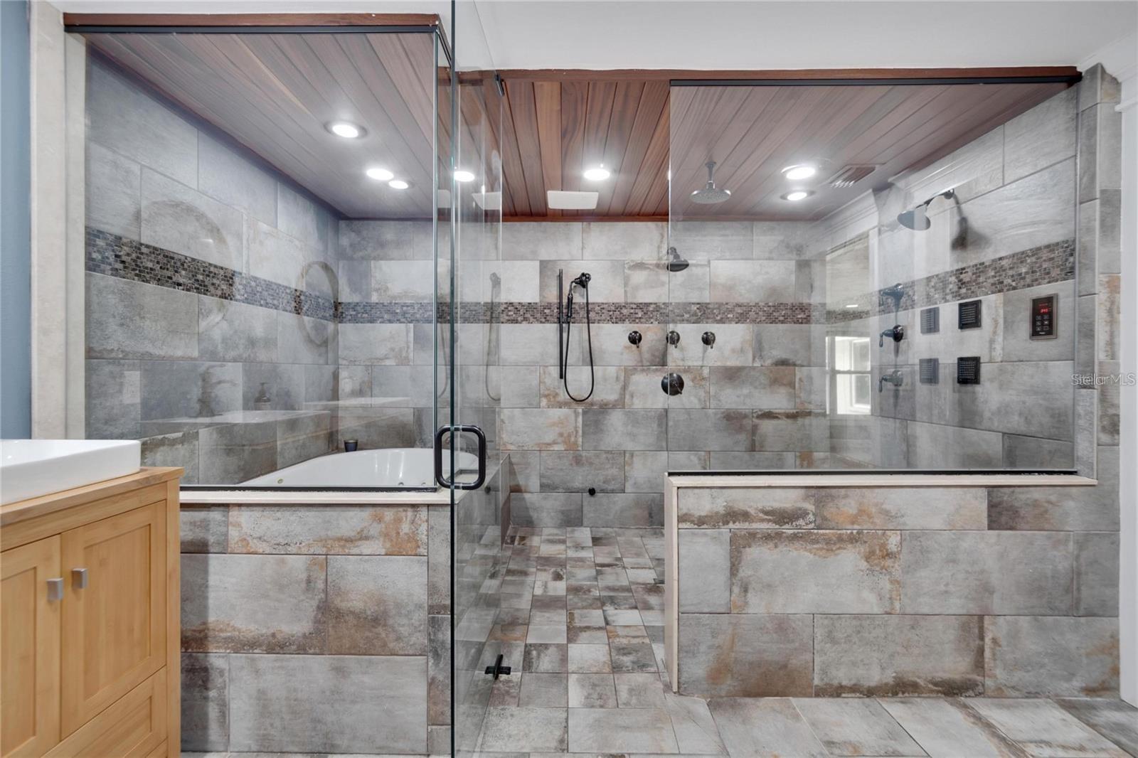 Experience this breathtaking custom home in the highly sought-after Maple Grove Estates—an exceptional property designed for today’s upscale lifestyle. Situated on a spectacular, fully fenced 1-acre lot, this residence has been thoughtfully upgraded at every level and offers both luxury and functionality. This expansive single-story home features a 4-car garage, crown molding throughout, and an open-concept layout that seamlessly connects the formal living room, family room, and dining areas—perfect for both everyday living and entertaining. The main residence includes 3 spacious bedrooms and 2 full bathrooms. At the heart of the home is a gourmet kitchen, complete with an oversized island and breakfast bar, brand new appliances, island cooktop, double ovens, built-in microwave, and abundant storage. Custom solid wood, soft-close cabinetry with sliding drawers is complemented by a blend of wood and granite countertops, updated tile, and wood flooring, recessed lighting, and a custom tile backsplash. A separate entrance provides convenient access to the backyard oasis. The oversized primary suite serves as a true retreat, offering ample space and a private entrance. The luxurious en-suite bathroom features a one-of-a-kind custom walk-in shower with dual shower heads, full-body sprayers, and an electric sauna, along with a Jacuzzi tub, dual vanities, on demand hot water, and generous storage. Additional interior highlights include a dedicated theater room and an upgraded family room, both featuring new tile flooring and modern ceiling fans—ideal for hosting and relaxation. The property also includes a well-appointed 1400sqft guest house with 2 bedrooms, 1 full bathroom, a full kitchen, and a spacious living area. The guest home is complemented by an oversized 2-car garage with sufficient height to accommodate an RV—perfect for extended family, guests, or additional rental income potential. This one-of-a-kind estate offers the perfect blend of comfort, elegance, and versatility—all set on a private and beautifully maintained acre. Step outside to your private retreat featuring a brand-new, saltwater, propane and solar heated, self-cleaning pool, complete with an in-pool lounge area, and an over sized 2000sqft patio, and 180sqft gazebo perfect for relaxing or entertaining year-round. Both the main house and the mother-in-law suite roofs are 1 years old, All 3 AC units are also 1 years old. 4 car garage with 2 additional carport spaces. Brand new drain-field was just installed