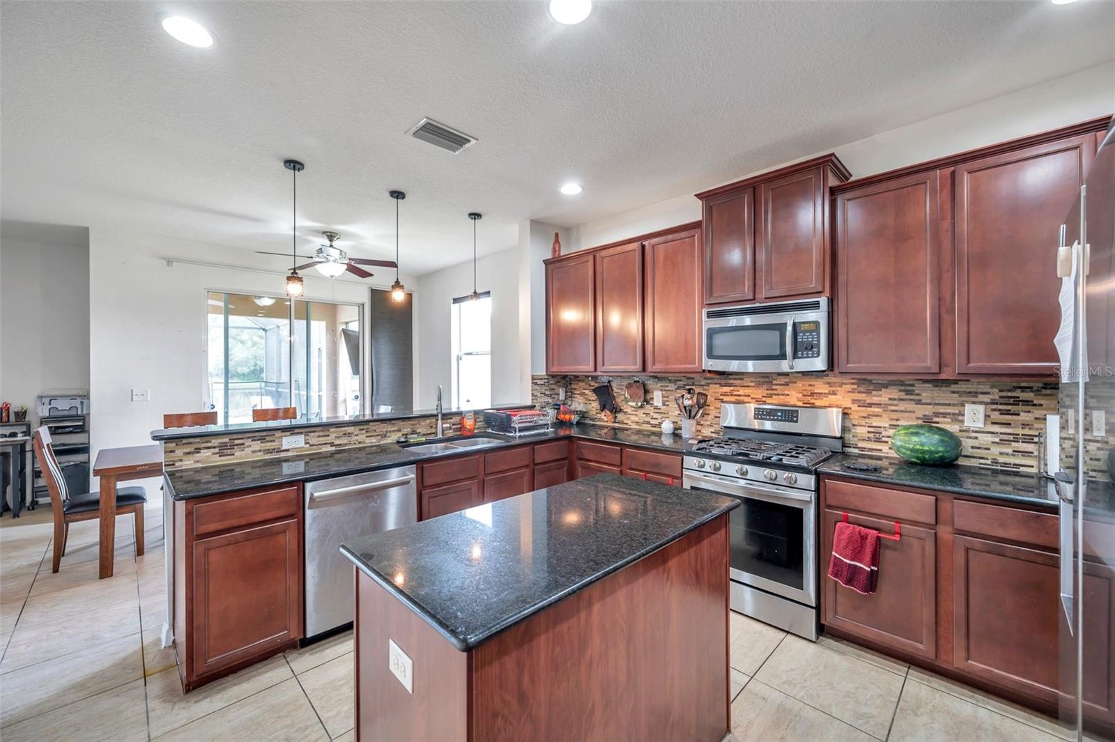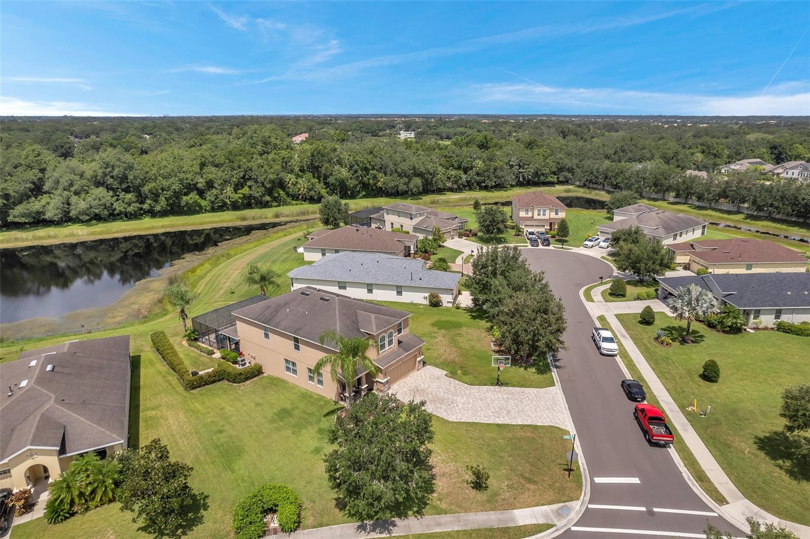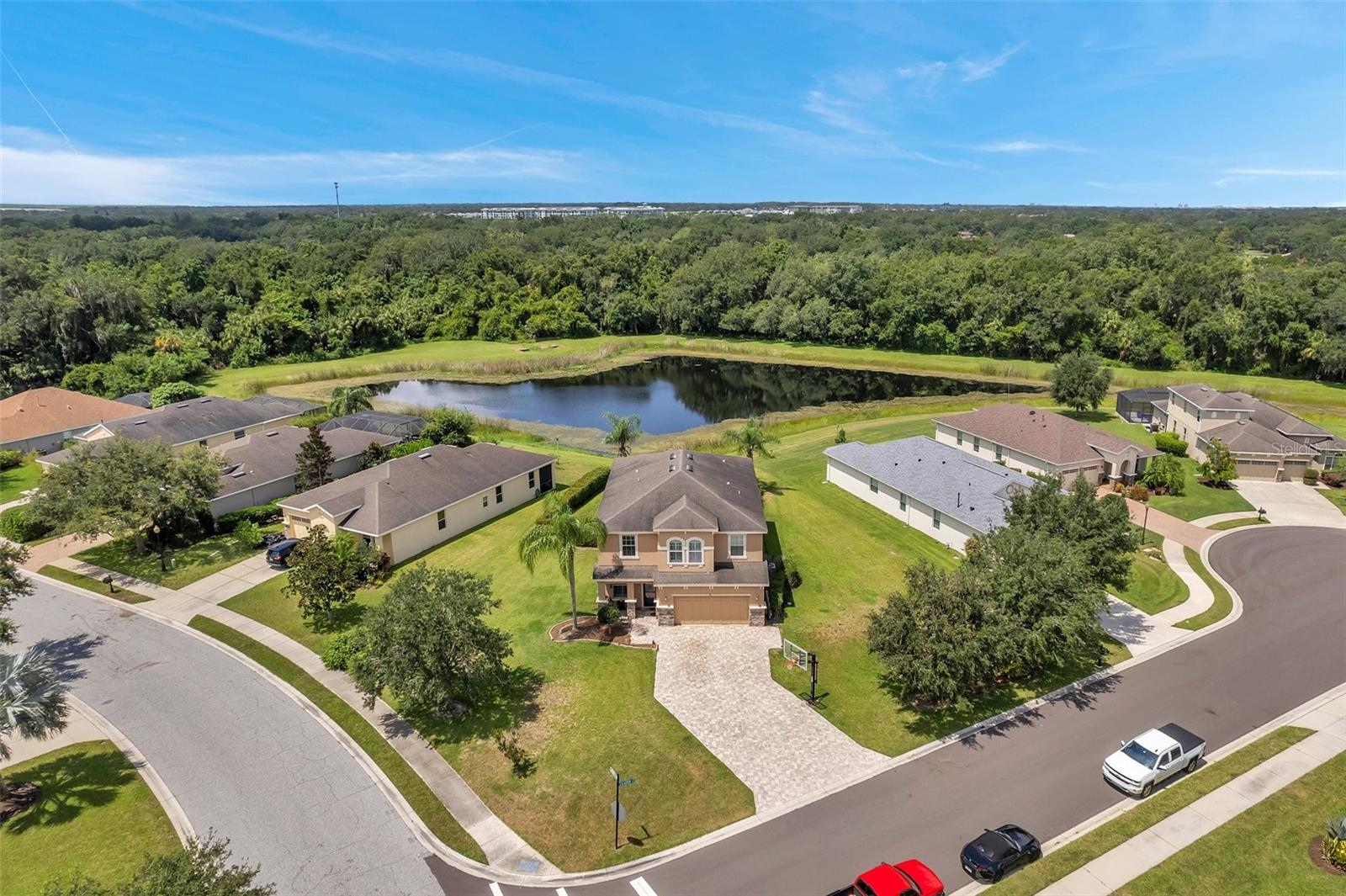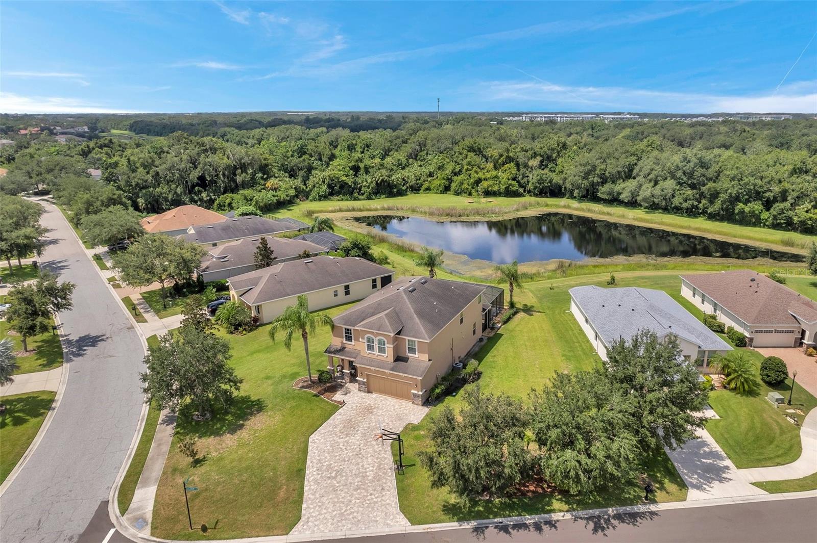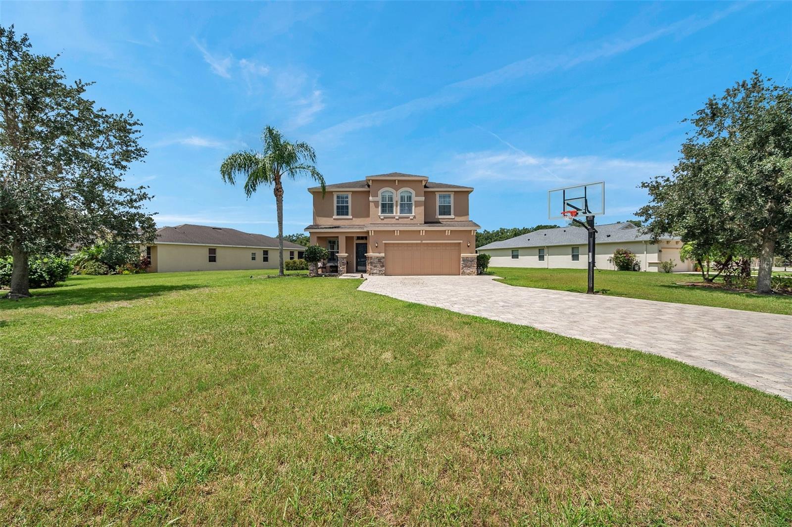 Spacious 5-Bedroom Pool Home on a Prime Corner Lot with Pond Views Welcome to your ideal family retreat in the highly sought-after Greyhawk Landing community. Perfectly positioned on an oversized corner lot with tranquil pond views, this expansive 5-bedroom, 3.5-bathroom home offers a lifestyle of comfort, space, and modern upgrades. Step inside to discover a welcoming formal living and dining area that flows seamlessly into a generous family room, where sliding doors open to a screened-in patio and heated saltwater pool—complete with a new pump (2023). Designed for entertaining, the outdoor area is ideal for gatherings, cookouts, and weekend relaxation. The kitchen is a chef’s delight featuring granite countertops, rich wood cabinetry, stainless steel appliances, a gas range, a spacious walk-in pantry, and a bright breakfast nook. Upstairs, a versatile loft provides the perfect space for a home office, playroom, or media lounge. The expansive primary suite includes dual walk-in closets and a spa-inspired bathroom with double vanities, a soaking tub, and a separate walk-in shower. Four additional bedrooms offer flexibility for family, guests, or hobbies. Additional highlights include a widened driveway with added pavers and a basketball hoop (2021), freshly painted exterior, hurricane shutters for the entire home, and a two-car garage with polyaspartic floor coating (2023). Greyhawk Landing residents enjoy access to resort-style amenities including two community pools, two clubhouses, scenic walking and biking trails, tennis and basketball courts, sports fields, and playgrounds. Conveniently located near shopping, dining, and top-rated schools. Don't miss this rare opportunity—schedule your private tour today.