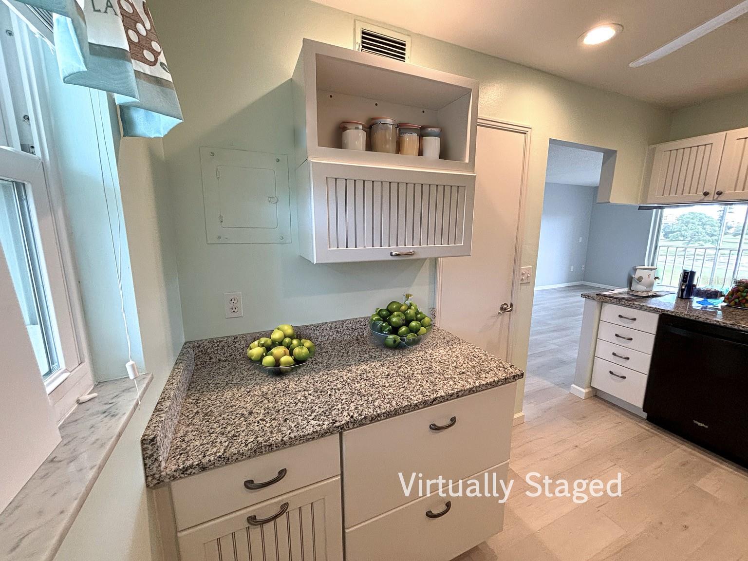 One or more photo(s) has been virtually staged.Your revised version is concise and effective! Here's a slightly polished version for flow and clarity: **Completely renovated 2-bed, 2-bath condo with stunning golf course views!** Featuring wide-plank luxury vinyl floors throughout and a beautifully designed open-concept kitchen, living, and dining area—perfect for entertaining. The kitchen boasts elegant hardwood CraftMaid cabinetry, a custom coffee station, and high-end finishes. With newer AC and water heater, this home is truly move-in ready. All this, plus low HOA fees of just $457/month, and direct access to a public golf course—enjoy the view without any added costs! Don't miss out on this modern, turn-key condo!