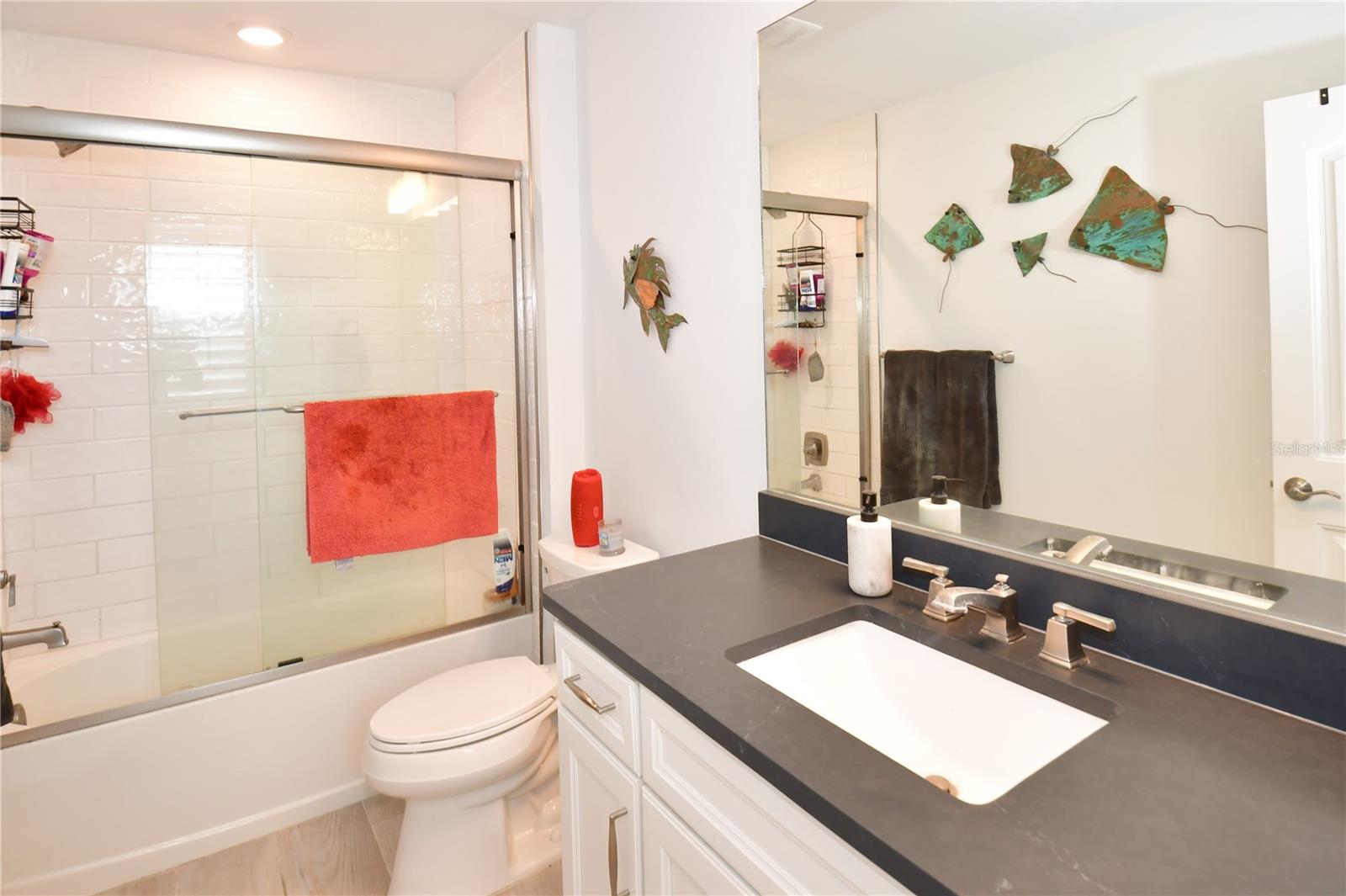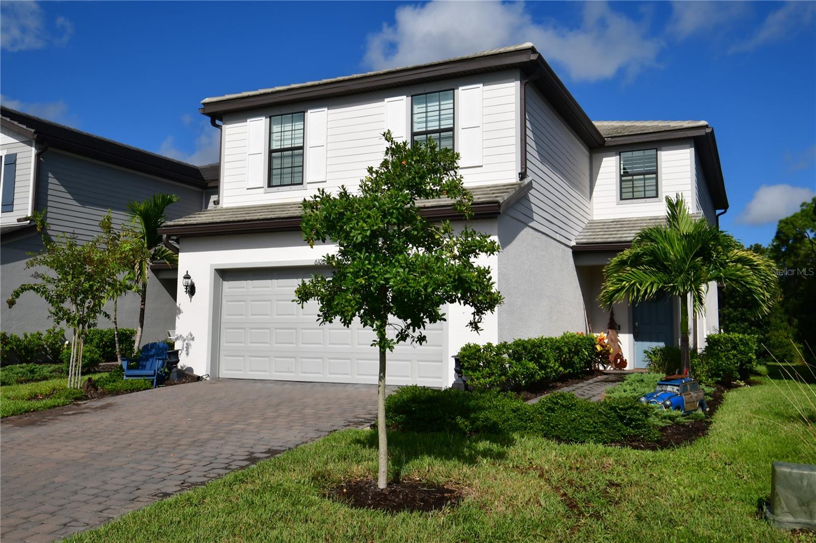Welcome to your dream home in the highly sought-after community of Sapphire Point in Lakewood Ranch! This stunning 5-bedroom, 3-bathroom, 2-story residence is a perfect blend of luxury and comfort, offering an array of top-tier amenities and designer upgrades. As you step inside, you'll be captivated by the open floor plan that seamlessly connects the living, dining, and kitchen areas—perfect for both entertaining and everyday living. The gourmet kitchen is a chef’s delight, featuring pristine quartz countertops, white cabinetry, an oversized island, and upgraded lighting that adds a touch of elegance. The plantation shutters throughout provide both style and privacy, enhancing the home’s timeless appeal. Upstairs, the open stair rail adds a modern touch, leading you to the spacious bedrooms, including a luxurious master suite. All bedrooms have a closet organizing system for ease of keeping your clothing neatly stored. The bathrooms are beautifully appointed, offering comfort and sophistication. Step outside to your private oasis—the extended lanai is an entertainer’s dream, complete with a relaxing hot tub where you can unwind while enjoying serene water views. With no yard maintenance required, you can spend more time enjoying the finer things in life. Yard also features an underground dog fence. Additional features include a meticulously finished epoxy floor in the garage, wiring for an electric car, and a state-of-the-art water purification system. The home also boasts upgraded trim and a lighting package, adding to its upscale ambiance. The outstanding amenities include play area, picnic area, outdoor basketball, gym, clubhouse, dog park, and resort-style swimming pool. This exceptional property is more than just a home; it’s a lifestyle. Don’t miss your opportunity to experience luxury living at its finest in Lakewood Ranch!