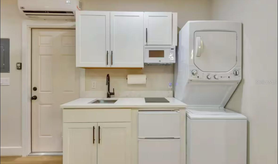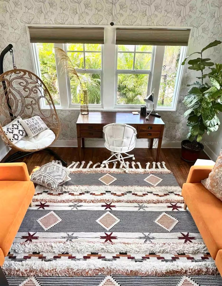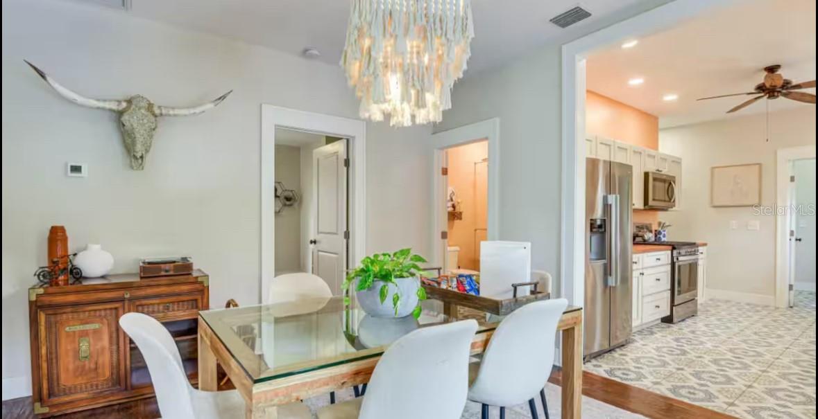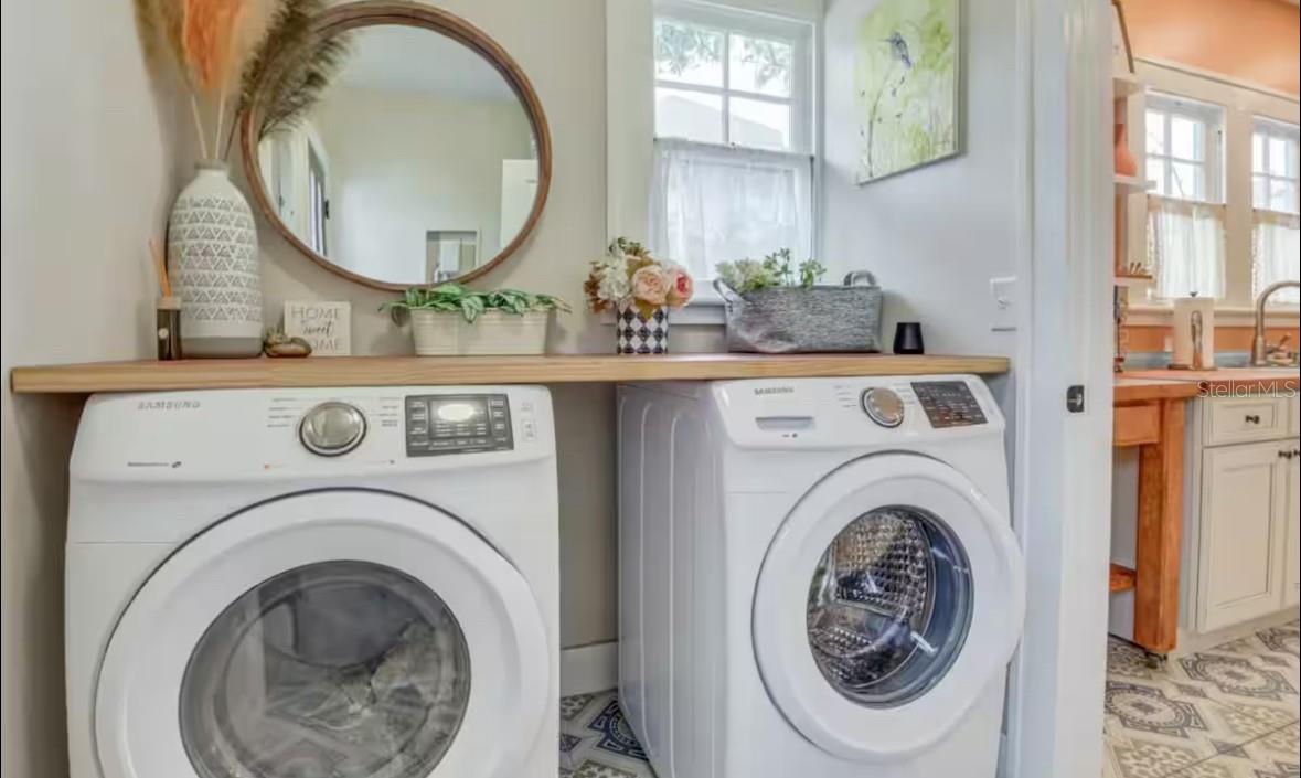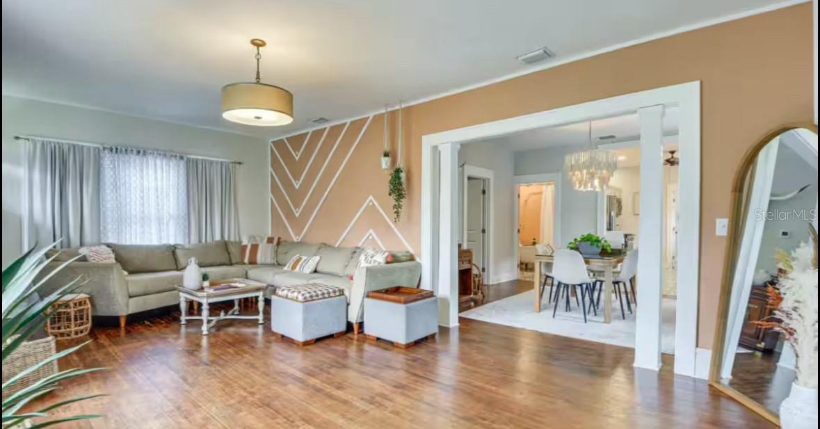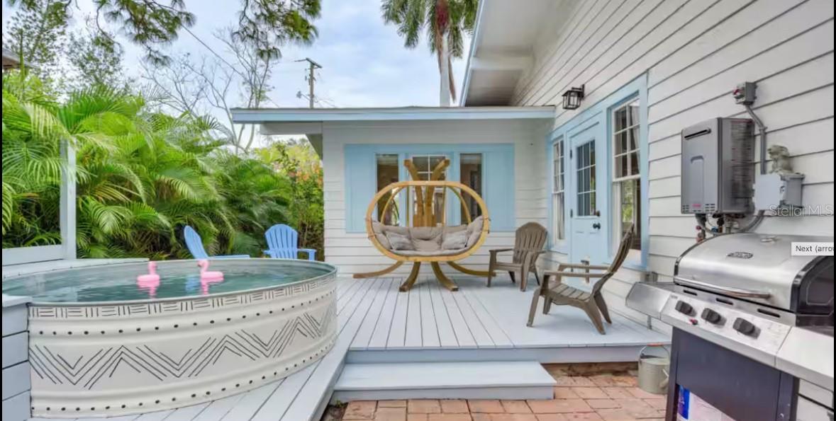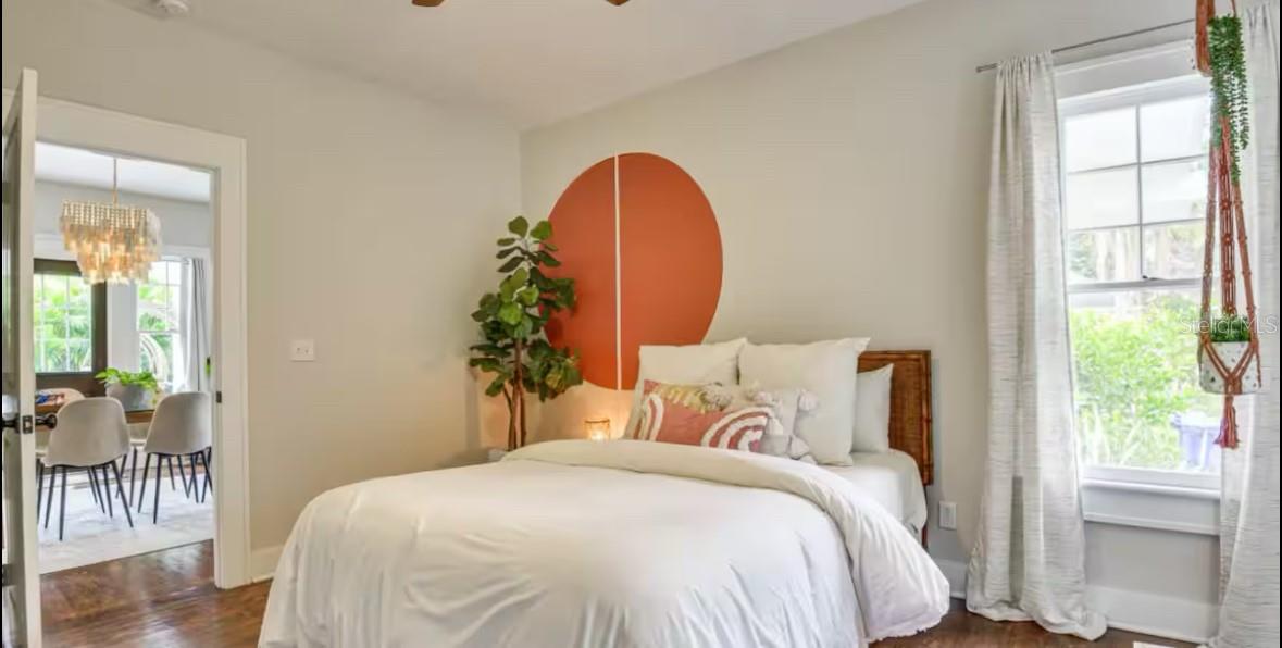 Absolutely stunning 1925 home in Historic Bradenton with Guest House/Efficiency located steps from Downtown, walking distance to shopping, dining, Manatee River & public transportation, and only 15 minutes from gorgeous Gulf beaches, including famous Ana Maria Island! Outstanding location with several lucrative short-term rentals here. Located in an Opportunity Zone for added tax savings and investment potential. Stroll up the red brick path to the quaint front porch of this lovingly restored and updated home. Upon entering the front door, you'll immediately notice the restored wood plank flooring in the large great room with cozy fireplace and loads of natural light! The ceilings were raised adding to the roomy feel of this open, well-thought out floorplan. To your right, the third bedroom features French doors and looks out over the front of the home, making a great work-from-home-office. Beyond the great room is the formal dining room and beyond that, the renovated white kitchen with solid wood cabinets, 2019 SS appliances, including 5 burner gas stove and spotless butcher block counters. Beyond the kitchen, is the laundry room, complete with washer & dryer that doubles as a mud room and leads to the back door. The hall bathroom features a gorgeous claw-foot tub with shower head and linen closet. The bedrooms are designed in a 3-way split with the office/bedroom in the front, the second bedroom in the middle of the home, off of the dining room and the primary bedroom in the back of the house. The primary bedroom boasts an en suite bathroom with stand-up shower and two walk in closets. Walk in closet in the second bedroom, as well. Detached garage in back has been converted to an efficiency with kitchenette, full bathroom with stand-up shower and walk-in closet, adding an additional sq ft of living space So many great possibilities for this space - in-law suite, young adult apartment, potential income-producing. However, there is still a garage door and opener, so you could convert back if that's your preference. Adjacent driveway has plenty of room to park two large vehicles, a bit more space toward the alley to park one more, and the other side of the garage has ample room for boat or RV parking. The side yard is fully fenced for your furry friends, and the deck is roomy enough for grilling, lounging and entertaining. Recent upgrades include newer kitchen and bathrooms, restored windows, updated plumbing & electric, updated electrical panel, new roof, A/C and ductwork (2018), sprinkler system (2021), new driveway (2021), guest house remodel (2020).
