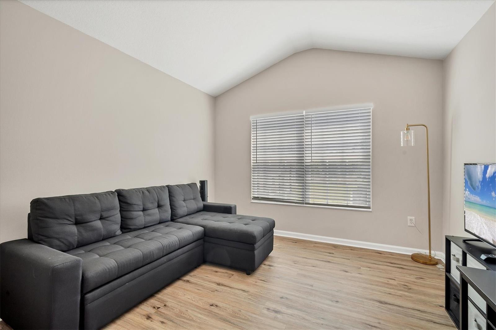 PRICED TO SELL~~ Welcome to this beautifully maintained move-in ready 3-bedroom, 2.5-bath townhouse in the desirable Vista Cay community. Offering 1,718 square feet of living space, this home features a one-car attached garage and NO CARPETING IN ENTIRE HOME for a clean, modern look. Your private garage leads into the large kitchen which is equipped with plenty of GRANITE COUNTERTOPS and stainless steel appliances. The home was freshly painted in 2023, and feels bright and updated. Upstairs, the owner’s suite with vaulted ceiling includes a large walk-in closet and an en-suite bathroom with dual sinks, GRANITE COUNTERS and a GARDEN TUB. The laundry area is conveniently located in the hall between the owners suite and the TWO additional bedrooms, both with vaulted ceilings! The large guest bathroom with QUARTZ VANITY. Enjoy peaceful views of the community pool from the screened lanai, which opens up to a large grassy outdoor space, ideal for relaxing or entertaining. Seller paid the assessment for the new roof which was recently installed. HOEMIS BEING SOLD FURNISHED, with only a few personal items excluded—perfect for a seamless move-in experience. Don't miss the opportunity to live in this desirable community!!!