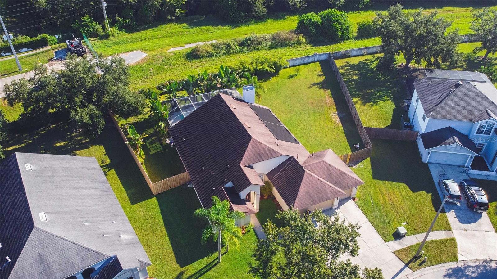 Welcome to this well-maintained 4-bedroom, 2.5-bath home that sits on an oversized lot with no rear neighbors, offering extra space and peaceful surroundings. Inside, you'll appreciate a spacious layout and new plumbing throughout, providing long-term value and peace of mind. The master suite features an ensuite bath with dual vanities, a soaking tub, and a separate shower perfect for unwinding after a long day. Three additional well sized bedrooms provide plenty of space for family, guests, or a home office setup. Step outside to a screened-in, solar heated pool with a half bath, perfect for year-round enjoyment. The large backyard and covered patio create an ideal setting for entertaining, relaxing, or spending time with family. This home is just 3 miles away from grocery stores, restaurants, shopping, and everyday conveniences. Schedule your private showing today and make this beautiful property your home!
