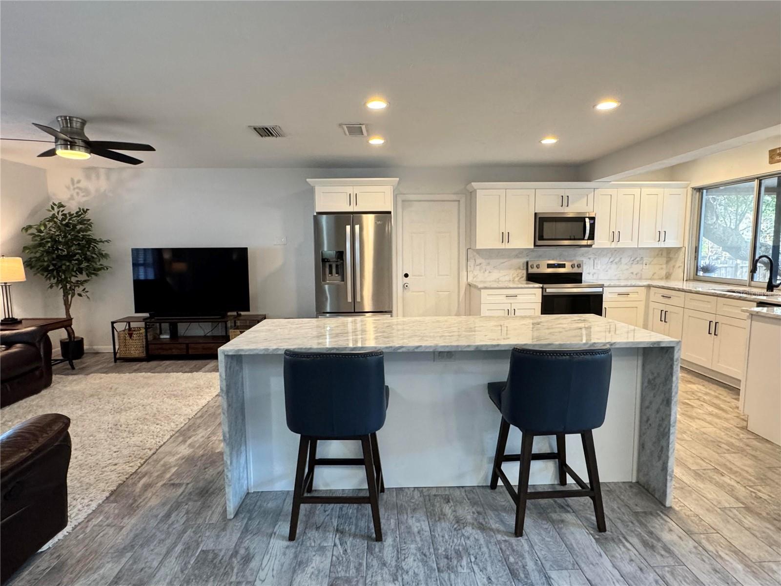 Pool home on a rare .31-acre lot in Four Winds Estates! This beautifully updated 4-bedroom, 3-bath home in Brandon features a renovated kitchen with a large island, two spacious living areas, and a private fenced backyard shaded by mature Spanish oaks. With 1,808 square feet, the layout is flexible for both entertaining and everyday living. The open kitchen flows into the main living spaces, while a second family/TV room provides additional space to relax or gather. The pass-through window from the kitchen to the patio bar makes outdoor entertaining easy. The home includes one bedroom and full bathroom downstairs. Upstairs you’ll find the primary suite with its own bathroom, along with two additional bedrooms and another full bath. Recent upgrades include a new Trane air conditioner and air handler. Additional highlights include an oversized two-car garage, beautiful landscaping, and a large fenced backyard with plenty of space to enjoy Florida living. Conveniently located near shopping, dining, and major commuter routes and zoned for Kingswood Elementary, Rodgers Middle School, and Brandon High School.