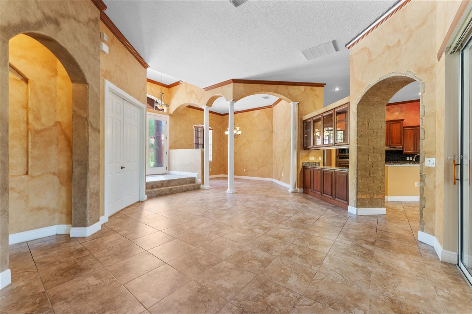 DRASTICALLY REDUCED Motivated Seller! Spectacular Gated Custom Home almost 3500sq ft in the Vineyards! Executive styled quality built custom home that boasts Mediterranean-inspired architecture, highlighted by a charming barrel tile roof, double-door entryway with the largest paver circular driveway in the community. The inside is adorned with elegant archways, crown molding, and tray ceilings. The thoughtfully designed layout features customized angled rooms that enhance the spacious and open feel of the home. The kitchen is a chef's delight, showcasing 42" cherry wood cabinets, thick granite countertops, stainless steel appliances, and a convenient cooking island with a breakfast bar that seamlessly connects to the family room. Enjoy picturesque views from the mitered glass window overlooking the expansive 1100sf "L" shaped lanai with Spanish tile flooring and the tranquil shady backyard with a beautiful oak tree awaiting your picnic bench setup! Experience ultimate comfort and privacy in the master suite, complete with tray cdilings, huge walk-in closet, a luxurious garden tub, a separate shower stall, and double sinks topped with marble accents. Additional highlights include formal living & dining rooms, a built-in buffet for entertaining, a front office/den for easy access, an upstairs bonus room plumbed for a wet bar, a 3 car side-load garage and a community sprinkler well for keeping watering costs down. You can have it all. A close commute without sacrificing quality. This home is conveniently located minutes from the Crosstown Expressway, I-75, I-4 and Hwy 60. It's also within 25 miles of the TPA airport and approximately +-40 minutes from highly ranked St Pete and Clearwater Beaches. Other proximate amenities include the Brandon Mall, restaurants, schools, and hospitals. Don't let this one get away! NOTE: WASHER AND DRYER INCLUDED!