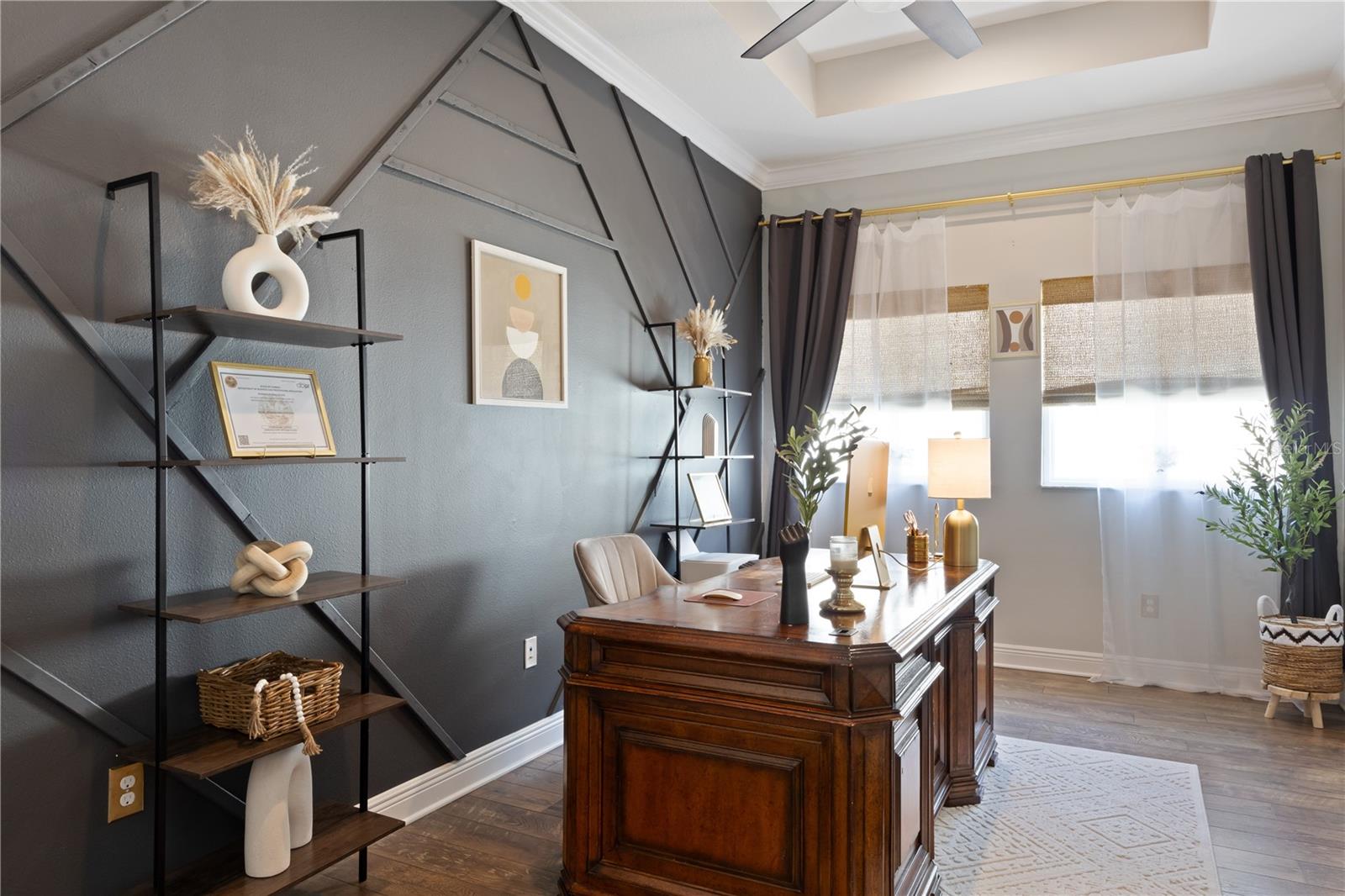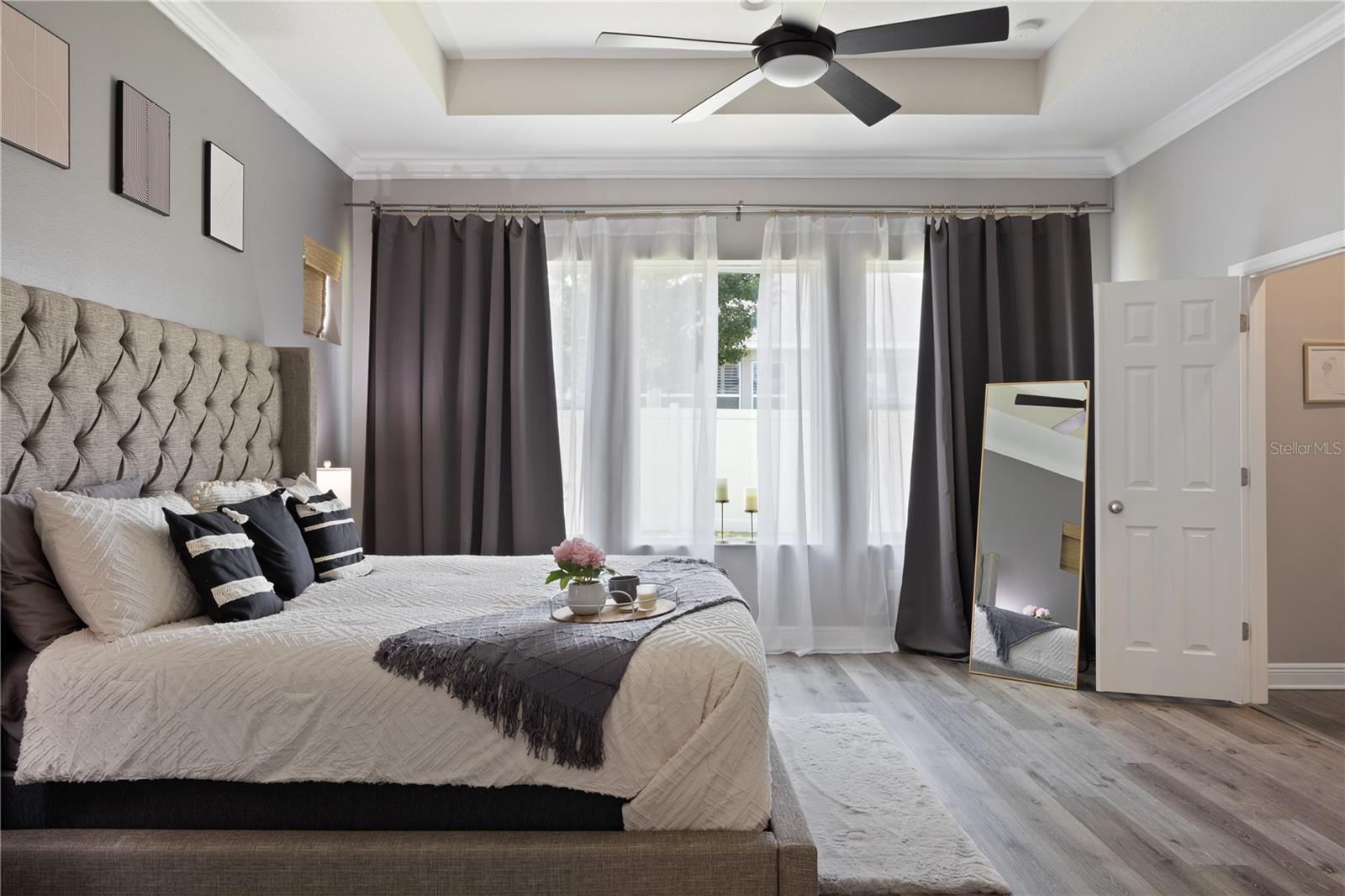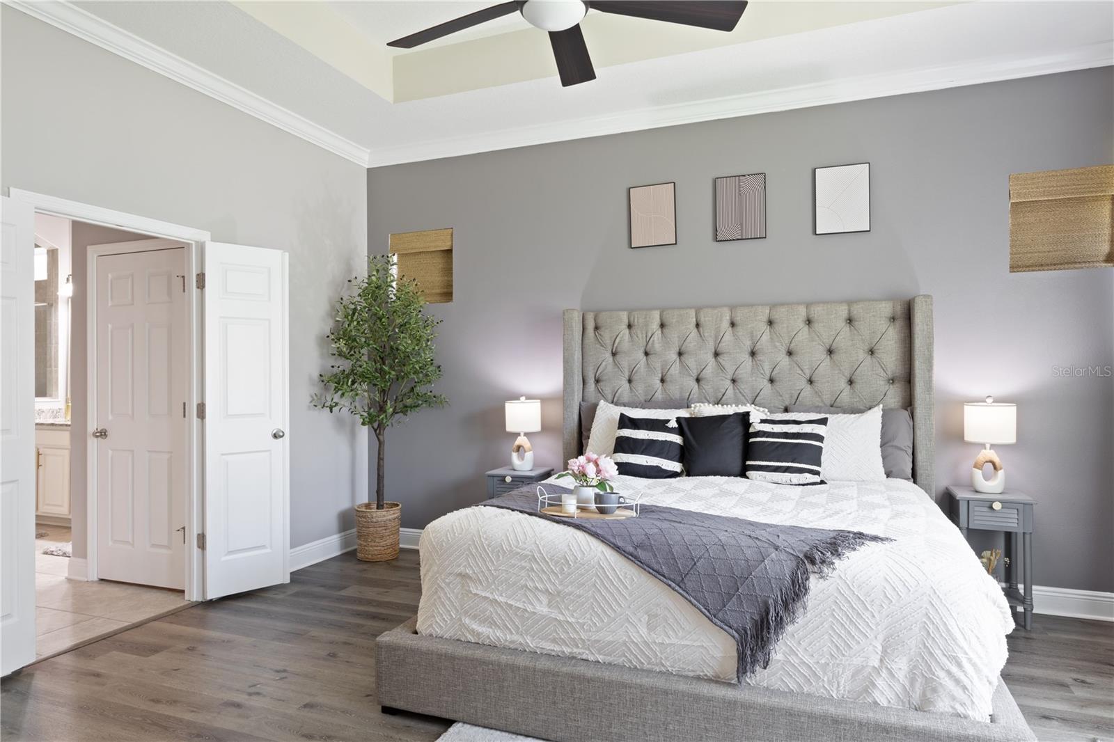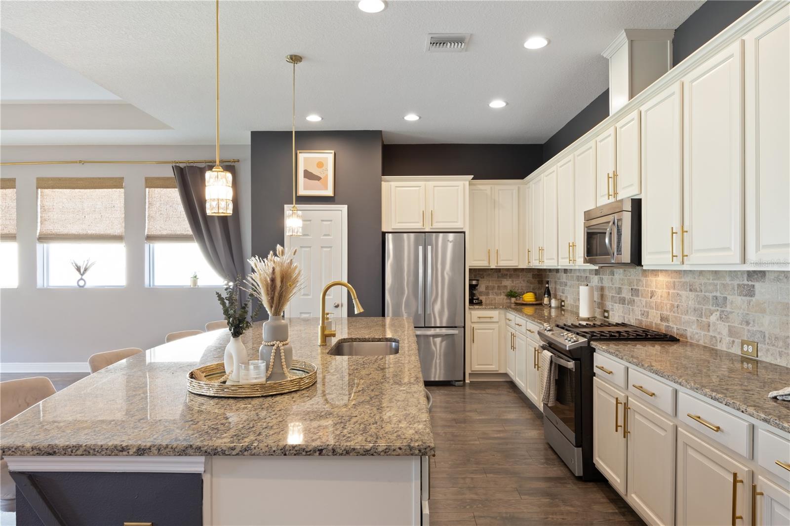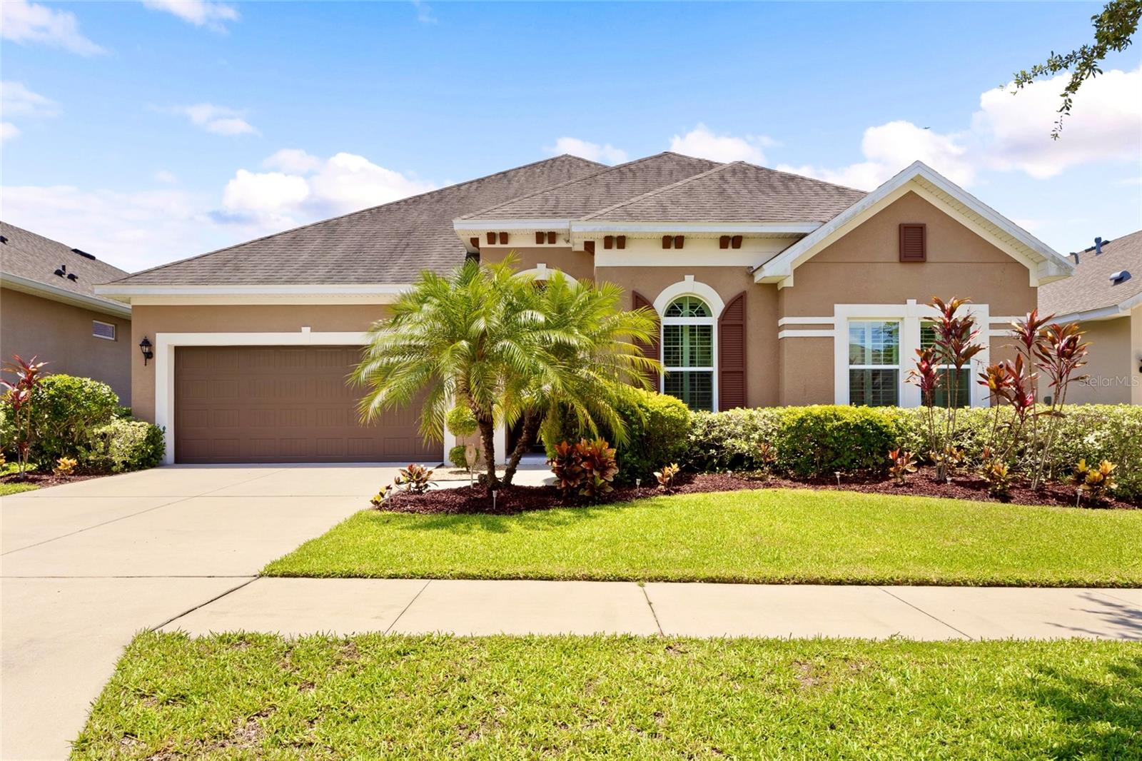 WELCOME TO YOUR DREAM HOME ! HOME HAS BEEN APPRAISED AT $715,000 ! Located in the coveted, gated community of Brooker Reserve. Zoned for high rated SCHOOLS and just minutes to all the great shopping, dining, and entertainment! This fabulous 4-bedroom, 4-bath, 3-car garage home comes with a bonus room and extra office room. This David Weekly home was finished in 2016 and boasts 3,210 square feet of living space with 11 ft tall ceilings! Guests are greeted through the covered front porch and into a large foyer with views straight to the back of the home. Through the foyer you will step into the impressively sized office with beautiful glass-paneled French doors. The space is perfect for a home office and could even fit two desks. The heart of the home is the extensive open floor plan that features a fabulous kitchen complete with a wall full of real wood 42” cabinetry, granite countertops, stone backsplash, 5 burner gas stove and stainless steel appliances. The massive more than 11 feet long island is the centerpiece of the kitchen, adjacent to the kitchen you will find a spacious family room with built-in speakers. Family room includes sliding glass doors to the backyard, dedicated area for a dining room table and a sun nook, the space is perfect for entertaining guests or enjoying day-to-day life comfortably. The private and secluded primary suite is on the backside of the home, boasting incredible lighting through several windows leading into a massive en-suite bathroom with double sink vanity and massive beautifully tiled walk-in shower and large walk-in closet. There are three additional 1st-floor bedrooms. Two share a bathroom and a separate guest bedroom features an en-suite bathroom perfect for an in-law suite. Further, a 2nd-floor bonus room can dual as a 5th bedroom or entertainment room. ADDITIONAL FEATURES INCLUDE: HURRICANE IMPACT WINDOWS, modern and efficient ceiling fans in several rooms, added tray ceilings, contemporary lighting throughout, custom window treatments, cool gray toned interior walls painted in 2022, new laminate flooring 2022 and new carpet installed in 2022 where the rooms were not occupied. The home also features a separate interior laundry room with a newer 2023 washer and a mudroom coming from the garage! Finally, the backyard comes with a completely covered patio, lined with river rocks and planted tropical trees such as papaya, banana, orange tree and more. The Community features include playground, two dog parks and a recreational park area. **All of the current furnishing in this home could be purchased-subject to a separate agreement** Central location to I-75, 22 Minutes to downtown Tampa, near proximity to Sarasota beaches. COME TAKE A LOOK AT THIS HOME BEFORE IT’S GONE, it is STUNNING in the photos but even BETTER in person!