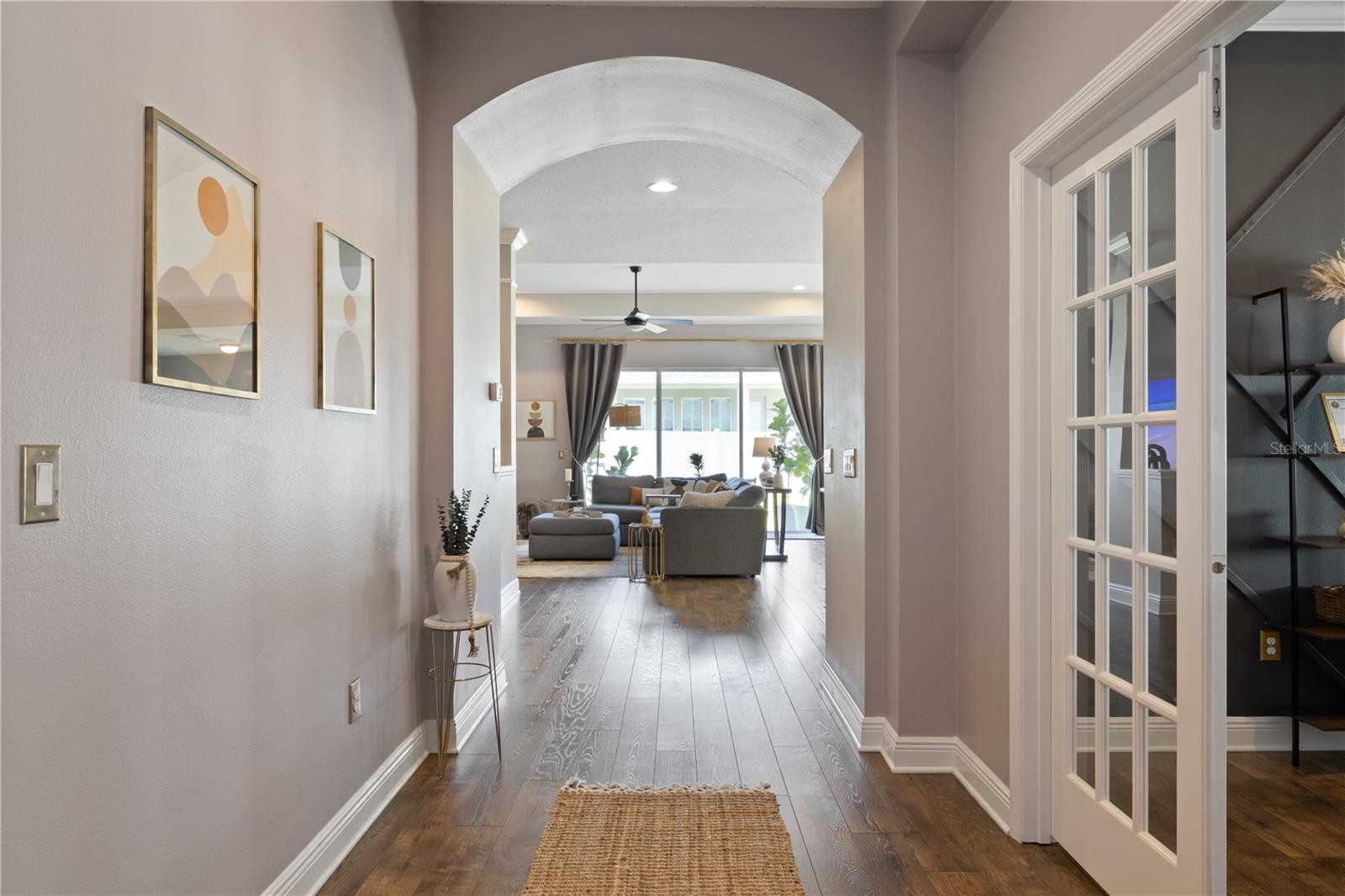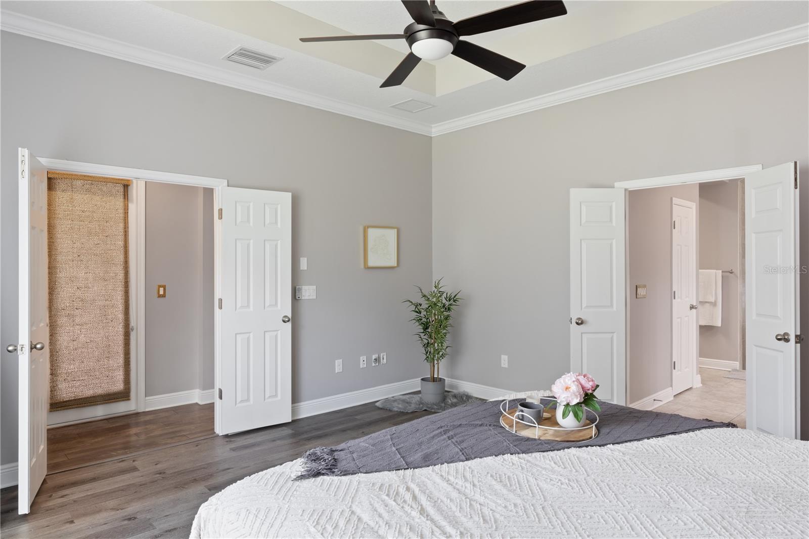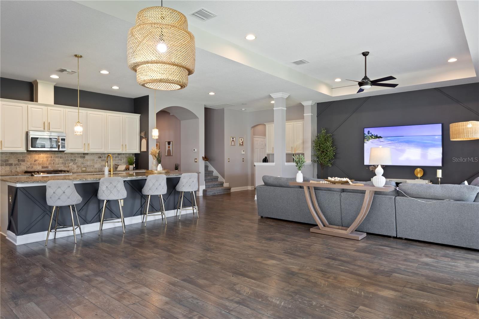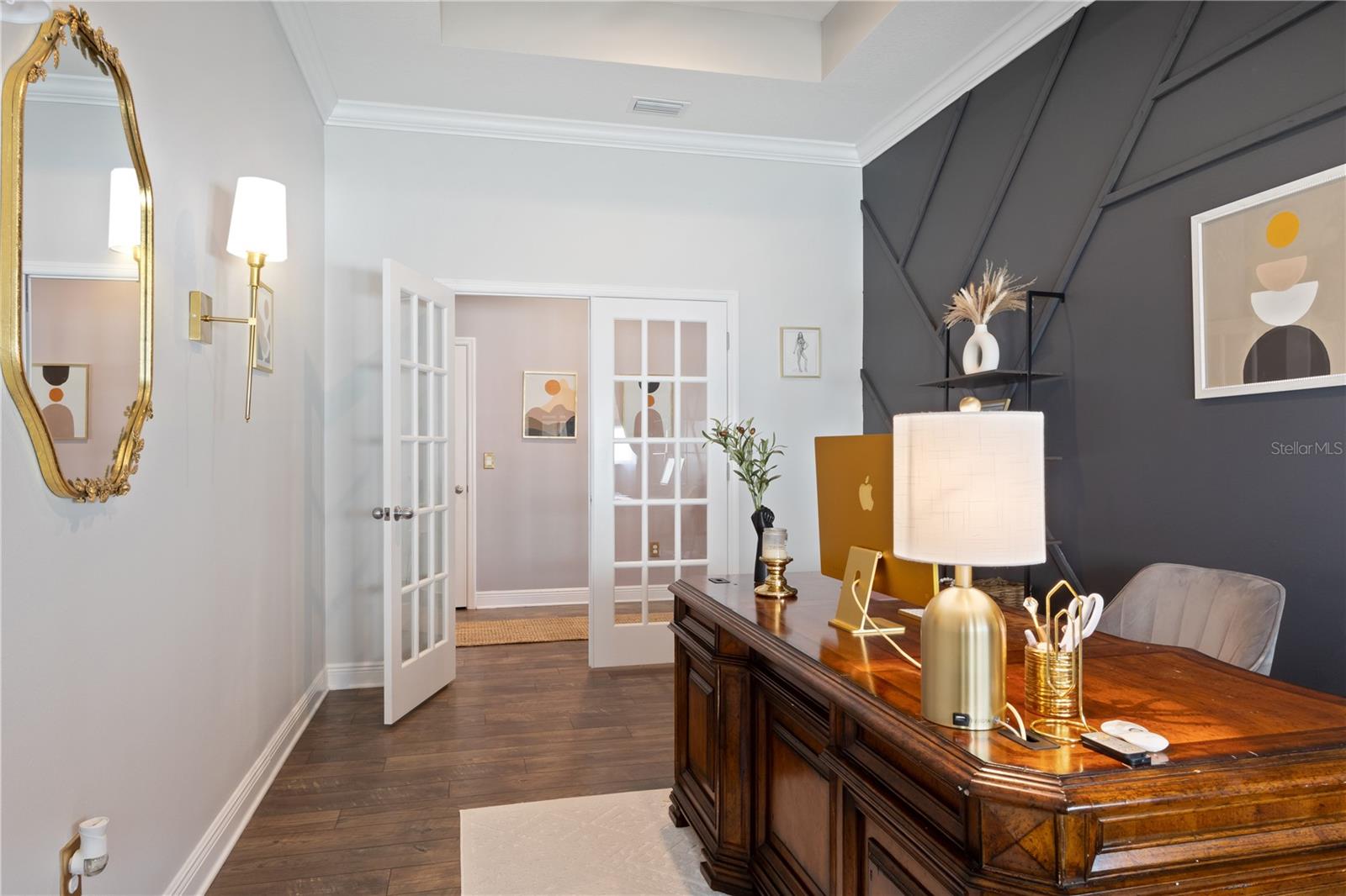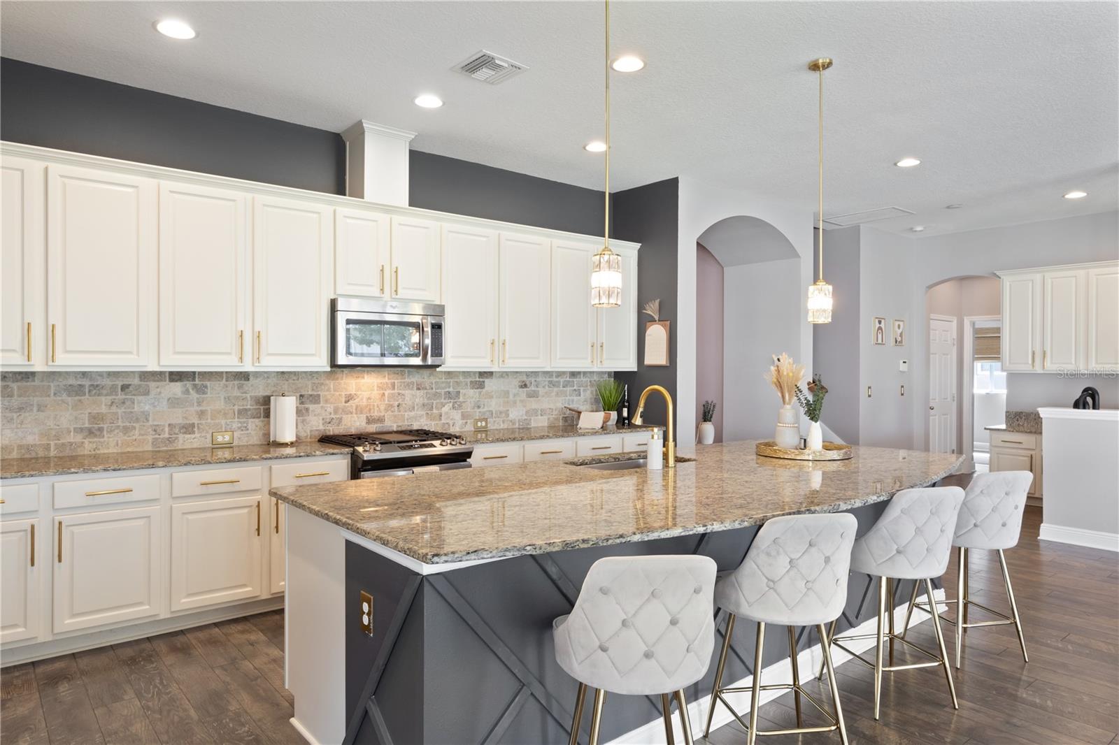 WELCOME TO YOUR DREAM HOME ! HOME HAS BEEN APPRAISED AT $715,000 ! Located in the coveted, gated community of Brooker Reserve. Zoned for high rated SCHOOLS and just minutes to all the great shopping, dining, and entertainment! This fabulous 4-bedroom, 4-bath, 3-car garage home comes with a bonus room and extra office room. This David Weekly home was finished in 2016 and boasts 3,210 square feet of living space with 11 ft tall ceilings! Guests are greeted through the covered front porch and into a large foyer with views straight to the back of the home. Through the foyer you will step into the impressively sized office with beautiful glass-paneled French doors. The space is perfect for a home office and could even fit two desks. The heart of the home is the extensive open floor plan that features a fabulous kitchen complete with a wall full of real wood 42” cabinetry, granite countertops, stone backsplash, 5 burner gas stove and stainless steel appliances. The massive more than 11 feet long island is the centerpiece of the kitchen, adjacent to the kitchen you will find a spacious family room with built-in speakers. Family room includes sliding glass doors to the backyard, dedicated area for a dining room table and a sun nook, the space is perfect for entertaining guests or enjoying day-to-day life comfortably. The private and secluded primary suite is on the backside of the home, boasting incredible lighting through several windows leading into a massive en-suite bathroom with double sink vanity and massive beautifully tiled walk-in shower and large walk-in closet. There are three additional 1st-floor bedrooms. Two share a bathroom and a separate guest bedroom features an en-suite bathroom perfect for an in-law suite. Further, a 2nd-floor bonus room can dual as a 5th bedroom or entertainment room. ADDITIONAL FEATURES INCLUDE: HURRICANE IMPACT WINDOWS, modern and efficient ceiling fans in several rooms, added tray ceilings, contemporary lighting throughout, custom window treatments, cool gray toned interior walls painted in 2022, new laminate flooring 2022 and new carpet installed in 2022 where the rooms were not occupied. The home also features a separate interior laundry room with a newer 2023 washer and a mudroom coming from the garage! Finally, the backyard comes with a completely covered patio, lined with river rocks and planted tropical trees such as papaya, banana, orange tree and more. The Community features include playground, two dog parks and a recreational park area. **All of the current furnishing in this home could be purchased-subject to a separate agreement** Central location to I-75, 22 Minutes to downtown Tampa, near proximity to Sarasota beaches. COME TAKE A LOOK AT THIS HOME BEFORE IT’S GONE, it is STUNNING in the photos but even BETTER in person!