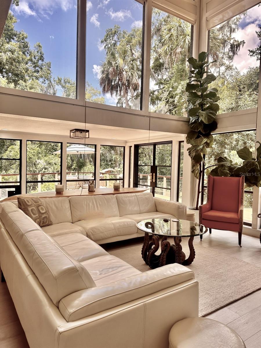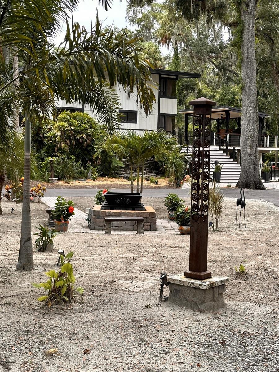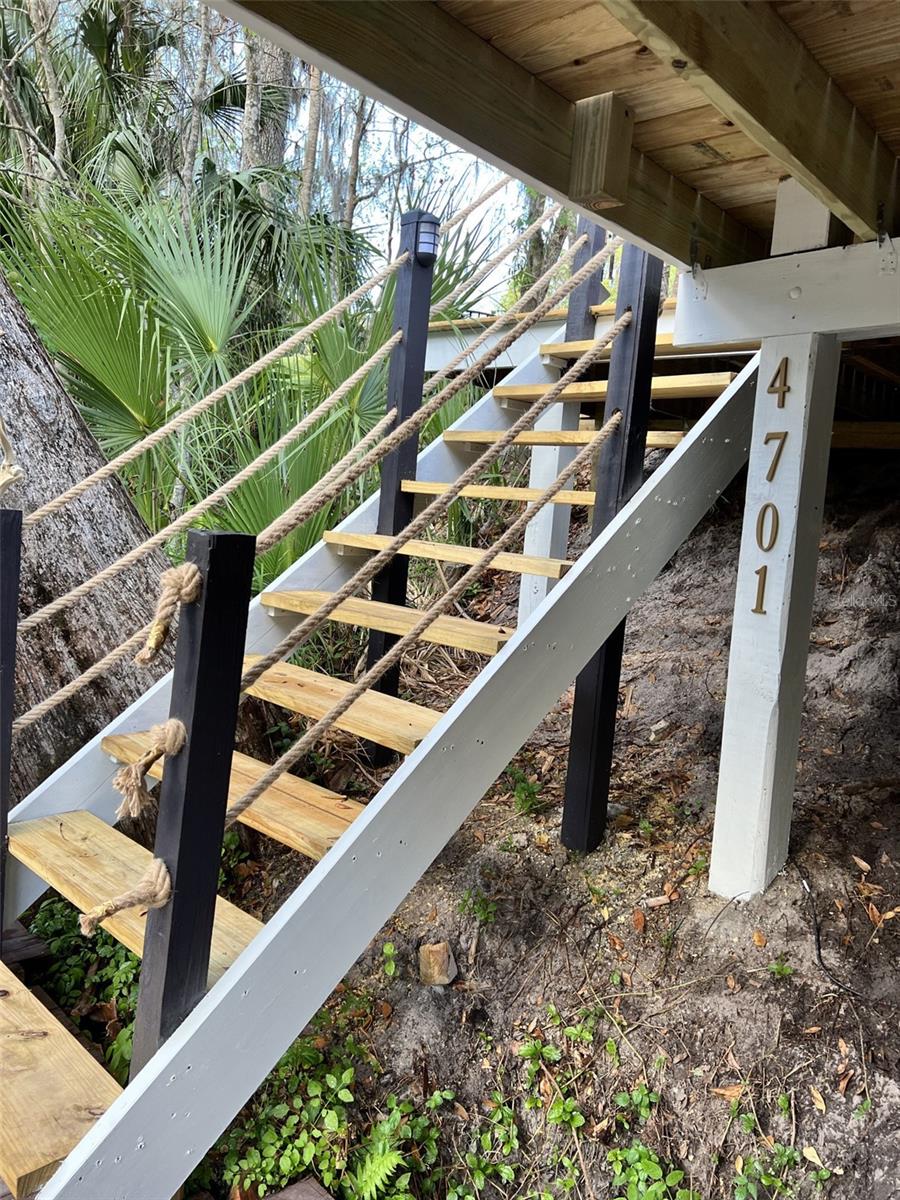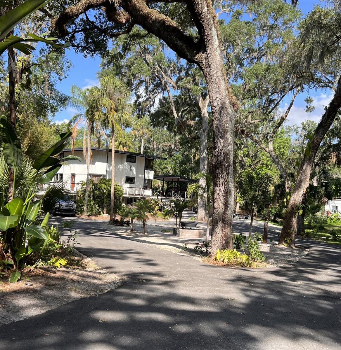One Acre Water Front Home with 5 bedrooms 3 bathrooms and boat Dock (90 feet water front) in exclusive Gated luxury community known as the Alafia Preserve. This luxury custom home is built on the Alafia River, well known for bountiful wildlife, exotic birds, manatees, dolphins, turtles, rays, & lots of migratory game fish to catch right off the dock. The entryway of this property is behind a beautiful waterfall feature with private access gate, where there are currently 4 homes. Each of the estate properties is tucked back along a well maintained & landscaped jungle drive, presenting the impressive homes in a quiet community. This home is architect designed & custom built, at the river's edge of a one acre lot. It is well planned, with intentions to have a timeless modern design, huge picture windows, & high vaulted ceilings with an open air feel. The acreage of this property is 80% in front of the home, and the house is built on the 90 feet of Alafia River frontage, with an impressive multi level deck, and beautiful trees providing shade and home to many cute & friendly animals. The paver entry drive into the the property features sights of a massive Southern Oak tree canopy, sculpted & mature with palm trees, a water/fire fountain in the center of the circular drive way, and artisan hand crafted ballard landscape lighting imported from a renowned artist metal worker in Phoenix AZ, that feature captivating designs. You will want to see the property at night too, as the lighting and landscape cast amazing & impressive art centric shadows on the grounds. As you drive up to the house you are met with ample guest parking, with pavers leading to the grand entry 12 foot wide stair case. With a 3 level deck, this stately waterfront home has 4 bedrooms & 2 full baths, and there is more; downstairs at ground level is the additional 1 bedroom ,1 full bath and kitchenette studio apartment, with 2 car covered ports for parking. The property also features a dog/pet park with a custom made 8 ft. ceiling pet house designed to match in harmony with the architecture of the main house. There is also a "man cave / she shed" for tools, supplies and storage. The property boasts plenty of room for parking boats, water craft, and room for your trailer, but you may also wish to keep your boat at the dock. The main house features front and back entries on the 2nd level: accessed from the grand entry staircase. Outside you can experience many intriguing features of this property, starting on the 3500 square foot deck surrounding the main home. To visit the boat dock, with room to expand on the 90 ft water front, simply follow the next staircase or the overlook at the waters edge. There is also a davit lift for personal watercraft or small boats.
