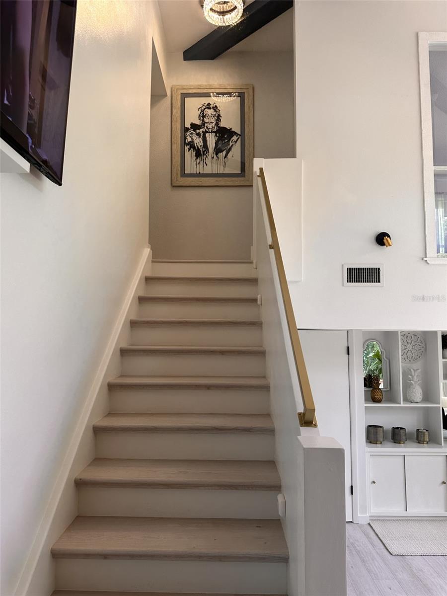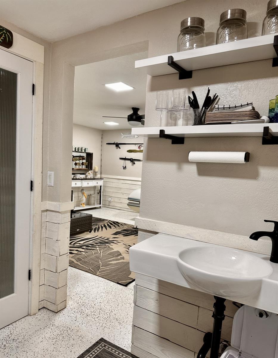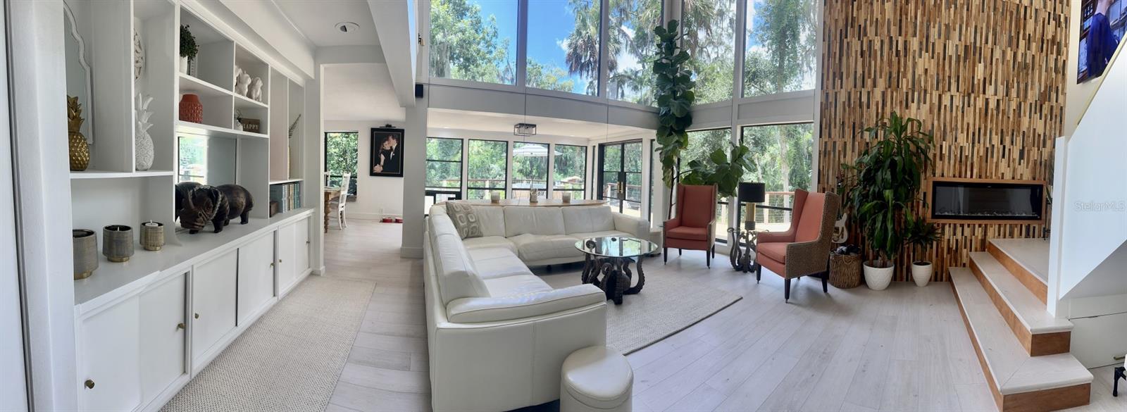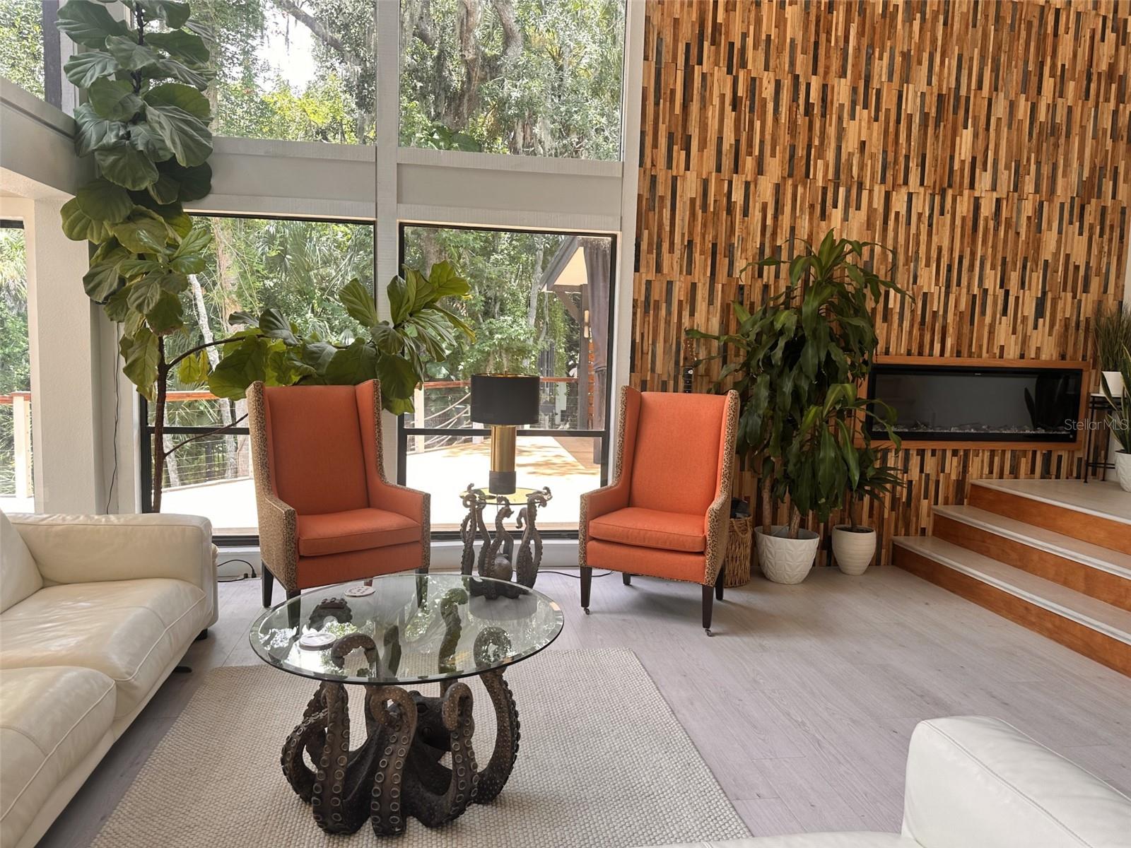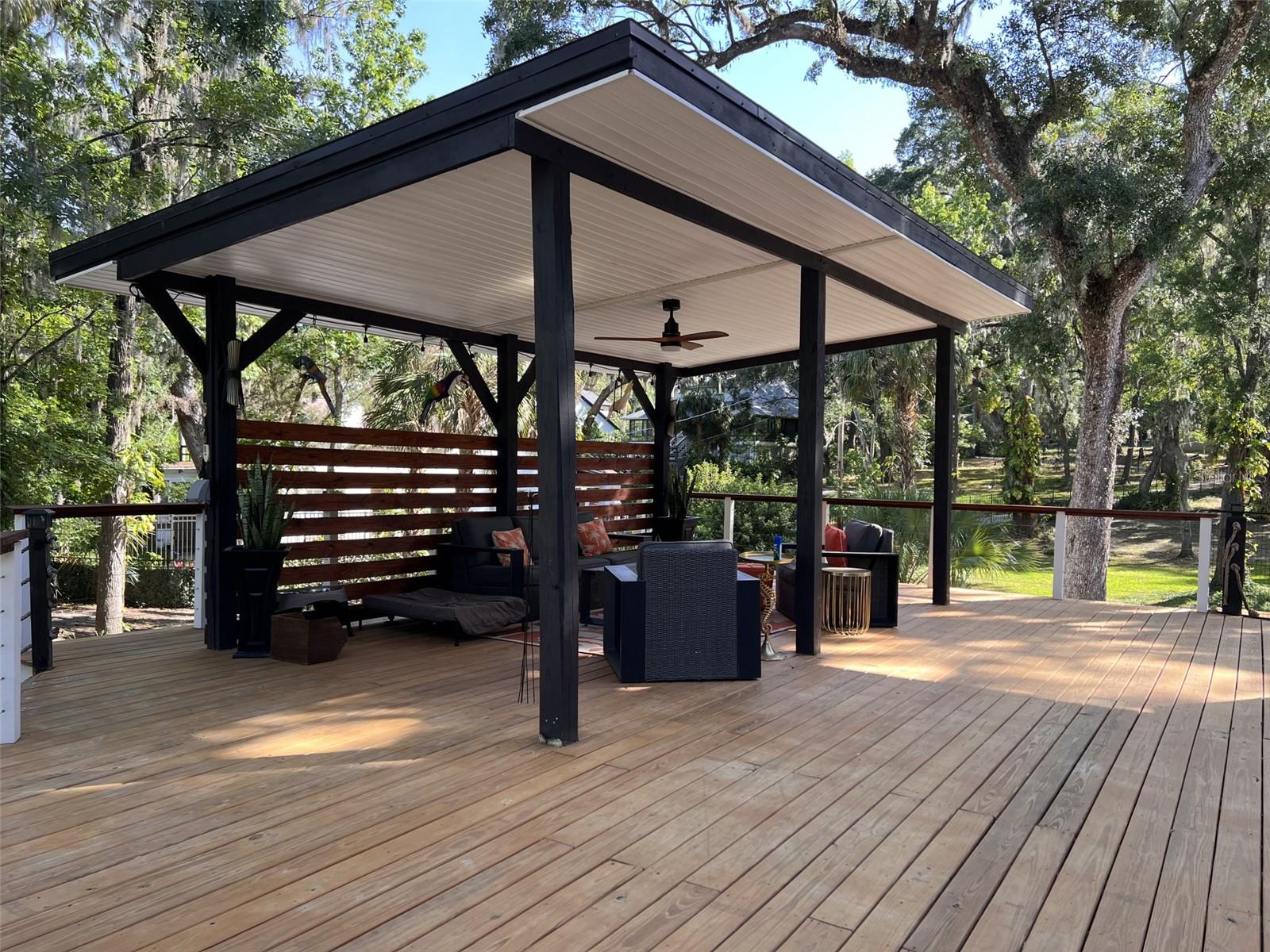 One Acre Water Front Home with 5 bedrooms 3 bathrooms and boat Dock (90 feet water front) in exclusive Gated luxury community known as the Alafia Preserve. This luxury custom home is built on the Alafia River, well known for bountiful wildlife, exotic birds, manatees, dolphins, turtles, rays, & lots of migratory game fish to catch right off the dock. The entryway of this property is behind a beautiful waterfall feature with private access gate, where there are currently 4 homes. Each of the estate properties is tucked back along a well maintained & landscaped jungle drive, presenting the impressive homes in a quiet community. This home is architect designed & custom built, at the river's edge of a one acre lot. It is well planned, with intentions to have a timeless modern design, huge picture windows, & high vaulted ceilings with an open air feel. The acreage of this property is 80% in front of the home, and the house is built on the 90 feet of Alafia River frontage, with an impressive multi level deck, and beautiful trees providing shade and home to many cute & friendly animals. The paver entry drive into the the property features sights of a massive Southern Oak tree canopy, sculpted & mature with palm trees, a water/fire fountain in the center of the circular drive way, and artisan hand crafted ballard landscape lighting imported from a renowned artist metal worker in Phoenix AZ, that feature captivating designs. You will want to see the property at night too, as the lighting and landscape cast amazing & impressive art centric shadows on the grounds. As you drive up to the house you are met with ample guest parking, with pavers leading to the grand entry 12 foot wide stair case. With a 3 level deck, this stately waterfront home has 4 bedrooms & 2 full baths, and there is more; downstairs at ground level is the additional 1 bedroom ,1 full bath and kitchenette studio apartment, with 2 car covered ports for parking. The property also features a dog/pet park with a custom made 8 ft. ceiling pet house designed to match in harmony with the architecture of the main house. There is also a "man cave / she shed" for tools, supplies and storage. The property boasts plenty of room for parking boats, water craft, and room for your trailer, but you may also wish to keep your boat at the dock. The main house features front and back entries on the 2nd level: accessed from the grand entry staircase. Outside you can experience many intriguing features of this property, starting on the 3500 square foot deck surrounding the main home. To visit the boat dock, with room to expand on the 90 ft water front, simply follow the next staircase or the overlook at the waters edge. There is also a davit lift for personal watercraft or small boats.