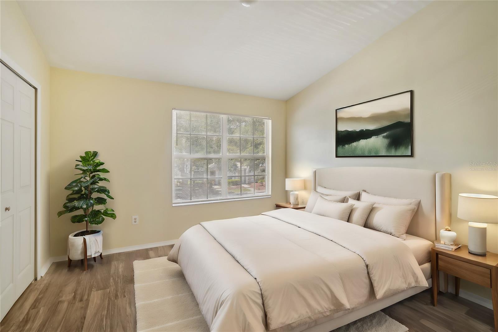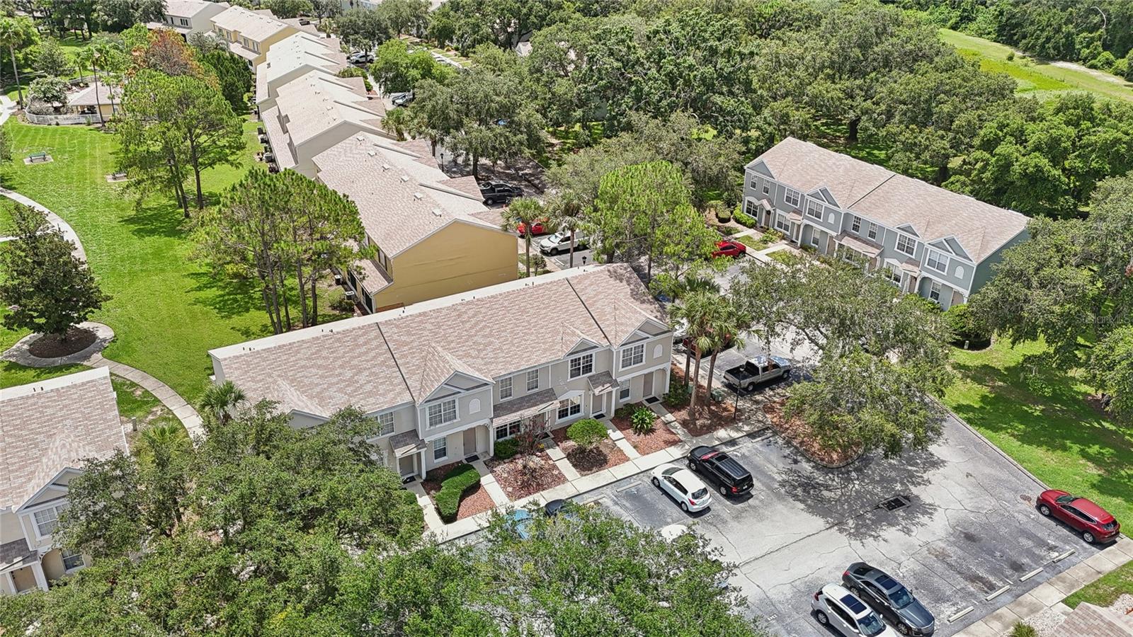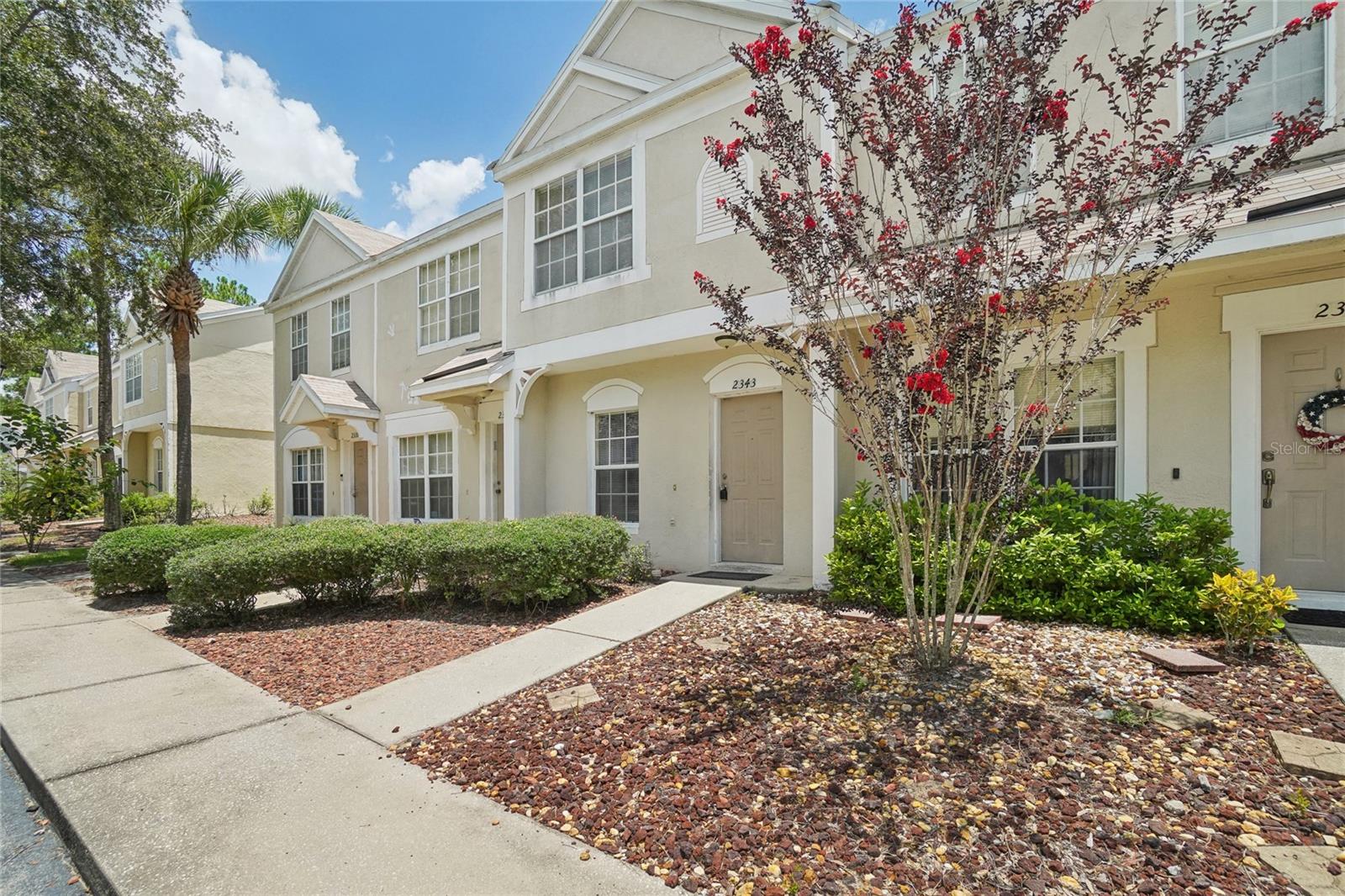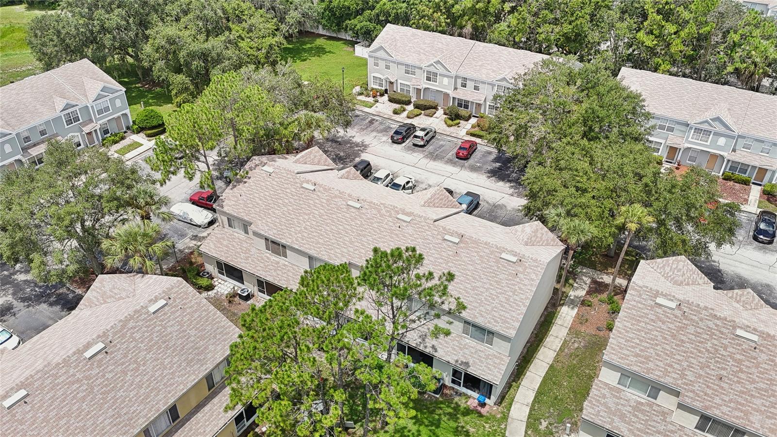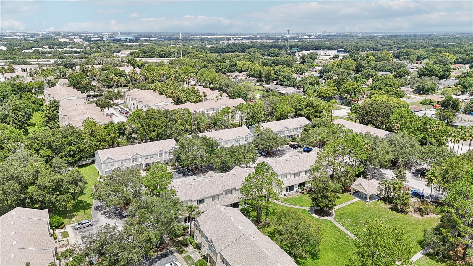 Welcome to your new home in the Regency Key community that's located less than 20 minutes away from downtown Tampa! This townhouse features two bedrooms on the second floor with vaulted ceilings that each have their own en suite bathrooms as well as an additional half bathroom on the first floor right next to the laundry closet. Both bedrooms and the living room have recently installed vinyl flooring while the kitchen and bathrooms have tile floors. The sliding doors from the living room bring you to a spacious enclosed lanai with additional storage with a nice view of mature trees in the back. The HOA fee includes assigned parking spot, water, sewer, exterior maintenance, swimming pool, basic cable and internet, lawn care, etc. The house was professionally cleaned and is ready for you to move in! Schedule your showing and submit your offer before it's gone!