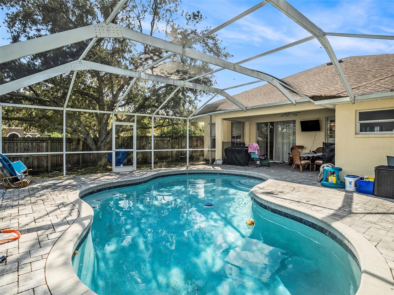 Charming 4-Bedroom/3-Bathroom Pool Home in Bloomingdale Village. Nestled on a corner lot in the sought-after Bloomingdale Village neighborhood, this spacious 4-bedroom, 3-bathroom home boasts a range of features and updates. Highlights include a brand new roof (2023), newer HVAC system, and a nearly ¼ acre lot with a long driveway. Inside, enjoy a formal living and dining room, along with a versatile bonus space with built-in cabinets—perfect for a home office or study area. The main suite features tray ceilings, dual sinks, a shower and tub, and dual closets. The guest bathrooms showcase elegant marble tops, while light warm colors and ceiling fans enhance the inviting atmosphere.Step outside to your own oasis with a covered patio and screened-in pool area, complete with pavers and a fully fenced yard for privacy. Located just off Bryan Road between Lumsden Ave. and Bloomingdale Ave., this home is minutes away from shopping and dining. Don’t miss out on this incredible opportunity!