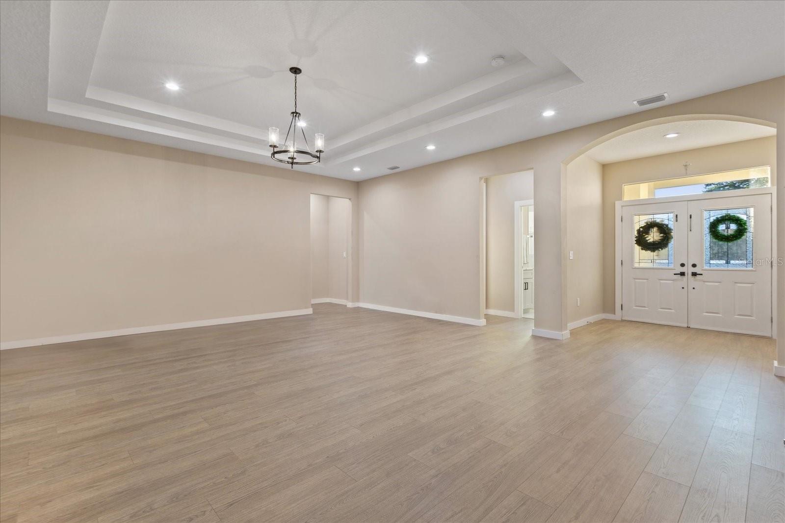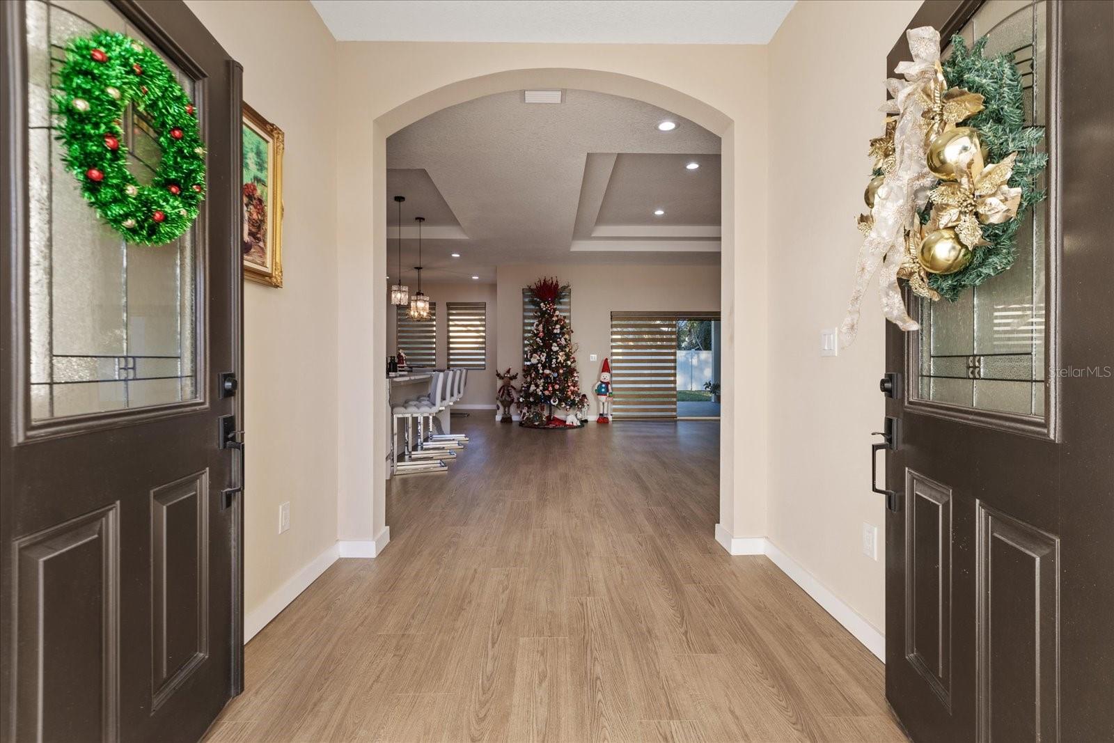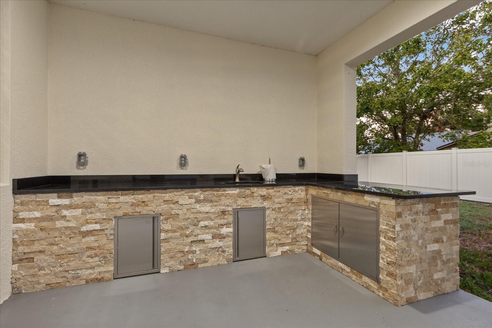 One or more photo(s) has been virtually staged. Beautiful new build in 2024 with 4 bedrooms 3 bathrooms with an oversize garage , the home features a beautiful 14 foot entrance with a double door, the second you come in there is a nice large foyer, a dream kitchen with a water fall on the island, all 42 inch wood cabinets with a nice cooktop with a 36 inch range hood and a double oven ,beautiful marble counter top with full backsplash. all 8 foot doors for all bedrooms, all stand showers in bathroom and a stunning dream bathroom in the master bedroom with a large shower along with gold trim all through out and a beautiful stand alone tub. a double tray ceiling in master bedroom and Livingroom, once you step in the back porch it features a very large covered porch for your get together with an outdoor kitchen with nice black counter t and cover stone walls.