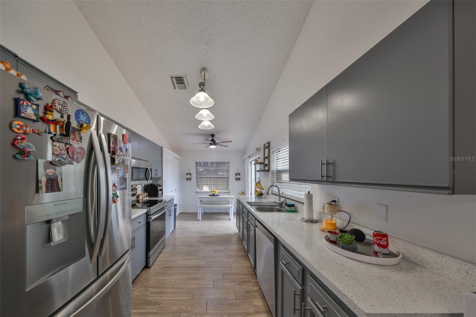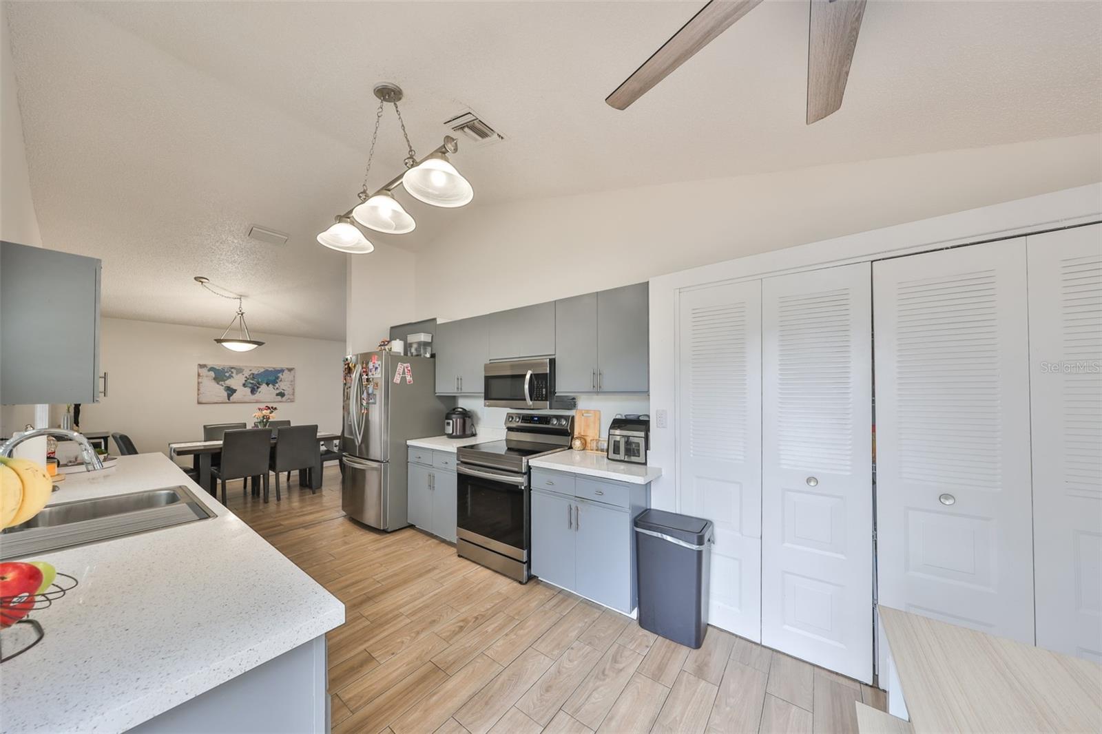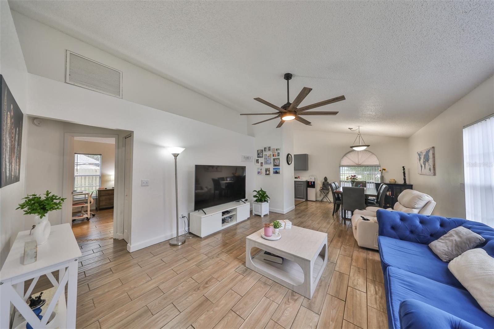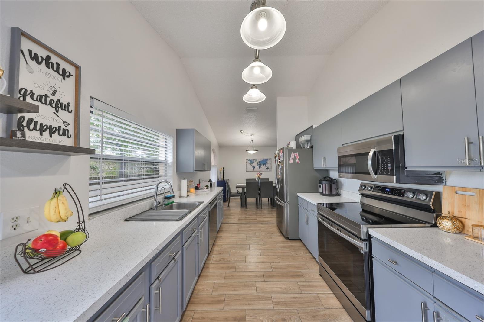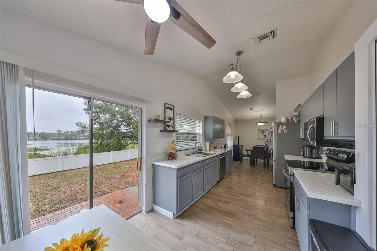 Your dream home is waiting for you! This stunning 3 bedroom, 2 bathroom Home offers comfort, style, and a Breathtaking backyard view with mesmerizing sunsets. With nearly 1,200 Sq. Ft, It's layout is both functional and inviting. The upgraded kitchen features granite countertops, modern appliances, and a smart stove you can control from your phone (WiFi connection). The bathrooms have been updated with granite finishes, adding a touch of elegance. Say goodbye to the carpets! The house boasts beautiful wood-style ceramic flooring, combining durability and sophistication. The spacious fenced-inbackyard is perfect for family gathering enjoying the views of the lake at the siting area, and has enough room to build the pool of your dreamson this large lot. The house has camera outside and Keyless pad. Roof installed 2021, No CDD, Low HOA, bahroomms and kitchen remodeled less than 2 years ago. Centrally located near shopping centers, restaurants, hospital,s and major highways, that offers convenience and easy access to everything you need. Don't miss the chance to call this Gem your own!
