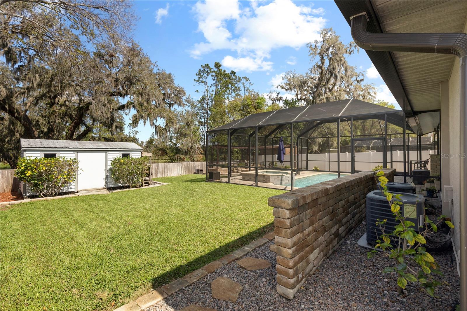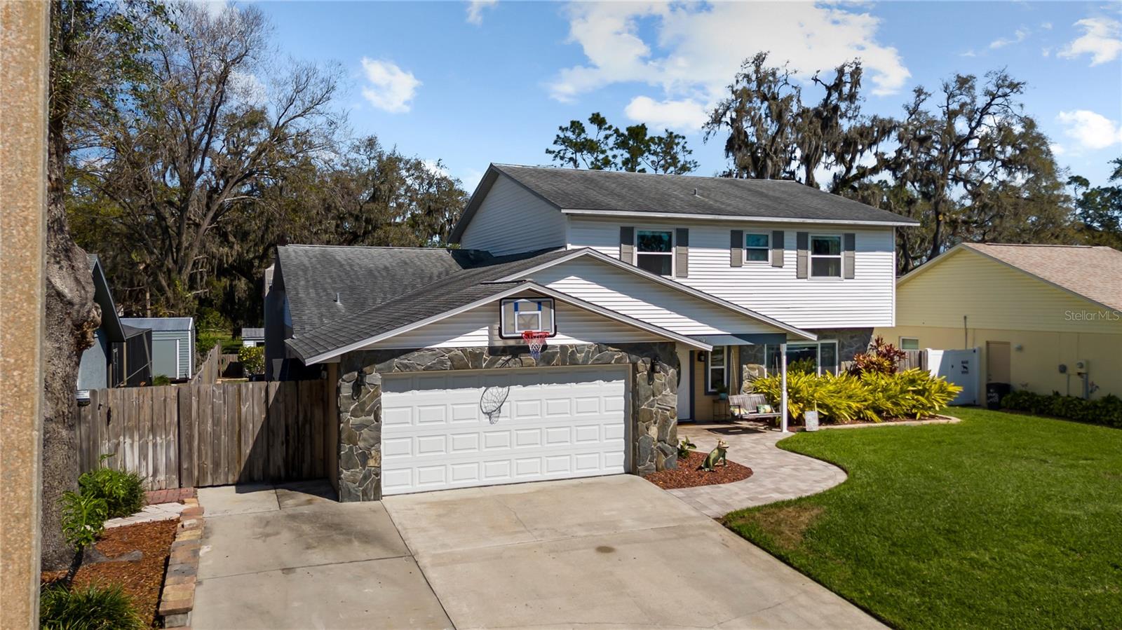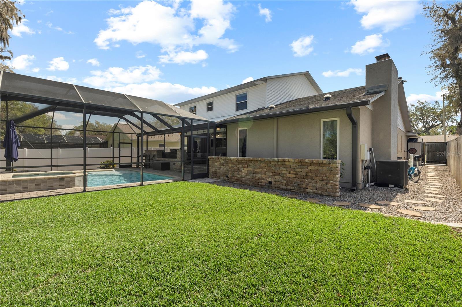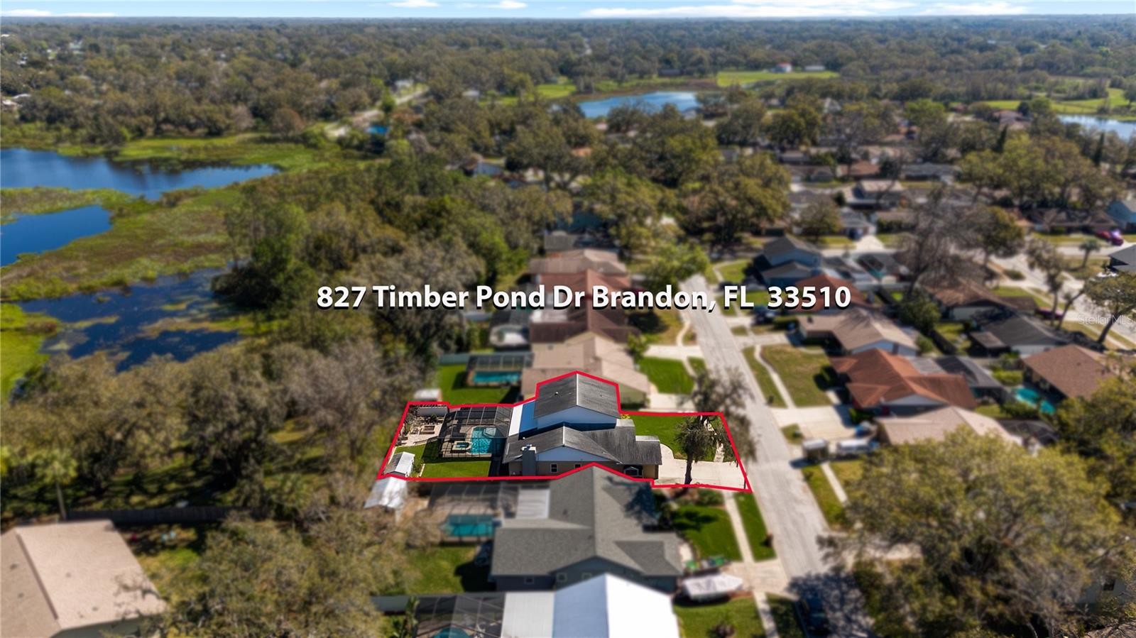 A One-of-a-Kind Retreat nestled in the highly sought-after Timber Pond community! This beautifully updated 5-bedroom, 3.5-bathroom home with a pool and fully fenced yard offers over 3,000 sq. ft. of living space on a generous half-acre lot. With no Flood insurance required, No HOA and No CDD, you have the freedom to make this space truly your own while enjoying the beauty and privacy of lakeside living. Step inside and be welcomed by a bright and airy foyer, with wood grain tile flooring throughout the main living areas. The spacious living room flows seamlessly into a cozy reading retreat — the perfect place to prioritize relaxation. The kitchen is a chef's dream, featuring stainless steel appliances, ample cabinet and counter space, and a dining area large enough to bring the entire family together. Relax and unwind in the family room, complete with a charming wood-burning fireplace—ideal for cozy evenings with loved ones. The downstairs primary suite is beautifully done, boasting a walk-in closet and an ensuite bathroom with a dual sink vanity. Upstairs, you'll find four additional bedrooms, thoughtfully arranged to provide privacy and comfort for family or guests. Two bedrooms share a convenient Jack-and-Jill bathroom, while a third full bathroom is easily accessible to the remaining bedrooms. Step outside to your private backyard oasis. A spacious deck, sparkling pool, relaxing jacuzzi and pavered patio set the stage for endless outdoor enjoyment. The built-in grill is perfect for weekend barbecues, while the pergola boasts a butterfly garden and charming firepit that will delight family members as they roast marshmallows together on cold nights. The storage shed provides a convenient place to keep yard maintenance and gardening tools. The backyard overlooks a protected wetland offering a quiet country feel and additional privacy year-round. Conveniently located in the heart of Brandon, this home offers easy access to Tampa, Riverview, and Plant City. Embrace the Timber Pond lifestyle and make this retreat your own. Don't miss the opportunity to call this dream home yours!