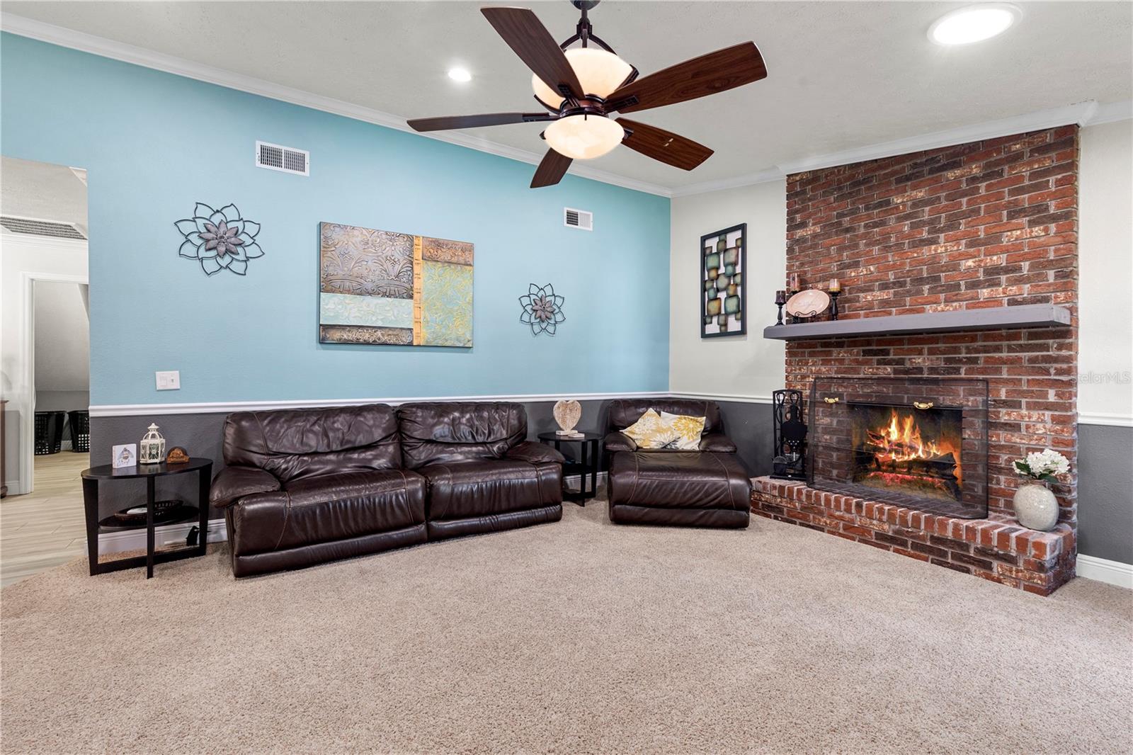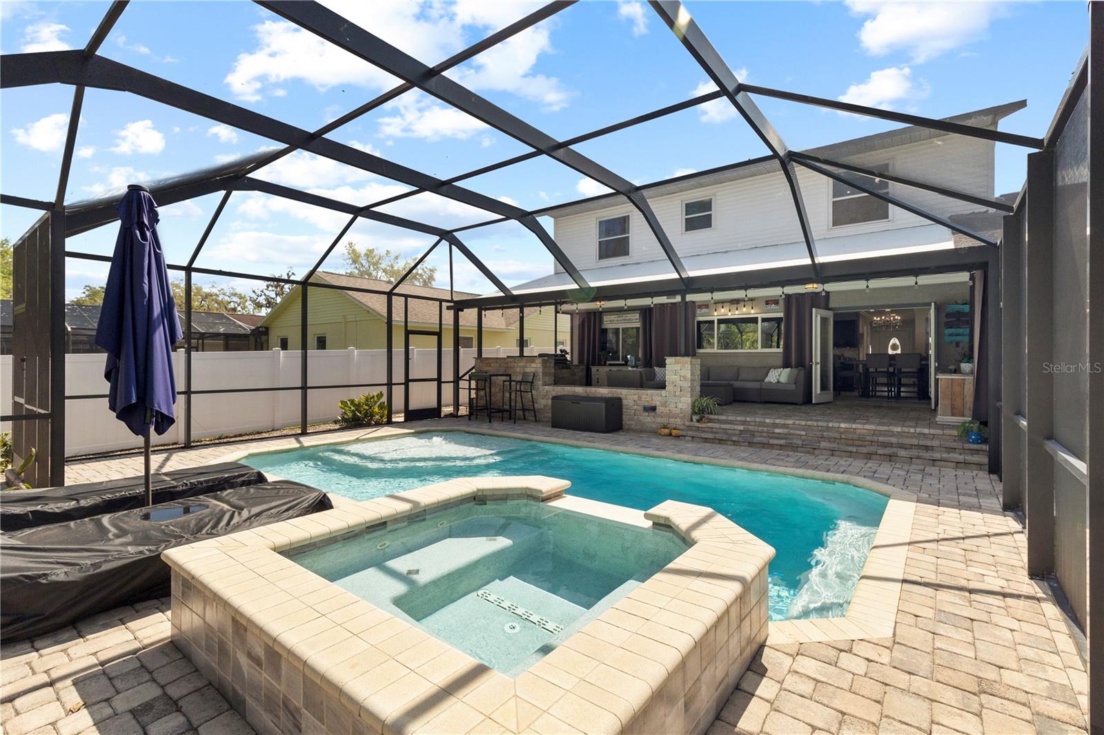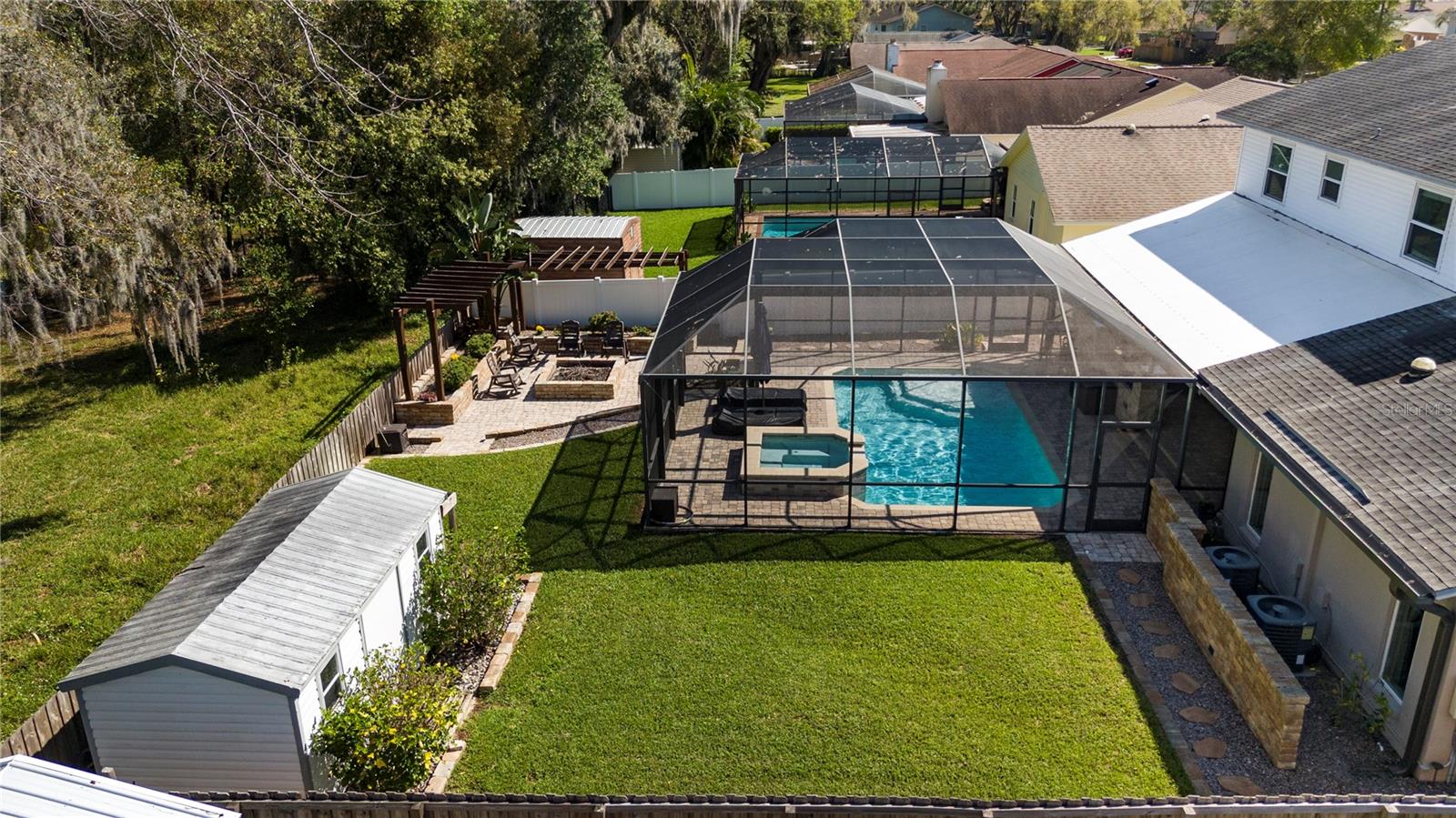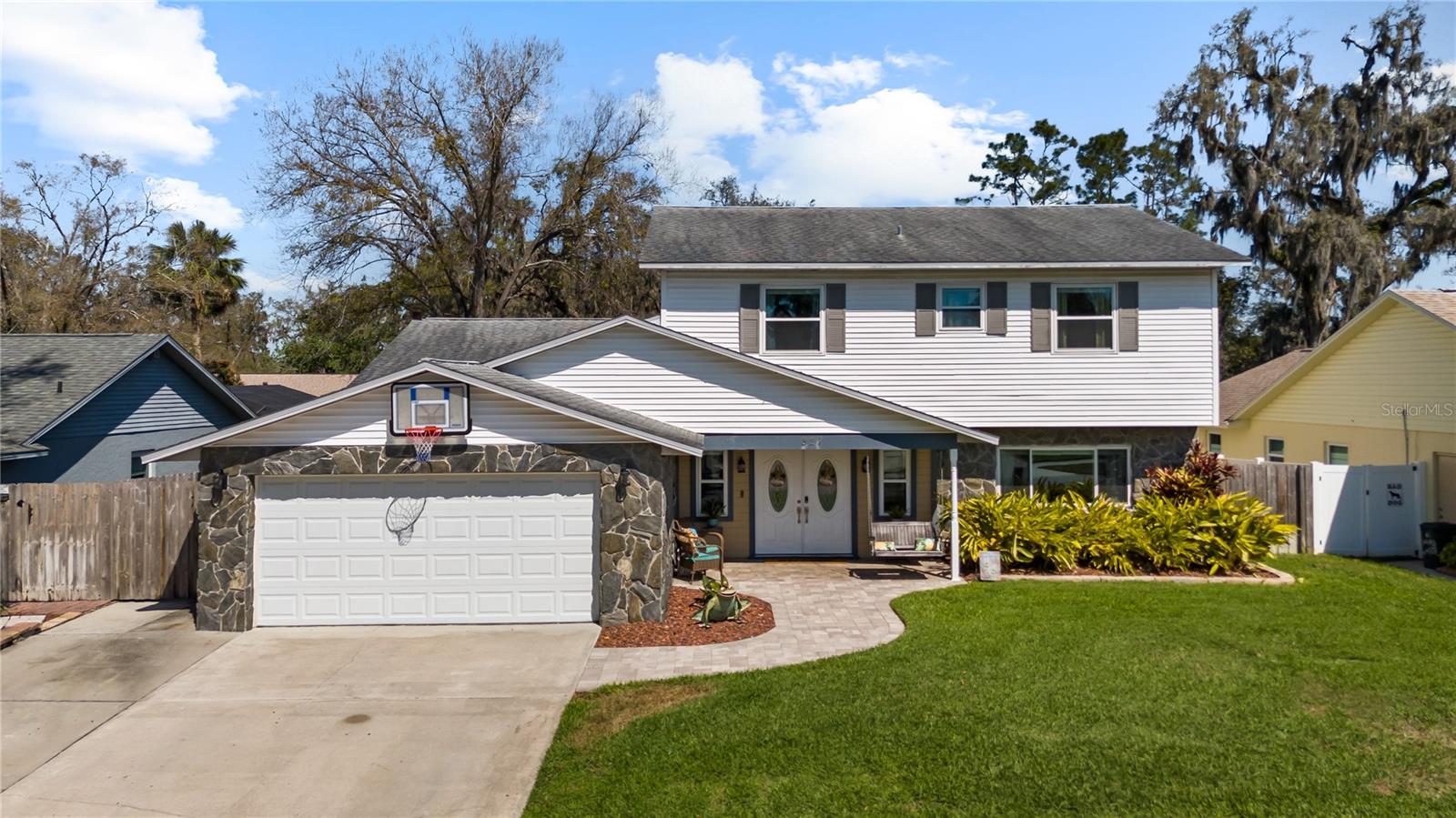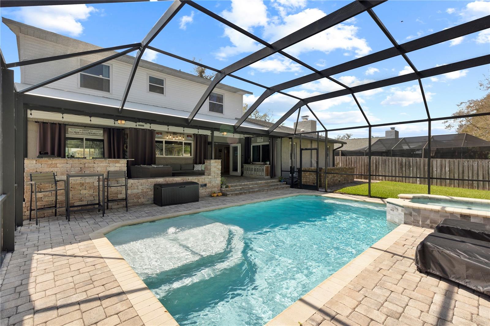 A One-of-a-Kind Retreat nestled in the highly sought-after Timber Pond community! This beautifully updated 5-bedroom, 3.5-bathroom home with a pool and fully fenced yard offers over 3,000 sq. ft. of living space on a generous half-acre lot. With no Flood insurance required, No HOA and No CDD, you have the freedom to make this space truly your own while enjoying the beauty and privacy of lakeside living. Step inside and be welcomed by a bright and airy foyer, with wood grain tile flooring throughout the main living areas. The spacious living room flows seamlessly into a cozy reading retreat — the perfect place to prioritize relaxation. The kitchen is a chef's dream, featuring stainless steel appliances, ample cabinet and counter space, and a dining area large enough to bring the entire family together. Relax and unwind in the family room, complete with a charming wood-burning fireplace—ideal for cozy evenings with loved ones. The downstairs primary suite is beautifully done, boasting a walk-in closet and an ensuite bathroom with a dual sink vanity. Upstairs, you'll find four additional bedrooms, thoughtfully arranged to provide privacy and comfort for family or guests. Two bedrooms share a convenient Jack-and-Jill bathroom, while a third full bathroom is easily accessible to the remaining bedrooms. Step outside to your private backyard oasis. A spacious deck, sparkling pool, relaxing jacuzzi and pavered patio set the stage for endless outdoor enjoyment. The built-in grill is perfect for weekend barbecues, while the pergola boasts a butterfly garden and charming firepit that will delight family members as they roast marshmallows together on cold nights. The storage shed provides a convenient place to keep yard maintenance and gardening tools. The backyard overlooks a protected wetland offering a quiet country feel and additional privacy year-round. Conveniently located in the heart of Brandon, this home offers easy access to Tampa, Riverview, and Plant City. Embrace the Timber Pond lifestyle and make this retreat your own. Don't miss the opportunity to call this dream home yours!