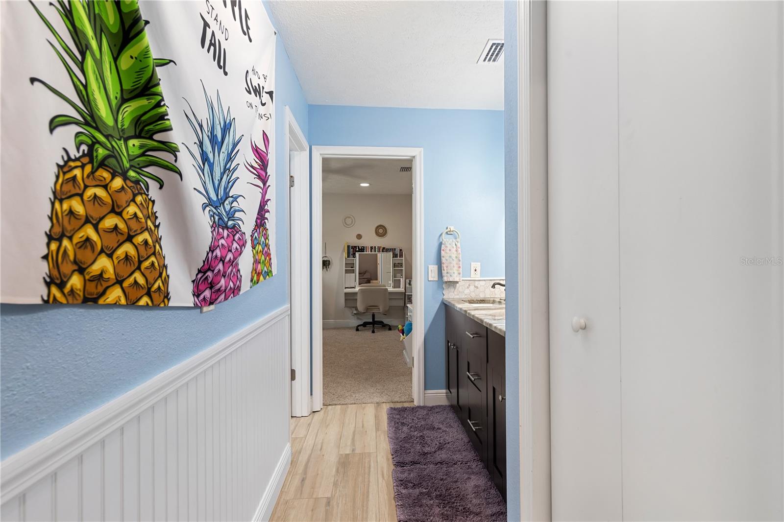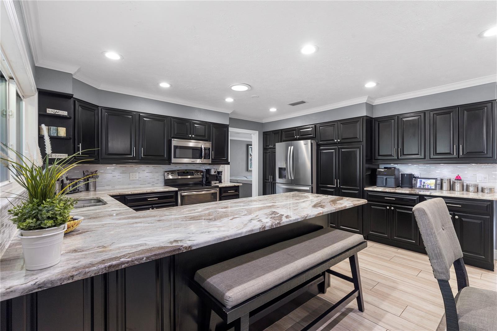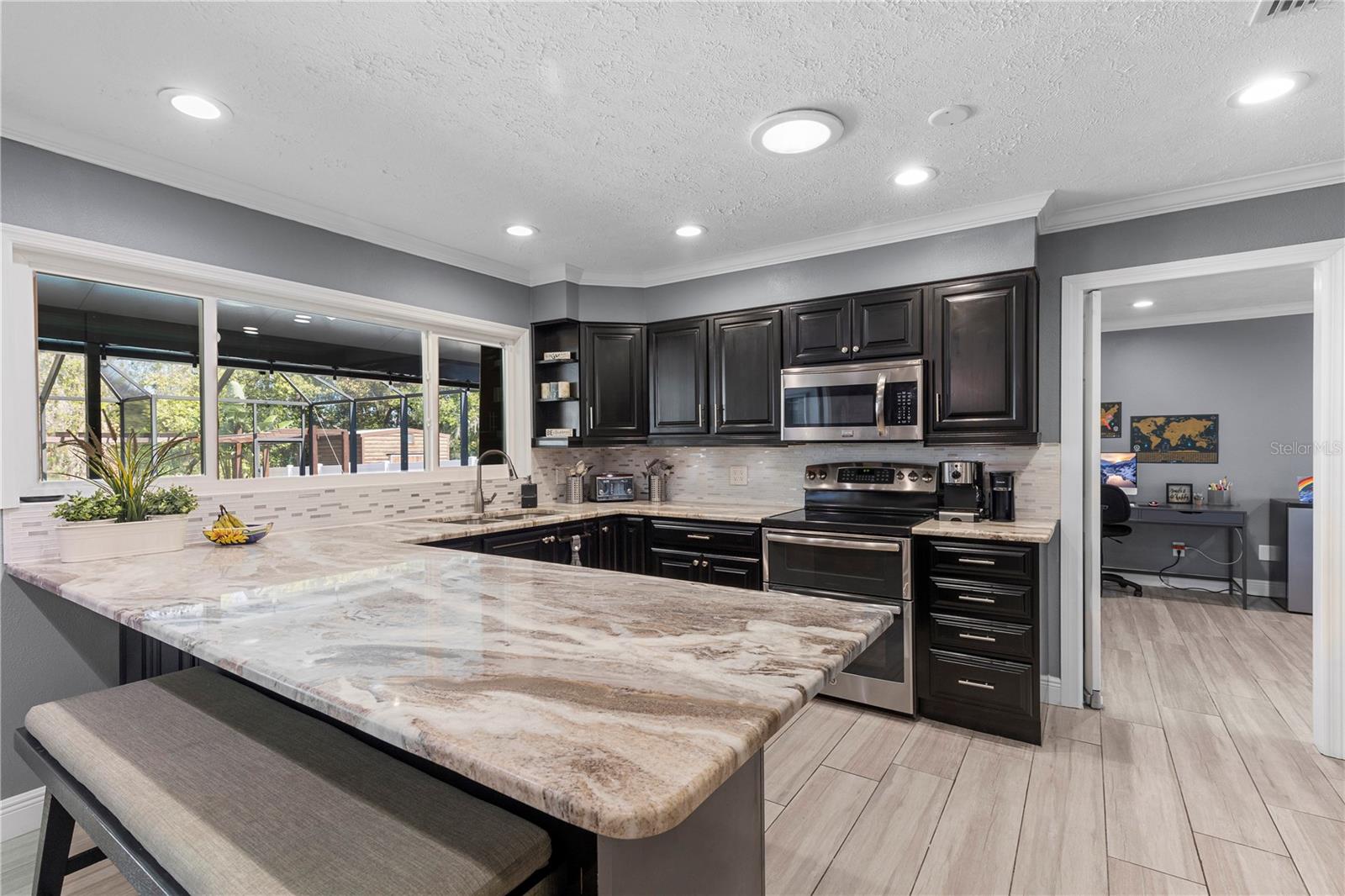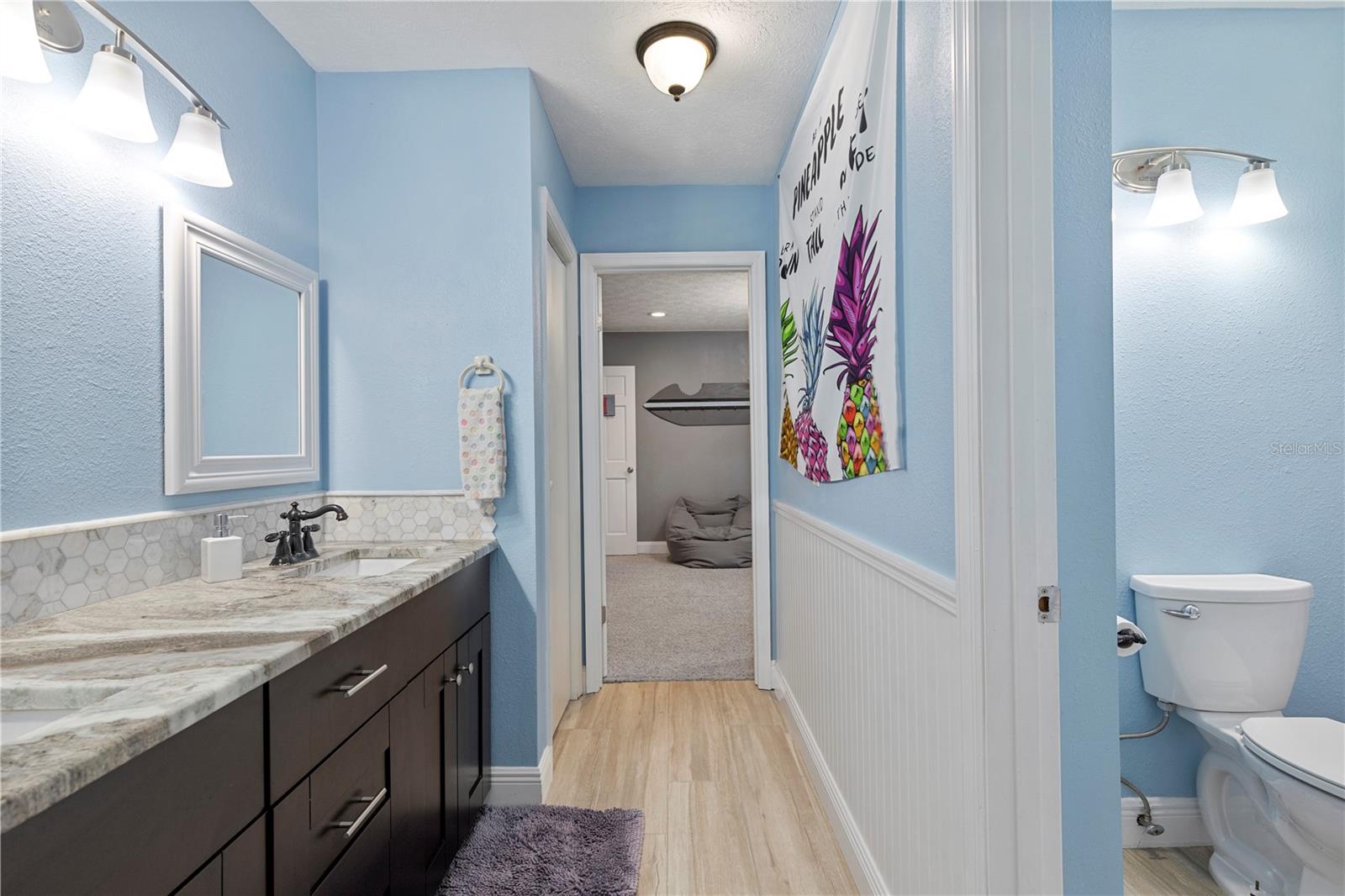 A One-of-a-Kind Retreat nestled in the highly sought-after Timber Pond community! This beautifully updated 5-bedroom, 3.5-bathroom home with a pool and fully fenced yard offers over 3,000 sq. ft. of living space on a generous half-acre lot. With no Flood insurance required, No HOA and No CDD, you have the freedom to make this space truly your own while enjoying the beauty and privacy of lakeside living. Step inside and be welcomed by a bright and airy foyer, with wood grain tile flooring throughout the main living areas. The spacious living room flows seamlessly into a cozy reading retreat — the perfect place to prioritize relaxation. The kitchen is a chef's dream, featuring stainless steel appliances, ample cabinet and counter space, and a dining area large enough to bring the entire family together. Relax and unwind in the family room, complete with a charming wood-burning fireplace—ideal for cozy evenings with loved ones. The downstairs primary suite is beautifully done, boasting a walk-in closet and an ensuite bathroom with a dual sink vanity. Upstairs, you'll find four additional bedrooms, thoughtfully arranged to provide privacy and comfort for family or guests. Two bedrooms share a convenient Jack-and-Jill bathroom, while a third full bathroom is easily accessible to the remaining bedrooms. Step outside to your private backyard oasis. A spacious deck, sparkling pool, relaxing jacuzzi and pavered patio set the stage for endless outdoor enjoyment. The built-in grill is perfect for weekend barbecues, while the pergola boasts a butterfly garden and charming firepit that will delight family members as they roast marshmallows together on cold nights. The storage shed provides a convenient place to keep yard maintenance and gardening tools. The backyard overlooks a protected wetland offering a quiet country feel and additional privacy year-round. Conveniently located in the heart of Brandon, this home offers easy access to Tampa, Riverview, and Plant City. Embrace the Timber Pond lifestyle and make this retreat your own. Don't miss the opportunity to call this dream home yours!