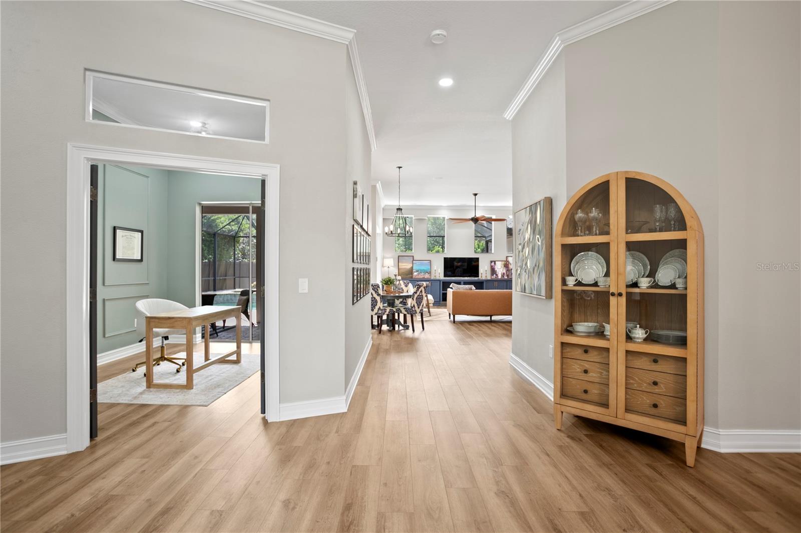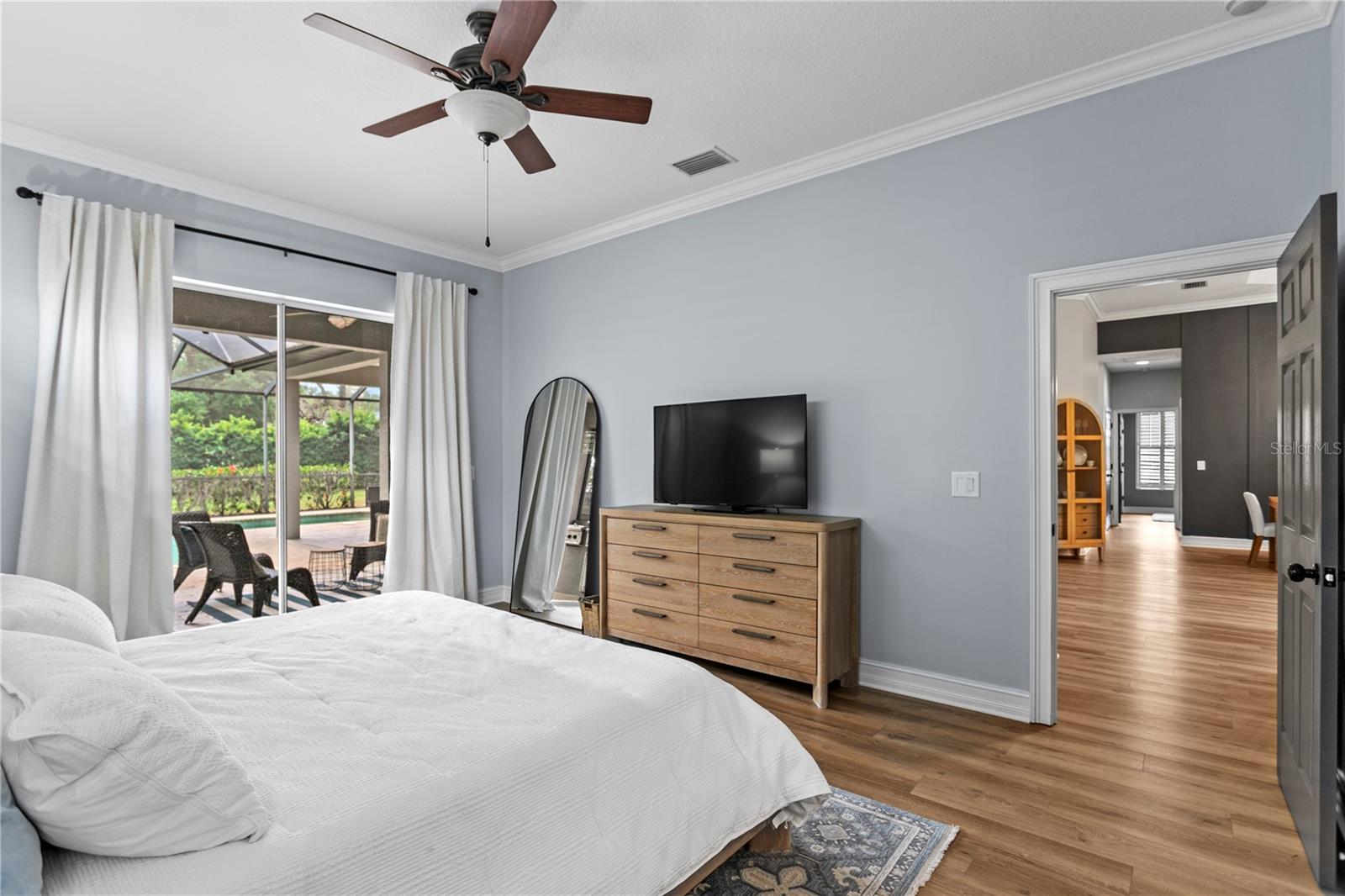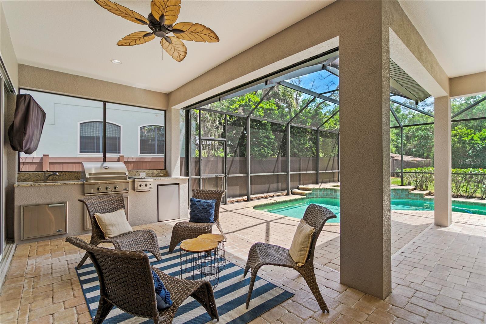 This newly renovated 4 bedroom, 3 bathroom custom pool home is located on a cul-de-sac in the sought-after, gated Stonewood community. All new interior and exterior paint, new roof, new AC, new flooring, countertops and updated finishes throughout, this home is move-in ready and beautifully finished. The entryway welcomes you into the home with views of the pool and yard and is open to a Formal Dining Room with tray ceiling. Across from the Dining Room, French doors lead to a separate Office with sliding doors that lead to the pool and patio. The spacious Kitchen has ample solid wood cabinetry, updated countertops and backsplash with stainless steel appliances, a center island, breakfast bar and dining nook. The Kitchen is open to the Family Room with new, custom built-ins and sliders to the screened pool and lanai. The Primary Bedroom suite has sliders to the lanai and also has two large walk-in custom closets and an en-suite bath with separate tub and shower, and double vanity. A guest bedroom has a walk-in closet and full bath, and two additional bedrooms with custom closet systems share a full bath. The large Bonus Room has sliding doors with views of the pool, patio and yard with high ceilings and great natural lighting. This home also has ample storage space, a laundry room with utility sink, and a three-car attached garage, built in features, custom closets, and ideal natural lighting. Outside there is plenty of space for entertaining with a large covered lanai with surround sound system, an outdoor kitchen and a heated pool and spa, all situated on a spacious lot of nearly half an acre. Convenient proximity to highways, schools, shopping and restaurants.