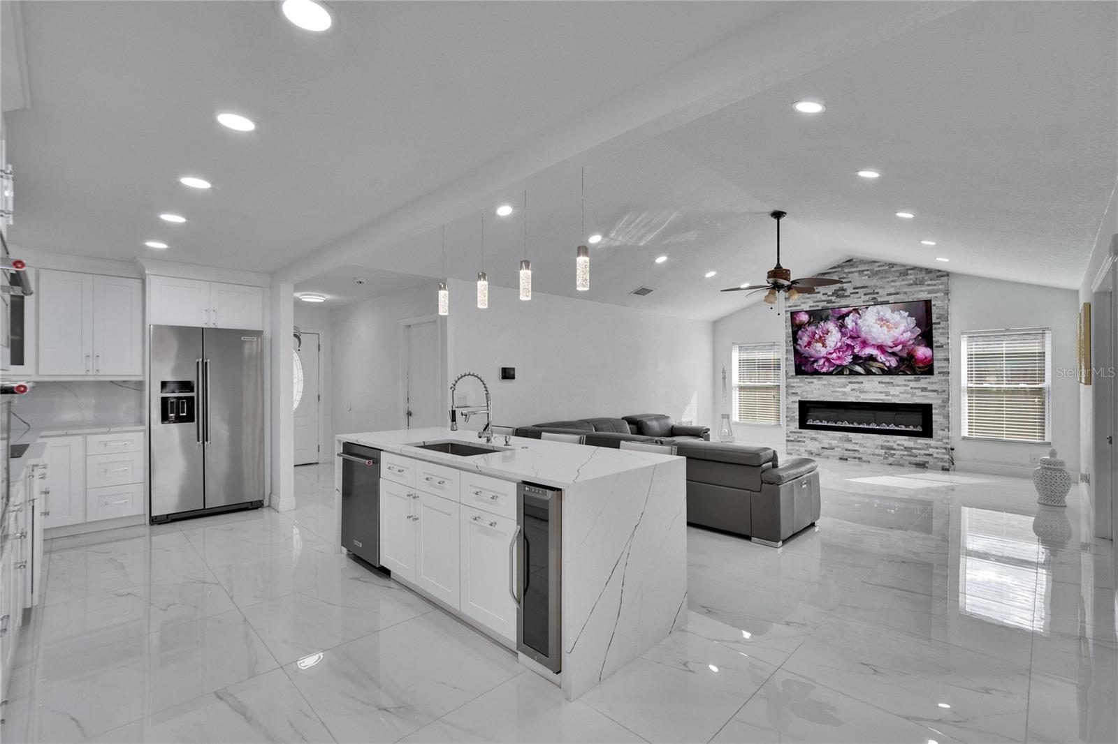Welcome to your slice of paradise in Brandon – a spectacular pool home nestled on over ¾ acre of prime real estate! Step inside to discover elegant tile flooring throughout this immaculately maintained residence. The open concept design features a sophisticated living and dining area that flows effortlessly into a breakfast nook overlooking the lush backyard. Culinary enthusiasts will appreciate the completely reimagined kitchen, boasting high-end KitchenAid appliances, luxurious quartz countertops, backsplash, and thoughtfully designed storage solutions, including a professional-grade stainless steel hood and versatile dual oven/microwave combination. Nearby, the expansive family room centers around a cozy fireplace, perfect for gathering loved ones. Privacy comes standard with the intelligent split floor plan, featuring a secluded master retreat with generous walk-in closet and spa-inspired ensuite showcasing dual vanities, soaking tub, and walk-in shower. Across the home, two additional bedrooms provide ideal separation, complemented by a fully modernized second bathroom with designer quartz vanity, sleek frameless glass shower and shower with indulgent rain shower feature. The outdoor living space transforms everyday into vacation with a covered patio overlooking your resort-style inground pool – ideal for fitness enthusiasts and entertainers alike. The sprawling backyard offers endless creative possibilities for the outdoor lifestyle you have always envisioned. Recent enhancements include fresh exterior paint (2025) and a new roof (2021), providing peace of mind with your investment. Enjoy unparalleled convenience with shopping, dining, Brandon Mall, and major highways (I-75, Selmon Expressway, I-4) just moments away, allowing effortless commutes to downtown Tampa, MacDill AFB, and Tampa International Airport. Your luxury lifestyle awaits – contact us today for your exclusive showing!