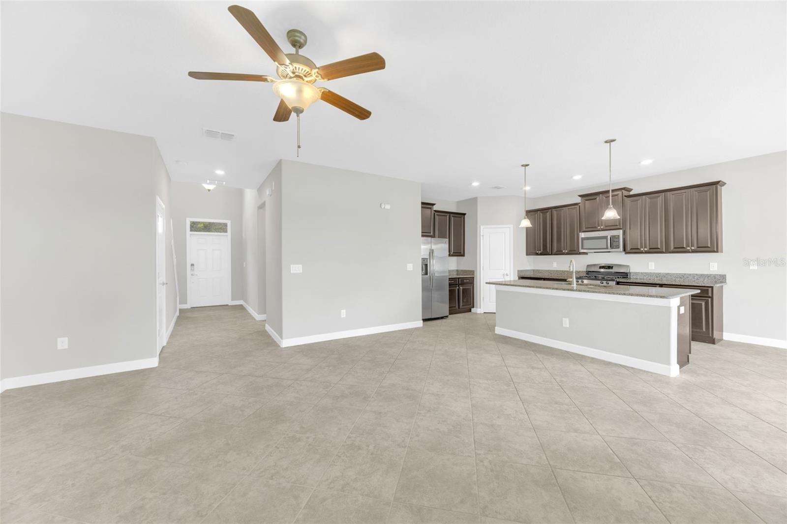 Welcome to this beautifully designed home, where a charming paver driveway and an inviting front porch greet you. Step inside to find a welcoming entryway and staircase that opens into a spacious, open-concept kitchen and family room—perfect for modern living and entertaining. Beyond the functional backyard features a screened lanai, ideal for grilling, relaxing, or hosting guests. This well-appointed home offers four spacious bedrooms, a generous loft, and two and a half bathrooms. The kitchen is equipped with natural gas appliances, including a gas range and water heater, offering both efficiency and performance. Additional features include a durable tile roof and a two-car garage. Located in a vibrant gated community, residents enjoy exceptional amenities such as a large resort-style pool with a cabana area, a dog park, and a clubhouse. The community also has gated access for added privacy and grounds maintenance, making everyday living even more convenient. This home truly has it all—comfort, style, and community.