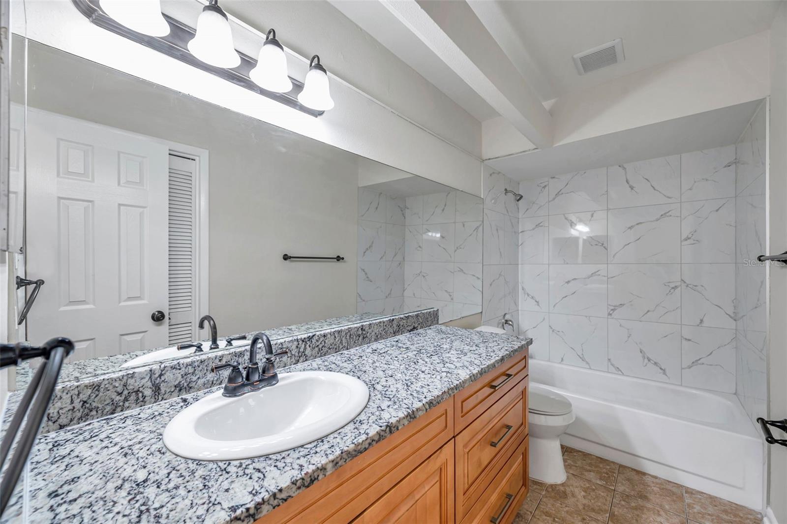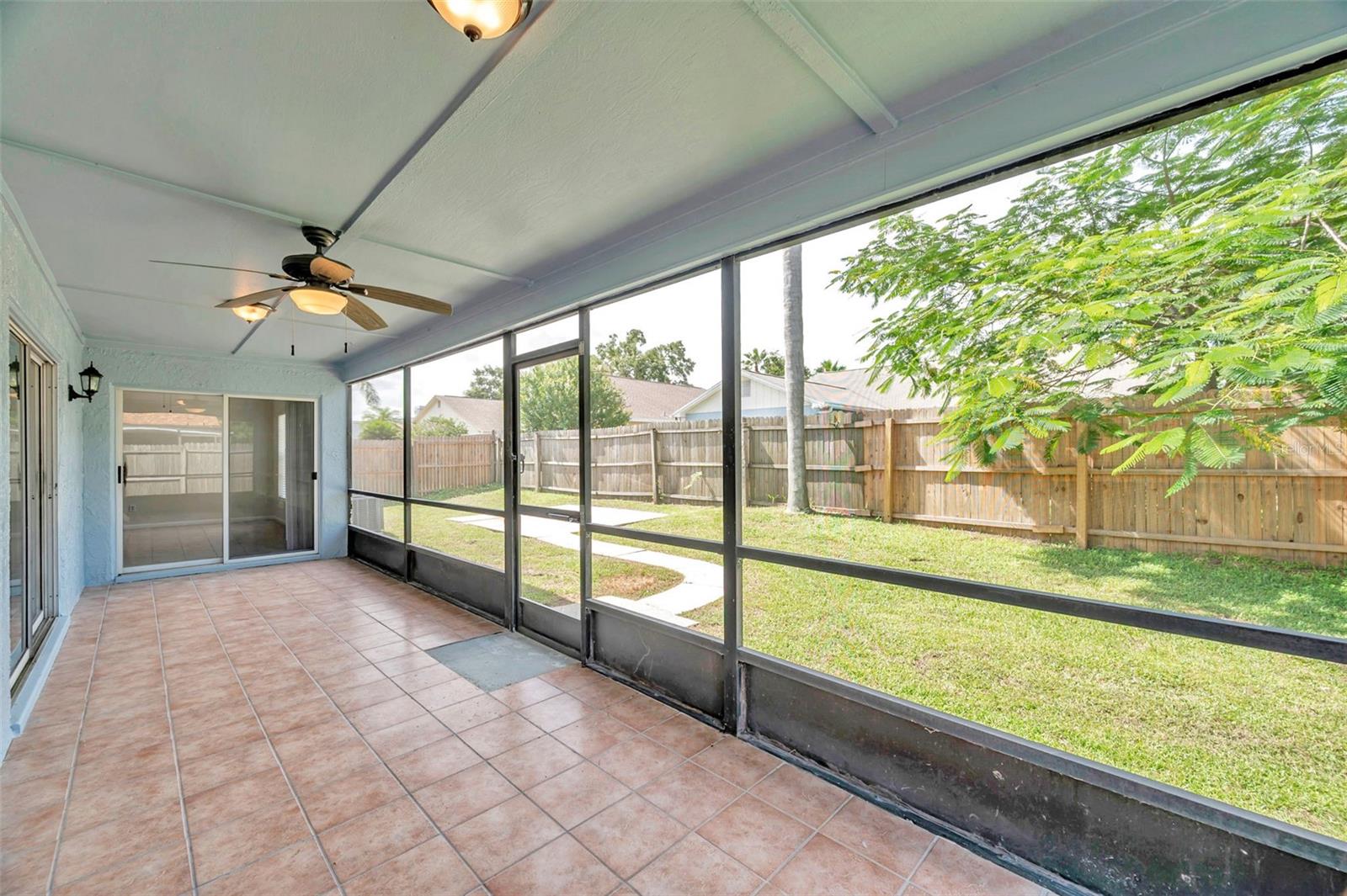 Welcome home to this spacious four-bedroom, two-bath residence in the Providence Lakes Subdivision. This move-in ready home features recent updates, including fresh interior and exterior paint, new luxury vinyl plank flooring in the main areas, new carpeting in the bedrooms, updated bathrooms with new tile surrounds, and a brand-new roof (2025). The well-designed floor plan offers a large, open family room with soaring ceilings and sliding glass doors, a separate dining room, and a kitchen with a breakfast nook and bay window. The bedrooms are arranged in a three-way split layout. The primary suite is located at the back right of the home and features a sliding glass door to the patio, an en-suite bathroom with a spacious closet, and a dual-sink vanity. Two secondary bedrooms are situated at the rear left side, while the fourth bedroom is at the front of the home with built-in shelving—ideal for a home office. Additional features include an inside laundry room, a kitchen with a pantry closet and breakfast bar, granite countertops, ceiling fans in every room, a fenced yard, and a large screened, covered patio. This home is centrally located in Brandon, offering easy access to major roads, shopping, dining, schools, hospitals, entertainment, and the Brandon Town Center Mall. The Providence Lakes community boasts a low annual HOA fee, no CDD fees, and amenities such as a playground and park with picnic tables. Schedule your private tour today!