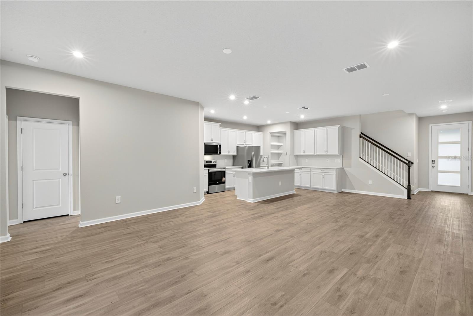 This Award-Winning Venice townhome with a Modern exterior design lives like a single-family home. This impressive two-story townhome is 2,586 square feet with 4 bedrooms, 3 baths, and a 2-car garage. This home offers a bedroom on the first level, adjacent to a full bath with a step-in shower. The Venice offers a designer kitchen with abundant cabinet space and a center island. The cabinets are upgraded throughout and include brushed nickel cabinet hardware. This home has quartz countertops color matched to flow with the design features and comes with all appliances. First-floor common areas are upgraded with luxury vinyl plank flooring. The Dining Area and Great Room naturally flow together and the sliding glass door leads out to the paver lanai that is completely screened in to promote frequent outdoor living with nice pond view. There is a bedroom and a full bath on the main level, perfect for home office or a guest suite. Upstairs, an amazingly spacious loft is versatile and can be used as your second living space, media room, or play area. The Owner's Bath has been designed with raised-height split vanities that flank a soaking tub, separate shower and a must-see walk-in closet. Two secondary bedrooms share a full bath and feature walk-in closets. A Smart Home Tech package includes an Ecobee Thermostat, Clare Video Door Bell and touchscreen home panel. The location of this Brandon community is minutes to all of the conveniences that the area has to offer including top rated schools. Photos, renderings and plans are for illustrative purposes only and should never be relied upon and may vary from the actual home. Pricing, dimensions and features can change at any time without notice or obligation. The photos are from a furnished model home at a separate location of the same floor plan and not the home offered for sale.