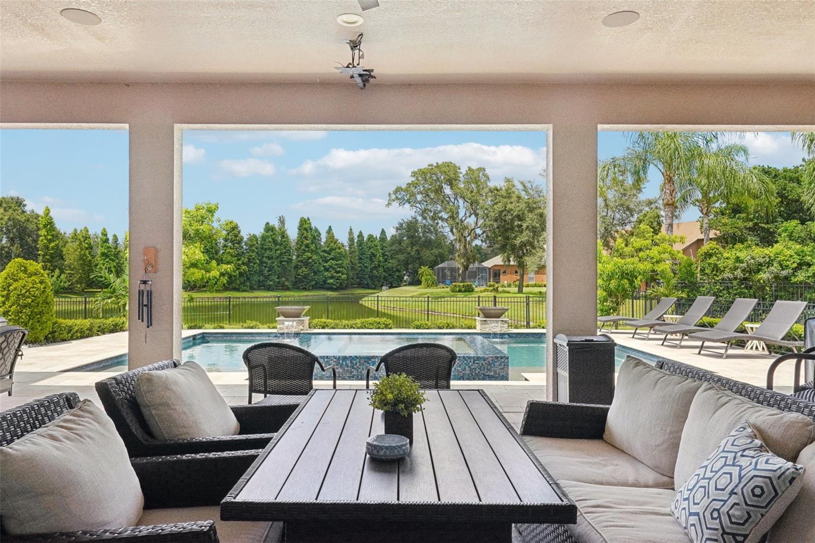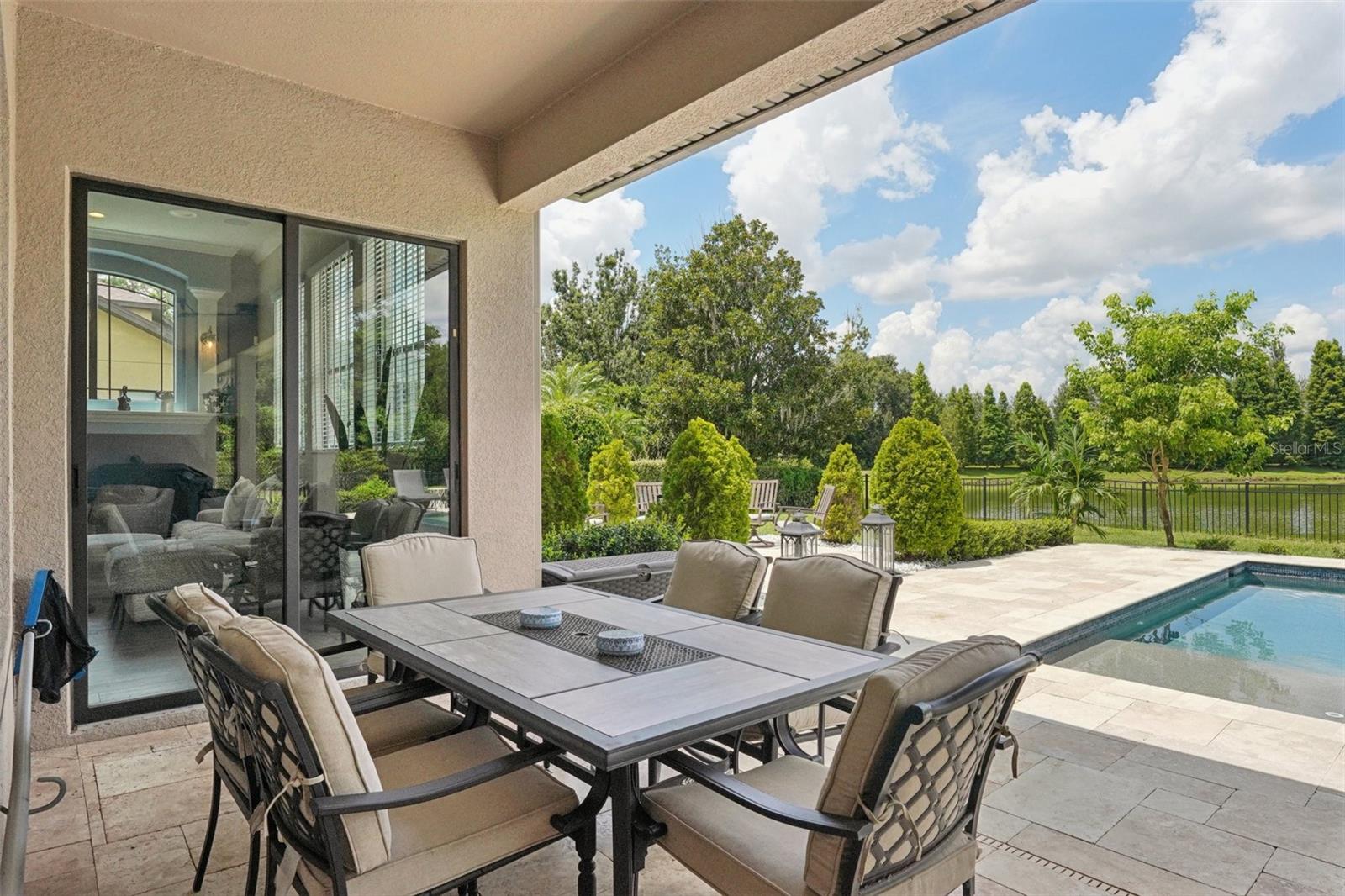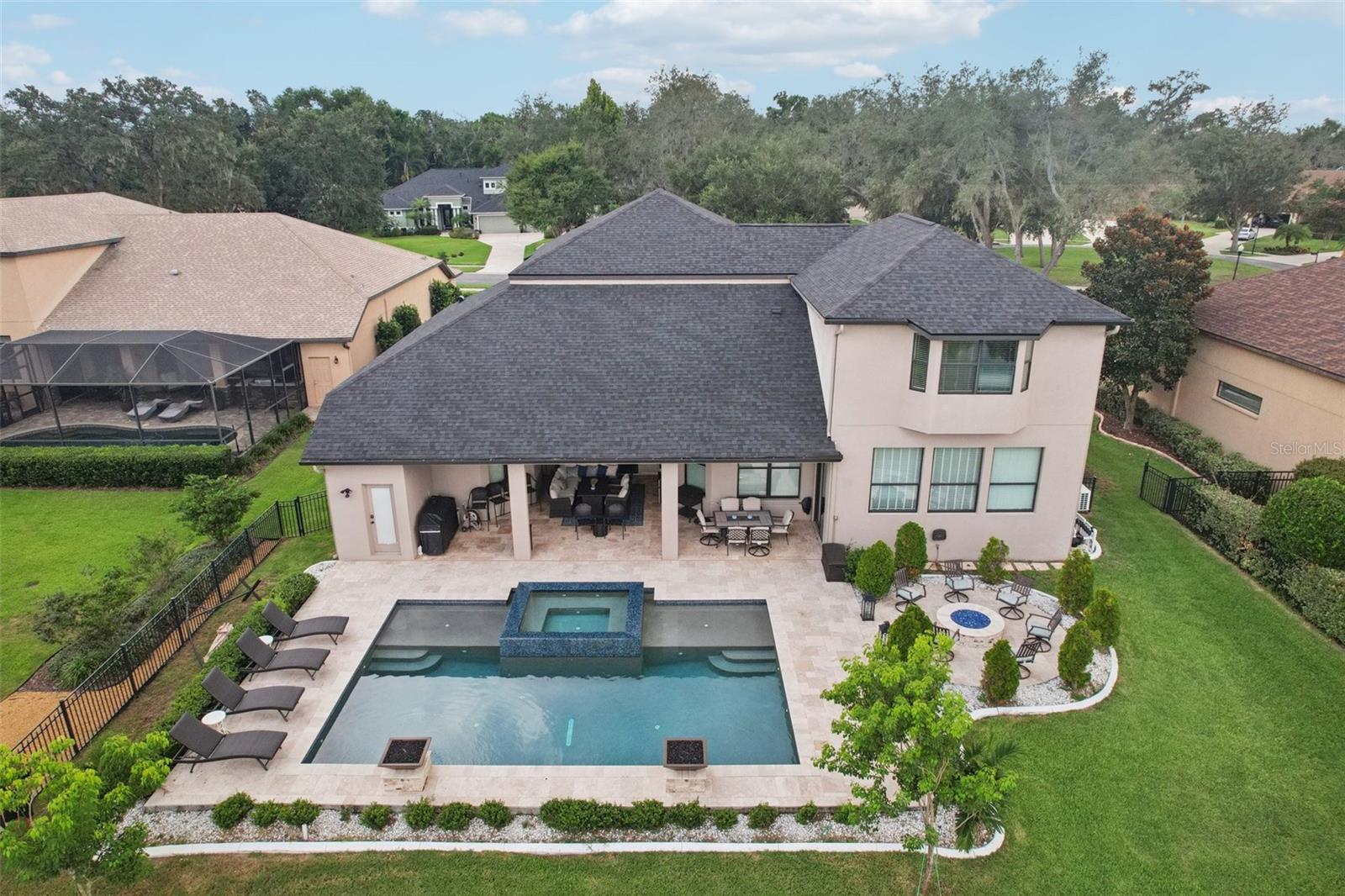Step inside and stay a while—you might not want to leave. This thoughtfully designed home, set within Stonewood—a gated, secure community with perfectly manicured lawns—offers the kind of space, comfort, and perfect layout for comfortable multi-generational living that makes everyday life feel like a getaway. Over the past two years, key updates have elevated this home even further, including a stunning kitchen and pool remodel, a beautifully crafted living room buildout, and the addition of another spacious bedroom—creating even more room to spread out and settle in. With over 4,500 square feet, seven true bedrooms, three full baths, and two additional half baths (including one right by the pool), this home makes room for everyone—and then some. Whether you're hosting movie night in the oversized home theater with ceiling-mounted surround sound throughout the house, getting in a morning workout in your private gym with commercial-grade equipment, or relaxing poolside beside glowing fire bowls, every corner has been designed with intention and comfort in mind. The kitchen is a cook’s dream, featuring a gas stove, double ovens, and plenty of space to create and connect. And when it’s time to unwind, the primary suite offers a peaceful retreat with double showers, double vanities, two walk-in closets, an extra room that’s ideal for a home office, nursery, or an additional closet—and direct access to the sparkling pool just outside. Practical upgrades make life here even smoother, with a newer roof (2023), a tankless gas water heater, a wired-for-home generator, an electric car charging station in the garage, and spray foam insulation in the walk-in attic. Out back, the travertine-wrapped pool and spa create a resort-like setting with an infinity edge spa, gas fire bowls, and a fire pit—all surrounded by a private, oversized yard. The covered patio is pre-plumbed for an outdoor kitchen and already set up with multiple TVs and built-in ceiling audio—ready for quiet mornings or game-day gatherings. The private rear gate opens to a peaceful pond, perfect for a little fishing or just enjoying the view. There’s even a third-floor bonus room with a bay window overlooking the water, offering yet another serene spot to call your own. From big-ticket upgrades to thoughtful touches, this home offers something truly special at every turn. Come see it in person—you’ll feel it the moment you walk through the door.